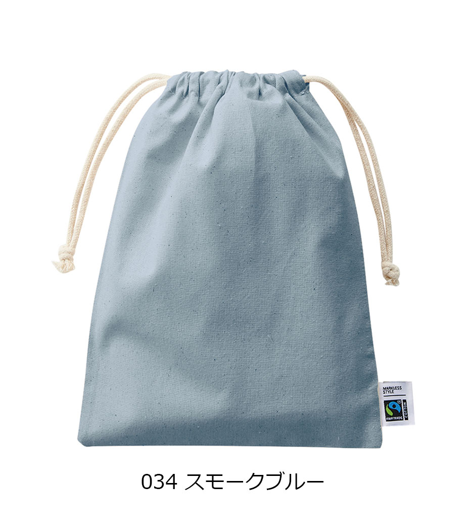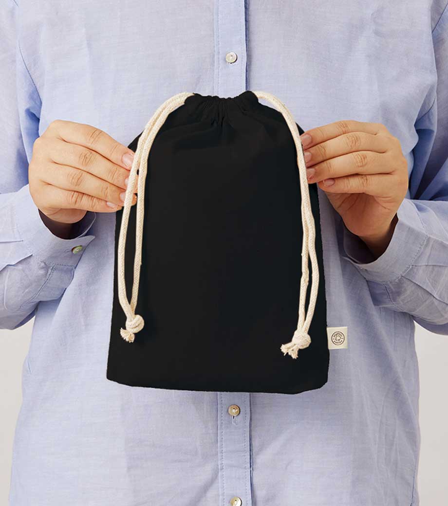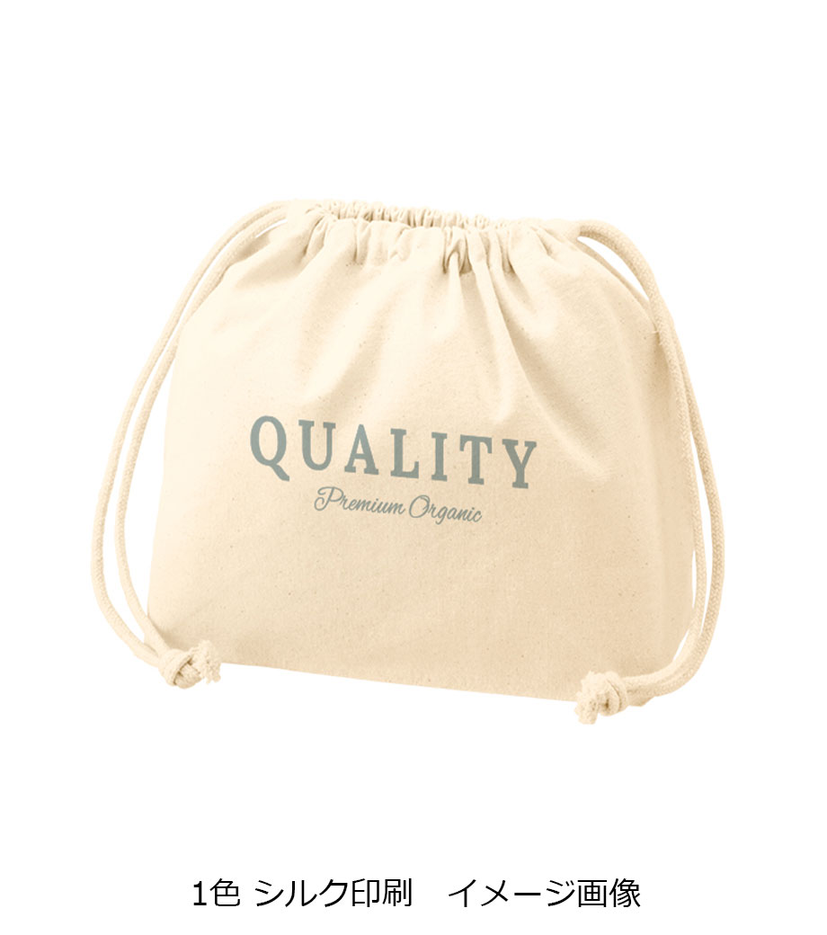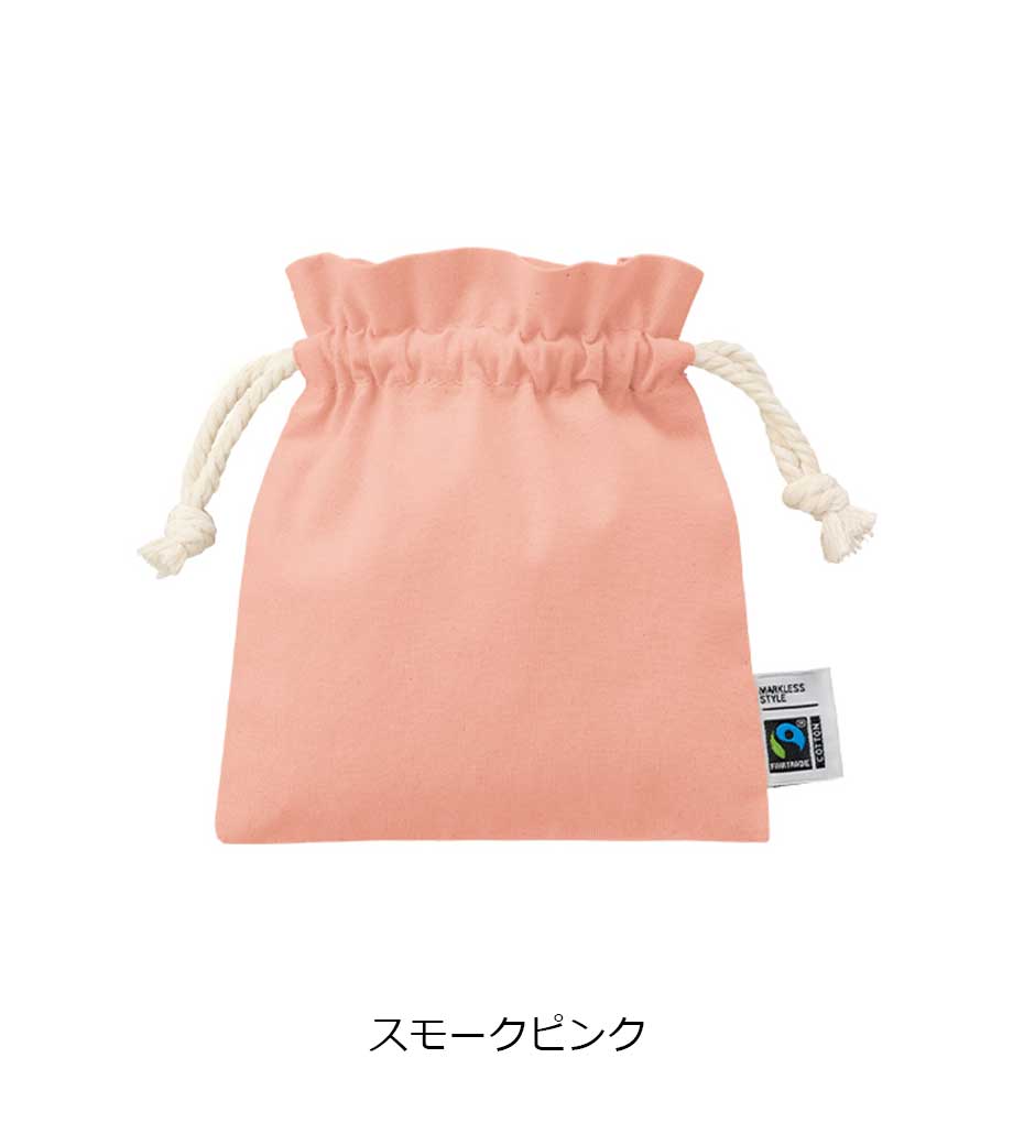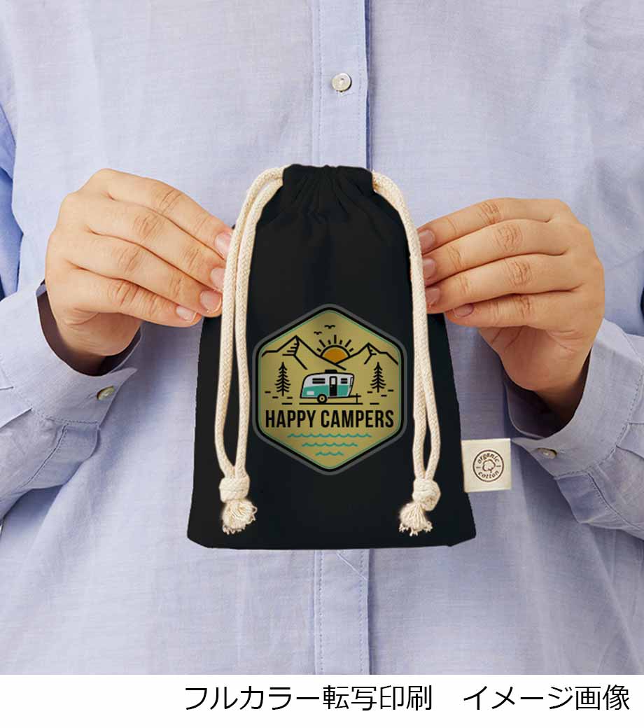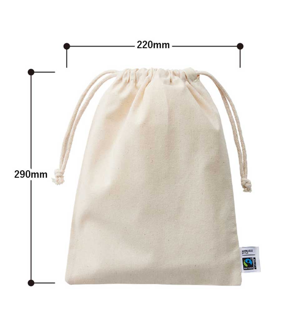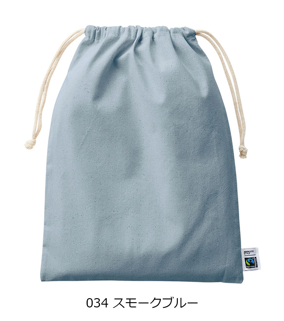 名入れ印刷が可能。ロゴやイベント名を印刷してオリジナル巾着が作れます。フェアトレード商品で持続可能な発展を支え、温かみあふれるオーガニックコットン。SDGsに取り組む企業のノベルティとしておすすめです。