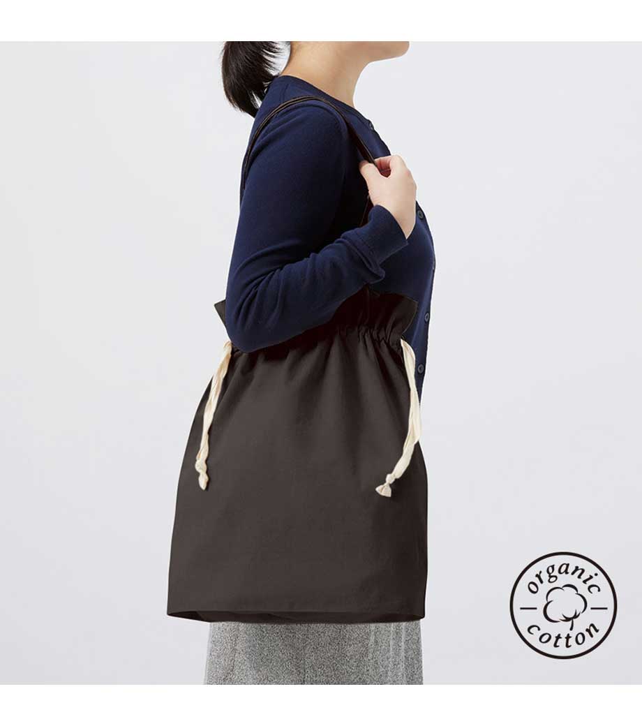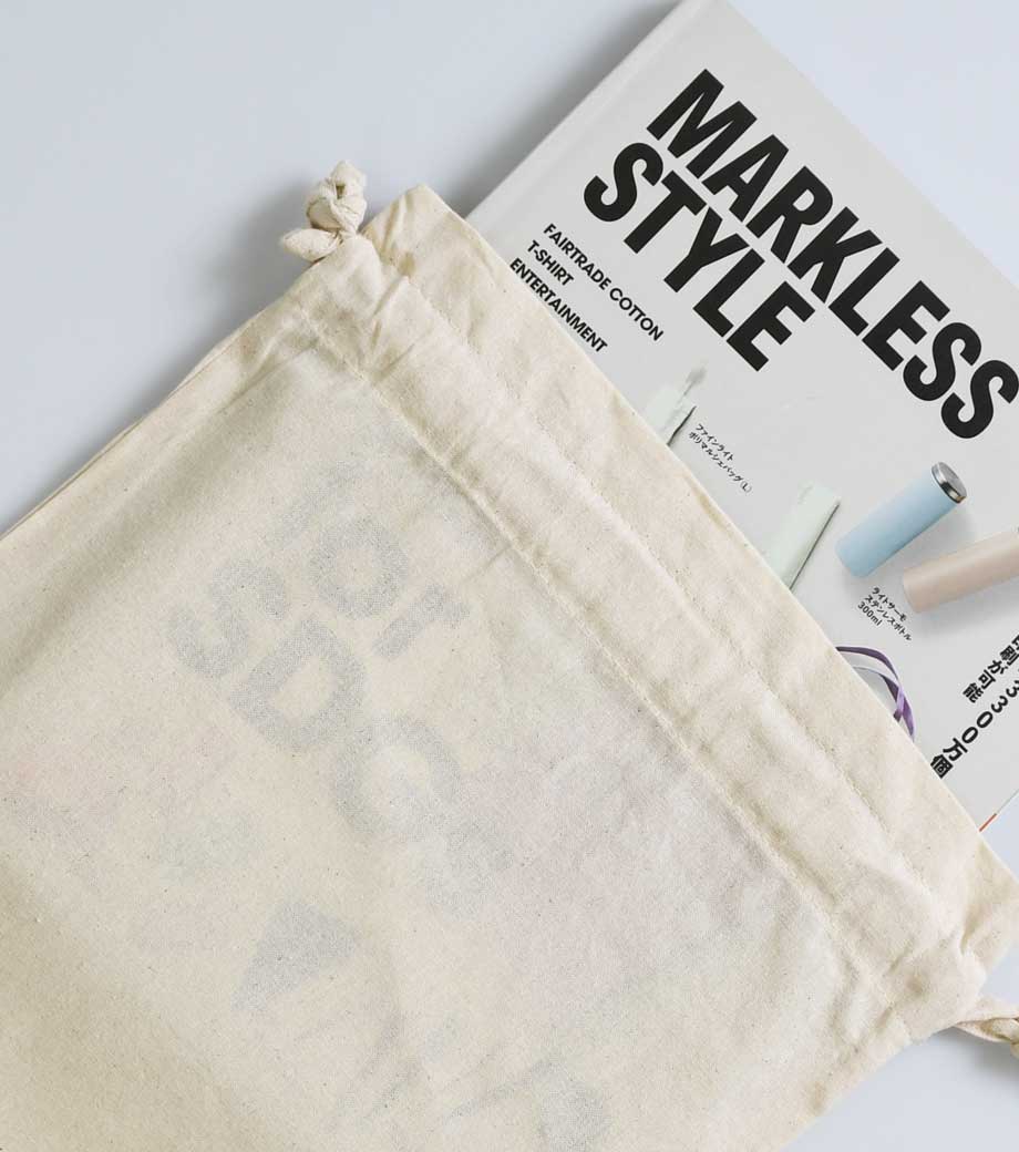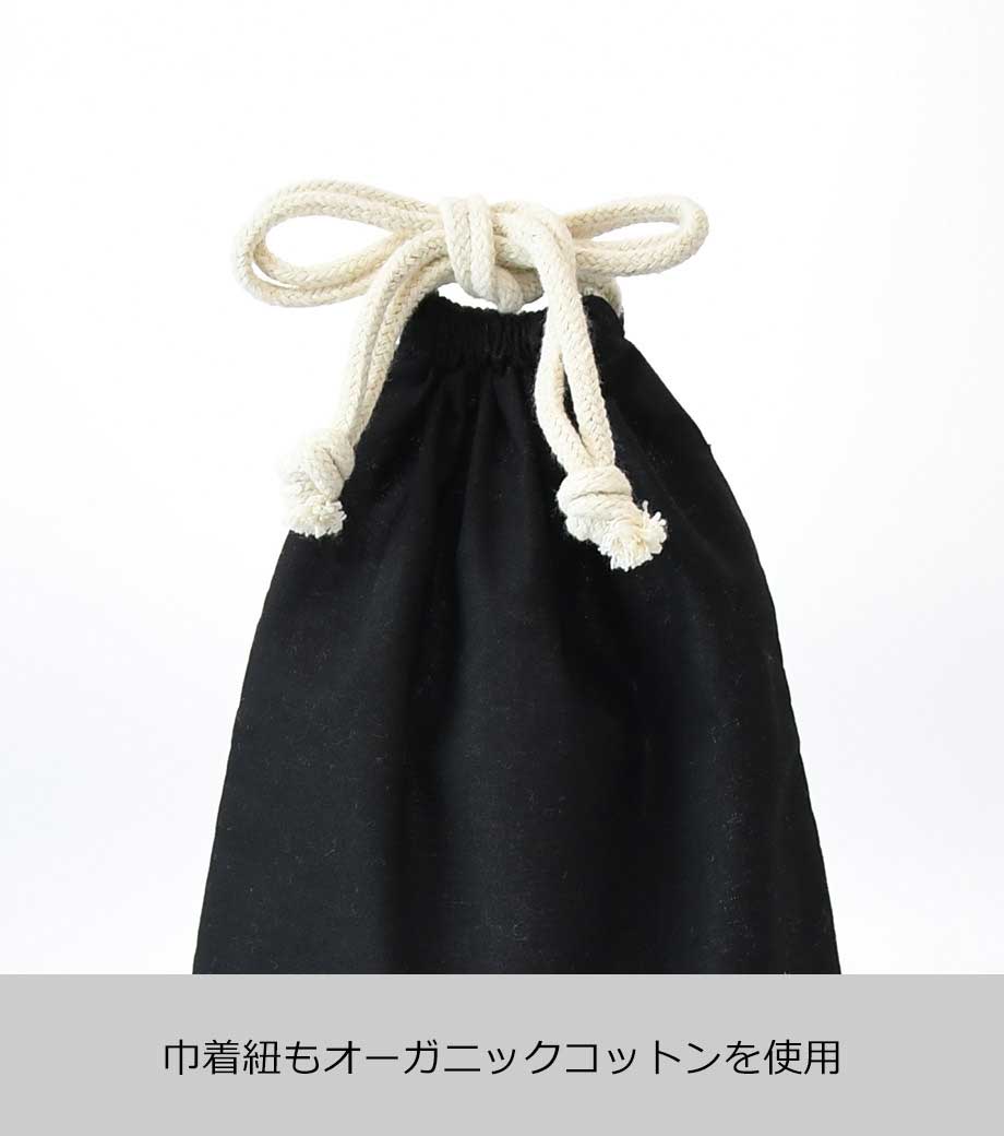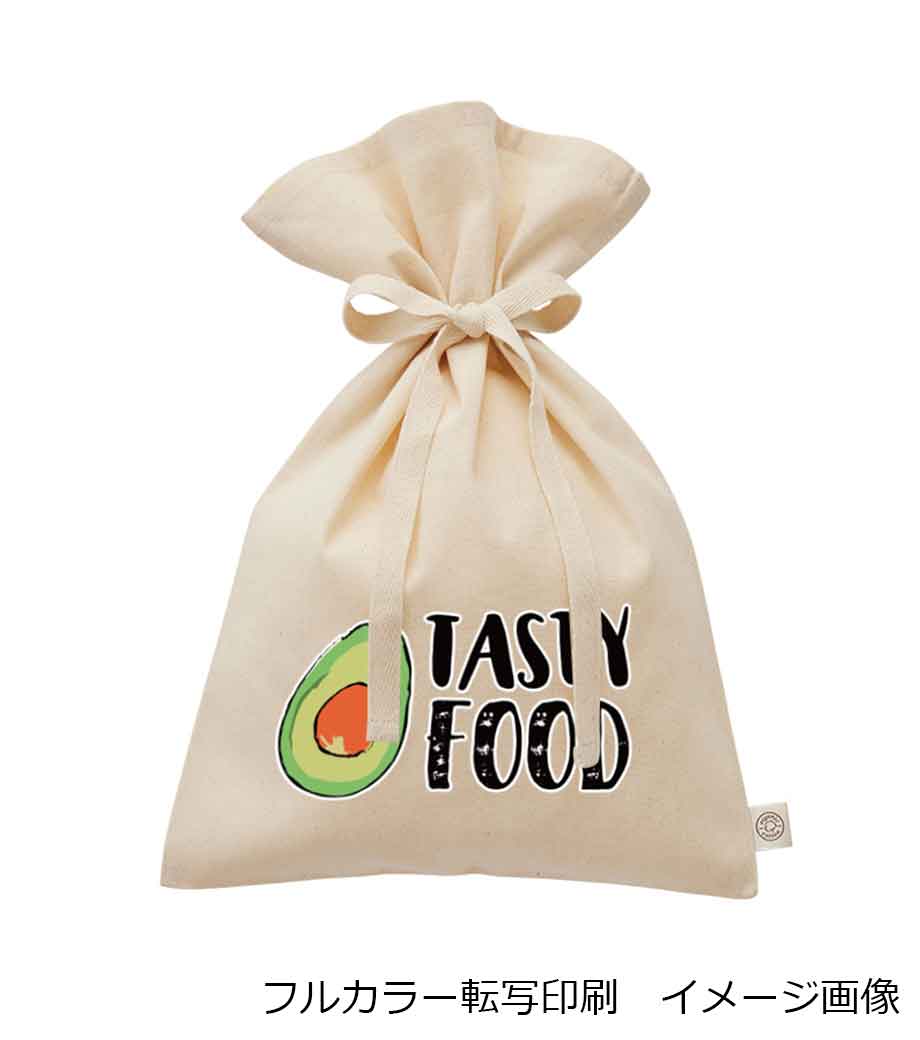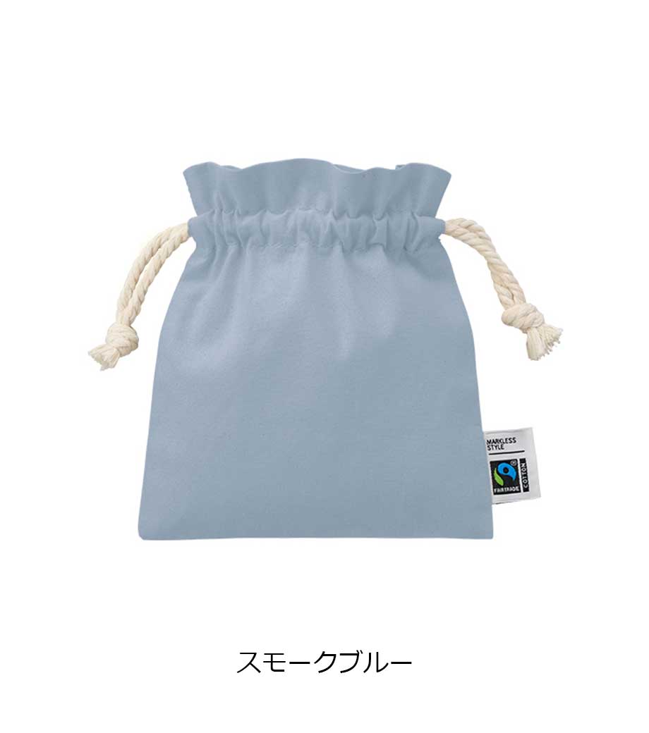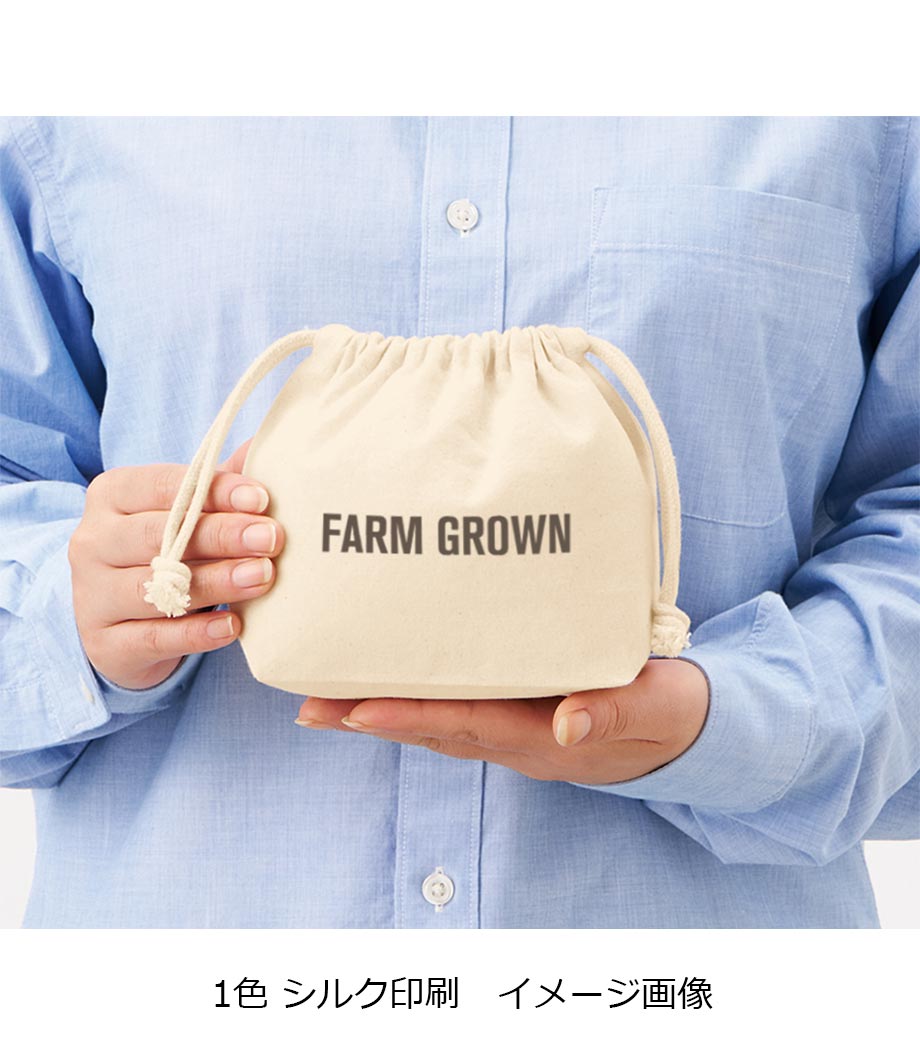 名入れ印刷が可能。ロゴやイベント名を印刷してオリジナル巾着が作れます。フェアトレード商品で持続可能な発展を支え、温かみあふれるオーガニックコットン。SDGsに取り組む企業のノベルティとしておすすめです。