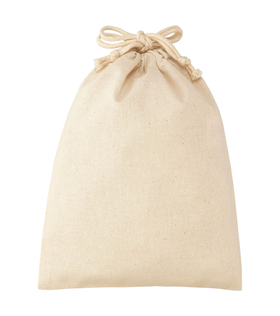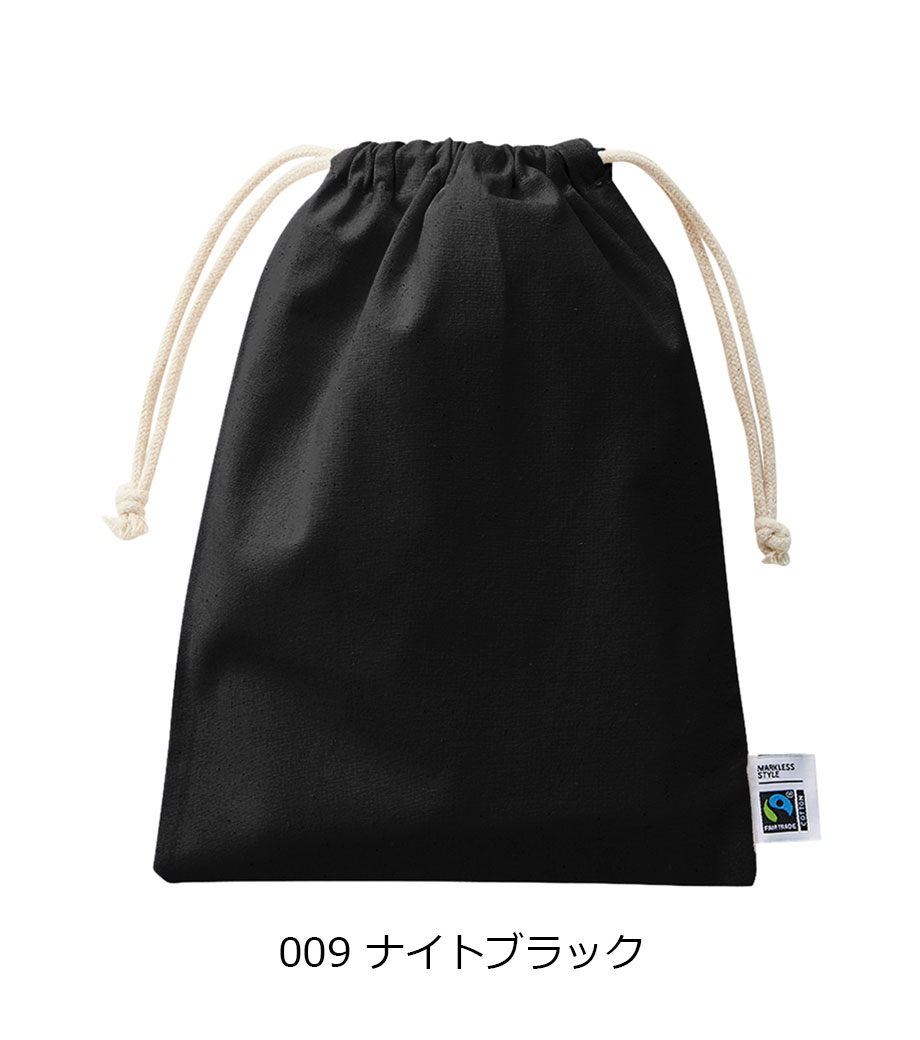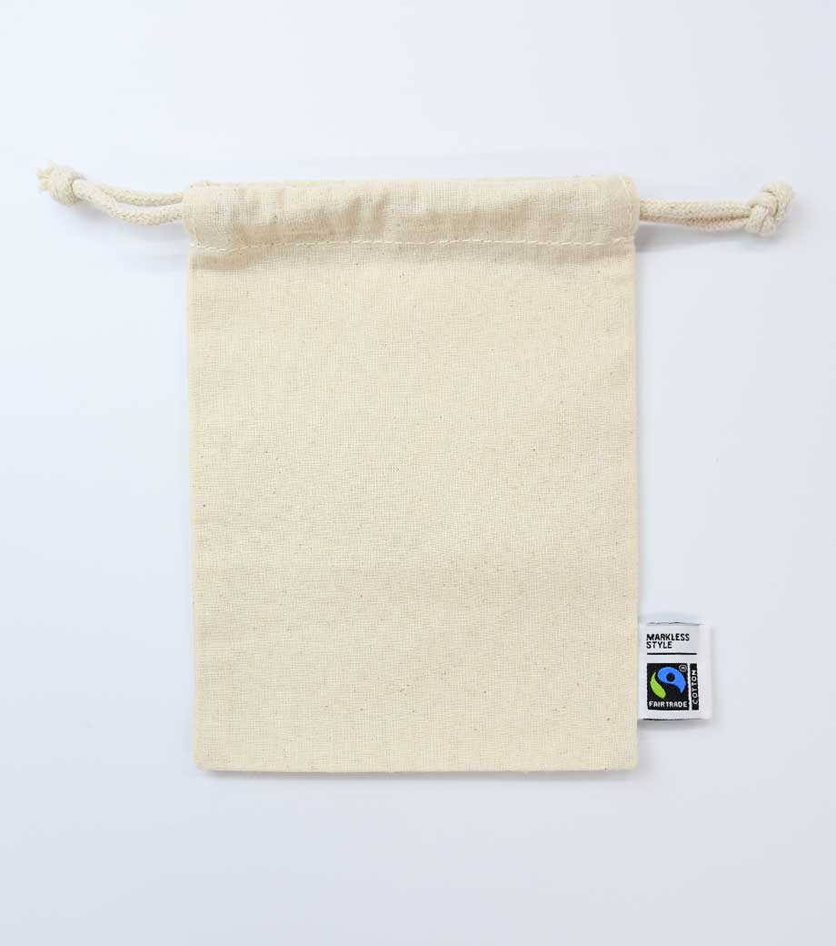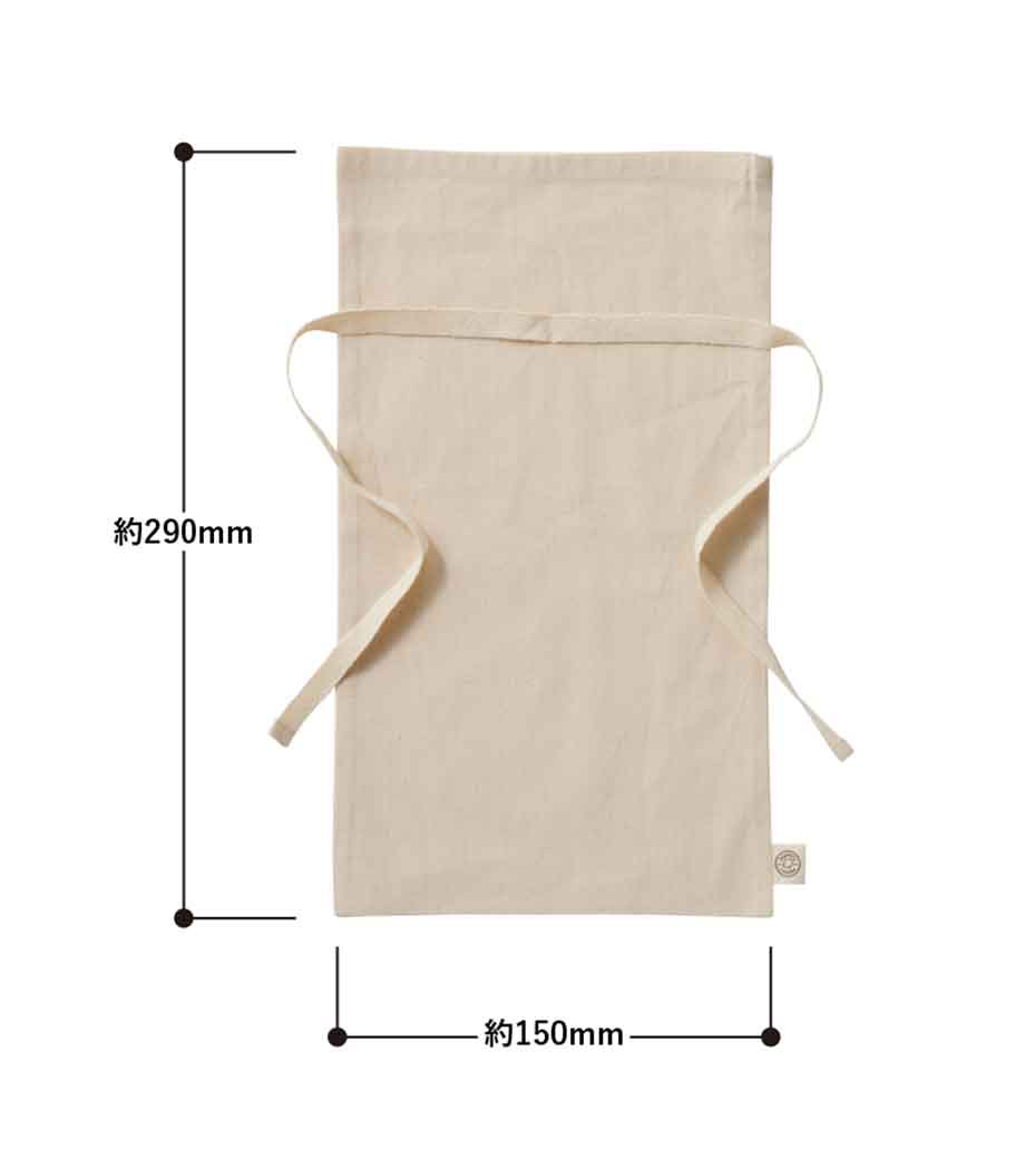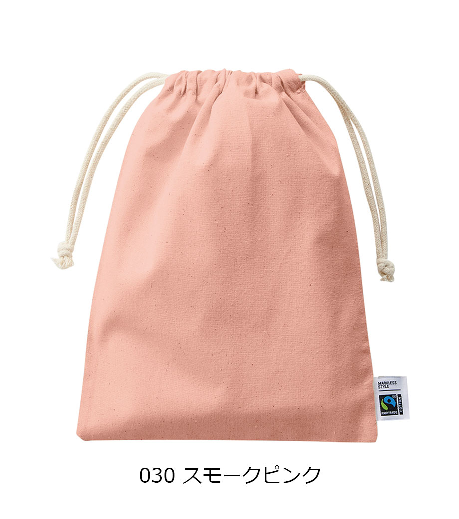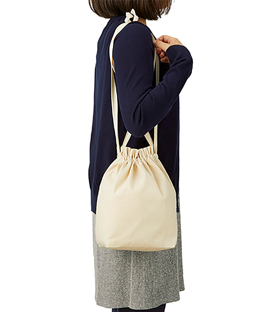 名入れ印刷が可能。ロゴやイベント名を印刷してオリジナル巾着が作れます。フェアトレード商品で持続可能な発展を支え、温かみあふれるオーガニックコットン。SDGsに取り組む企業のノベルティとしておすすめです。