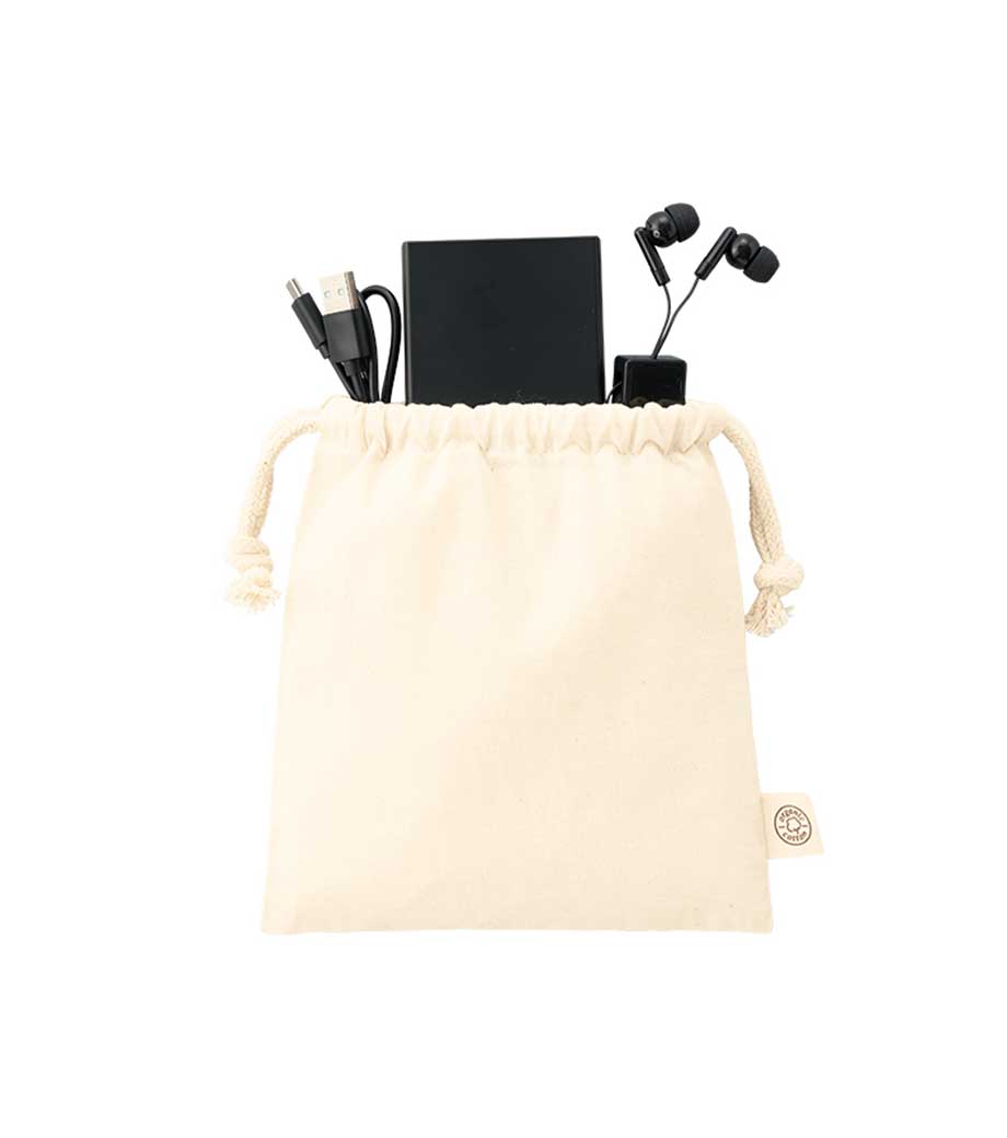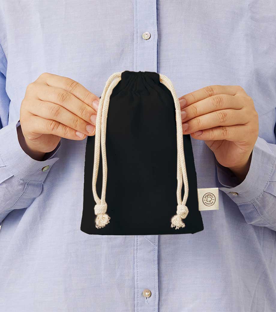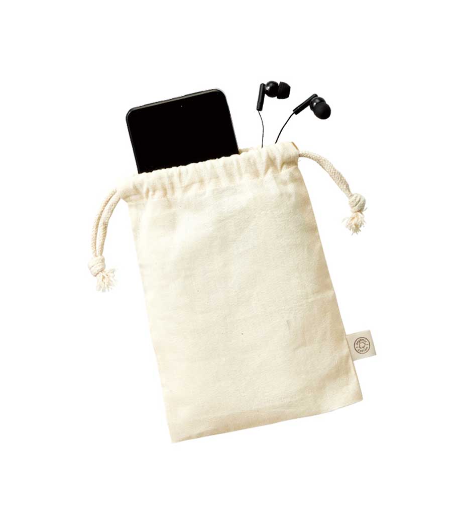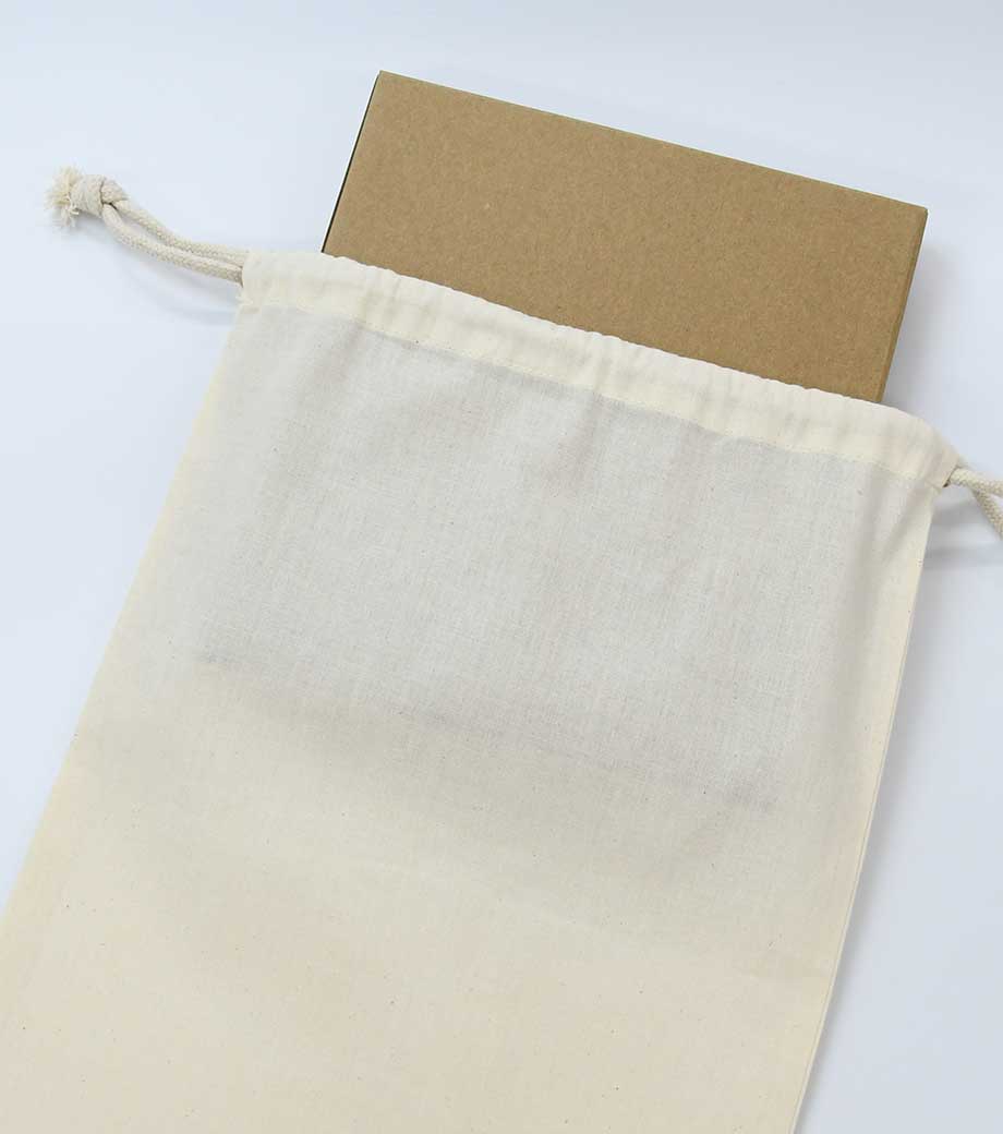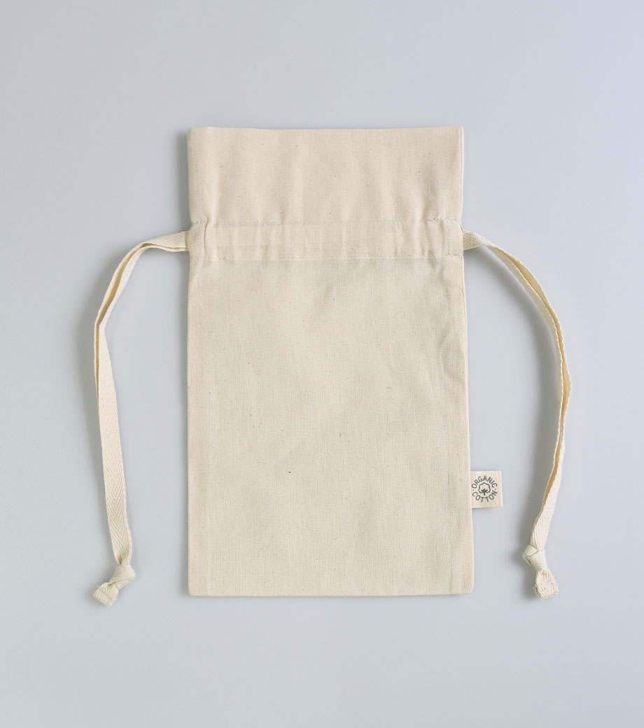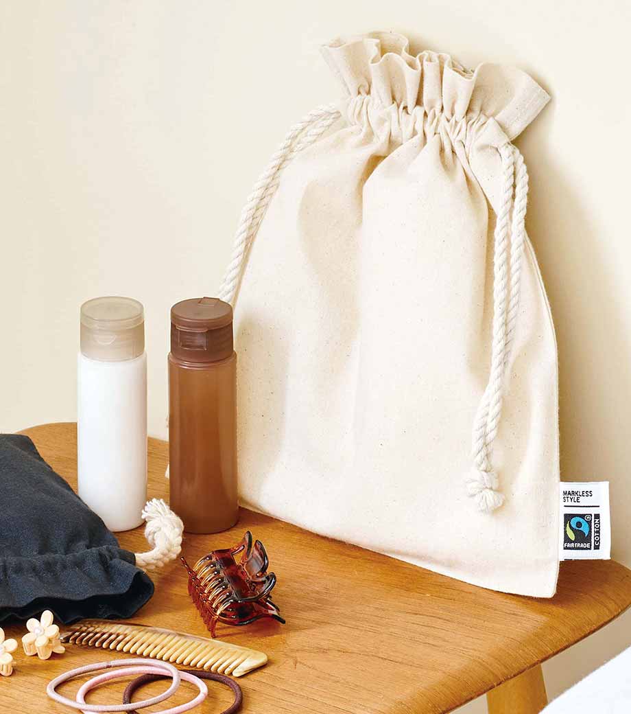 名入れ印刷が可能。ロゴやイベント名を印刷してオリジナル巾着が作れます。フェアトレード商品で持続可能な発展を支え、温かみあふれるオーガニックコットン。SDGsに取り組む企業のノベルティとしておすすめです。