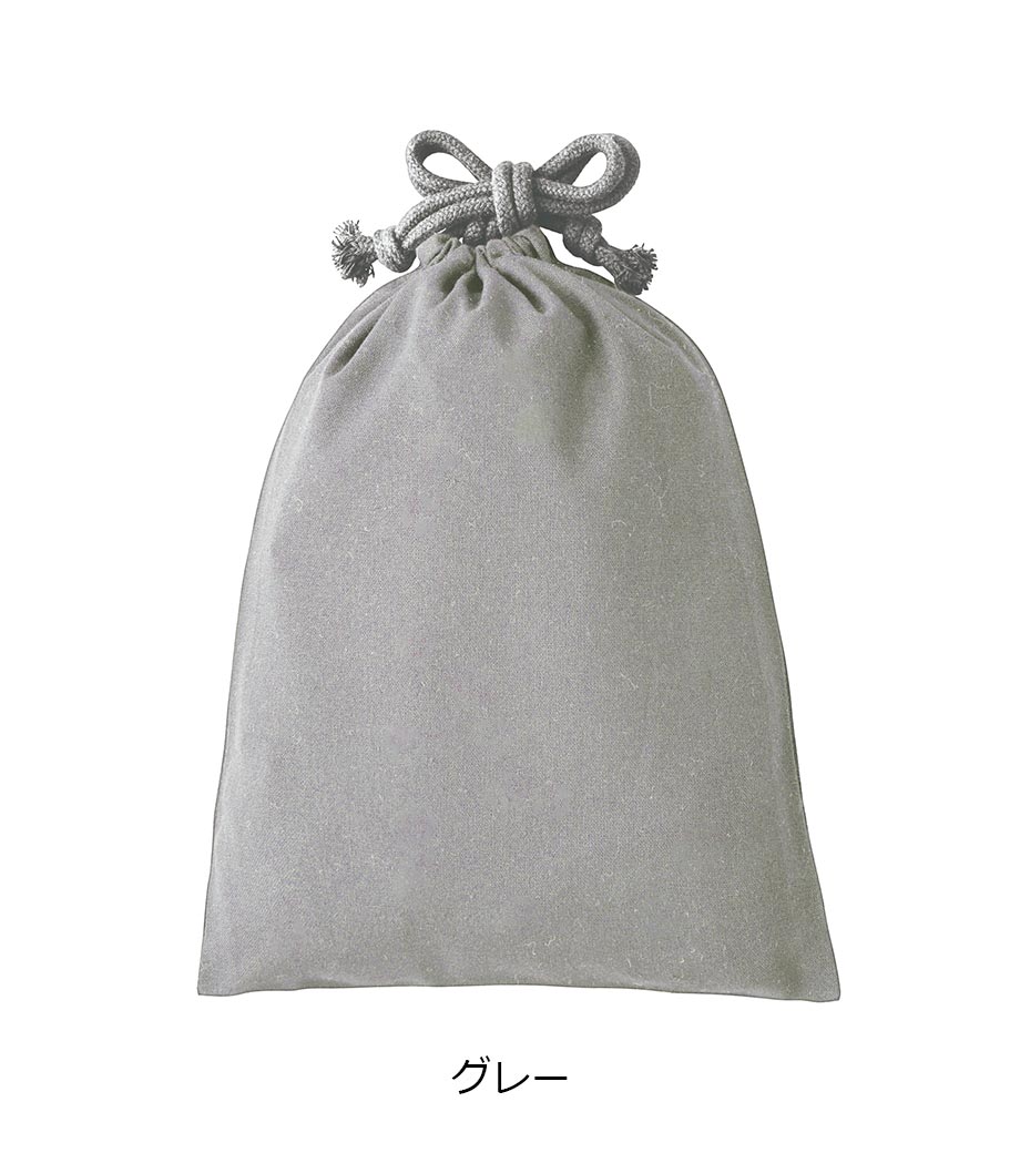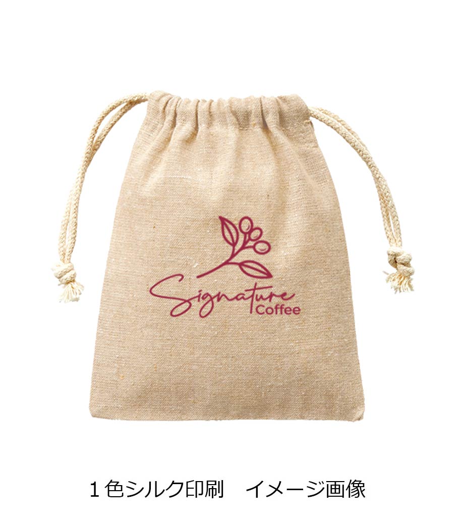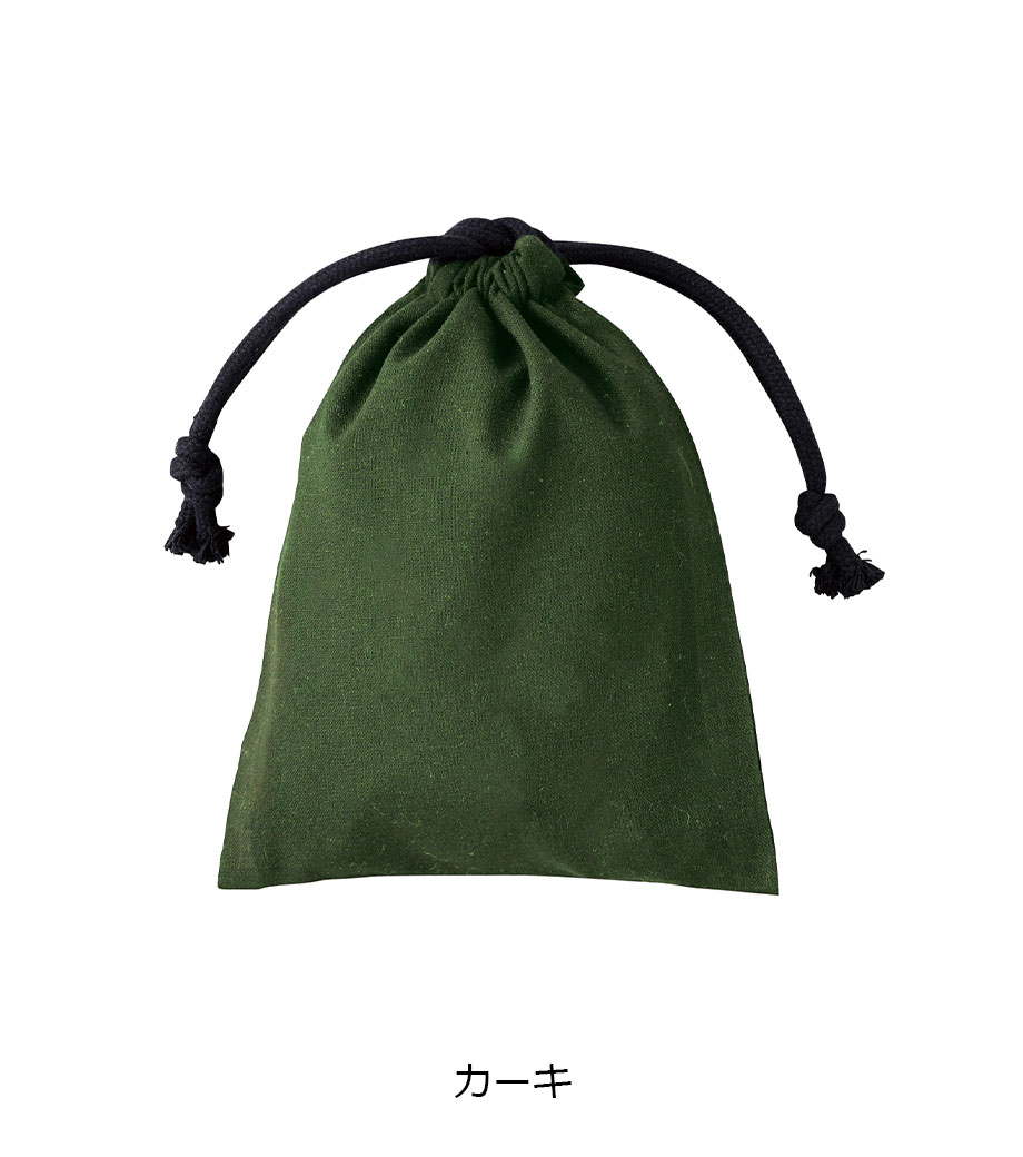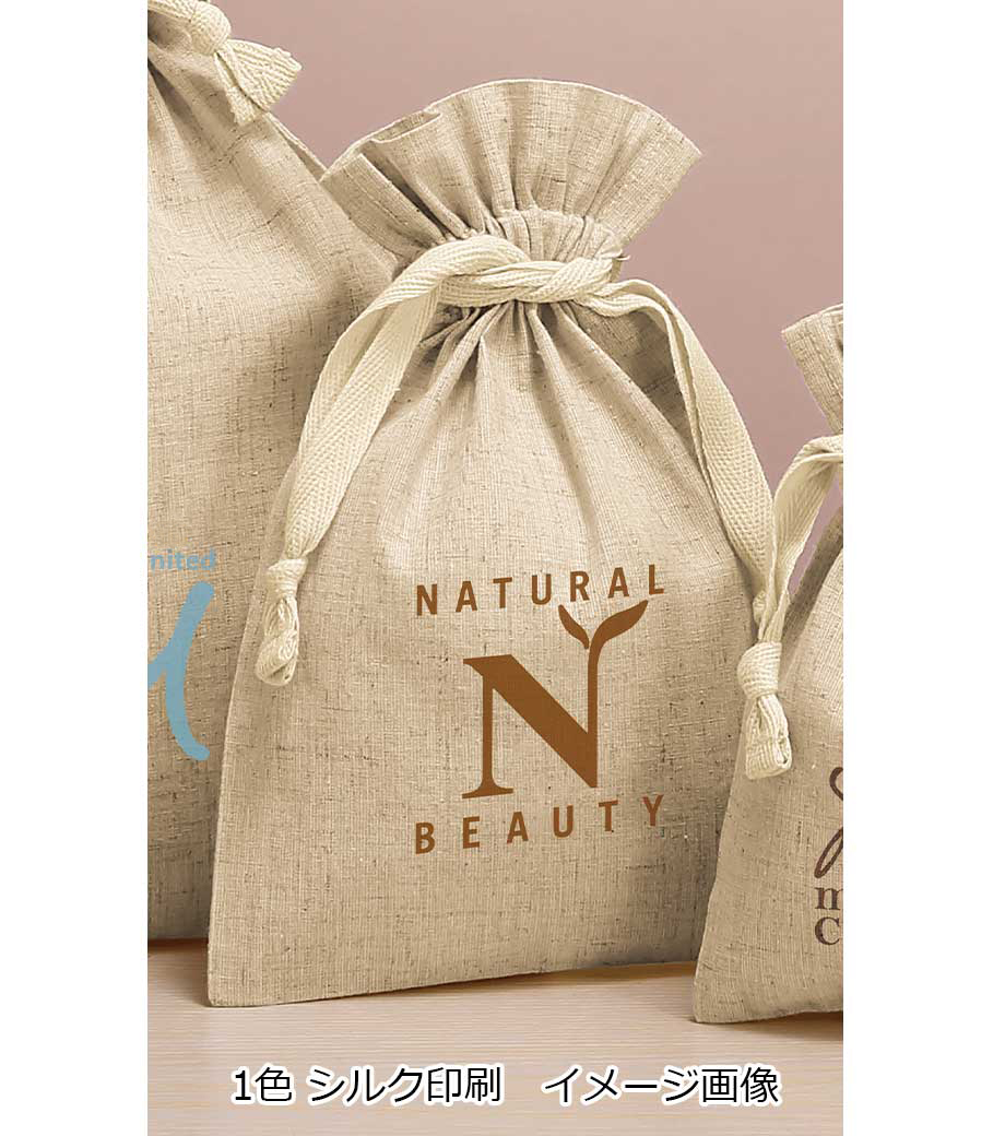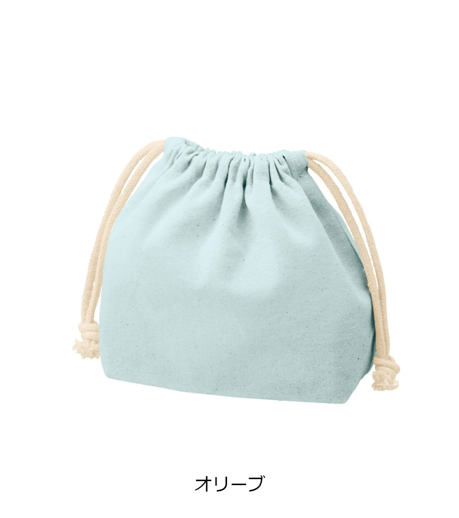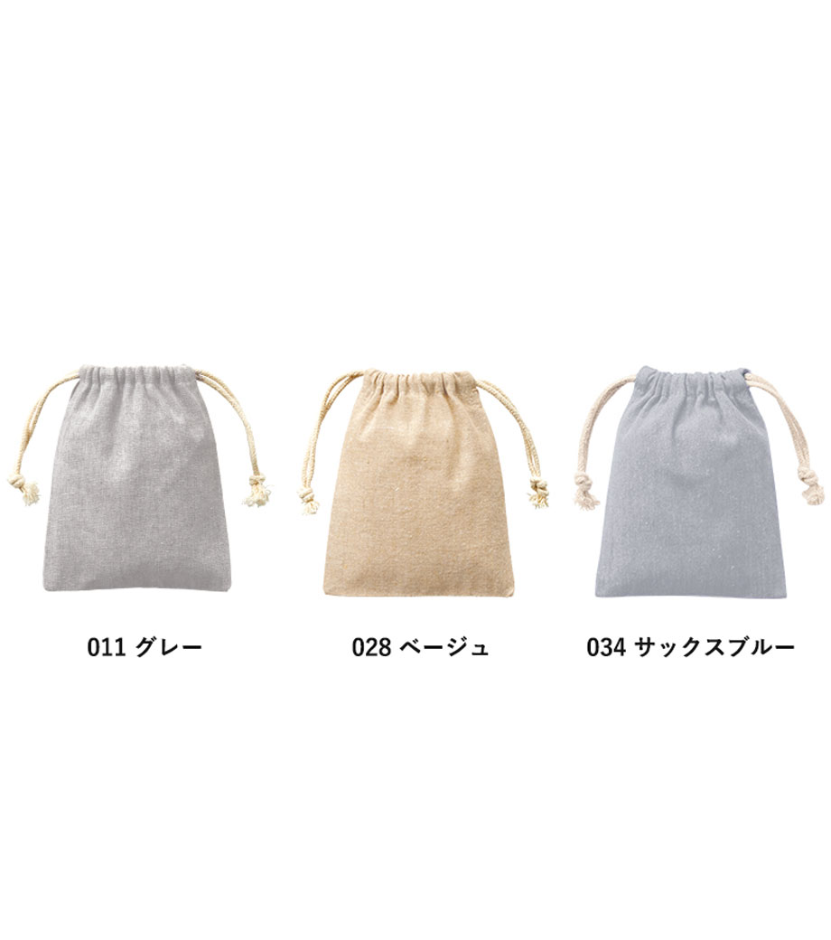 独特のニュアンスカラーは、普通のコットン巾着とは一味違った風合いが魅力です。お店などのロゴを名入れすれば、おしゃれなプチギフトやノベルティができますよ。