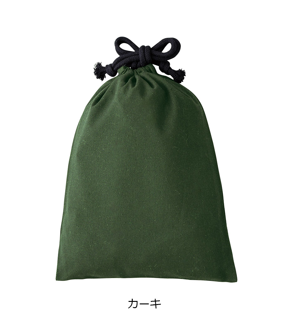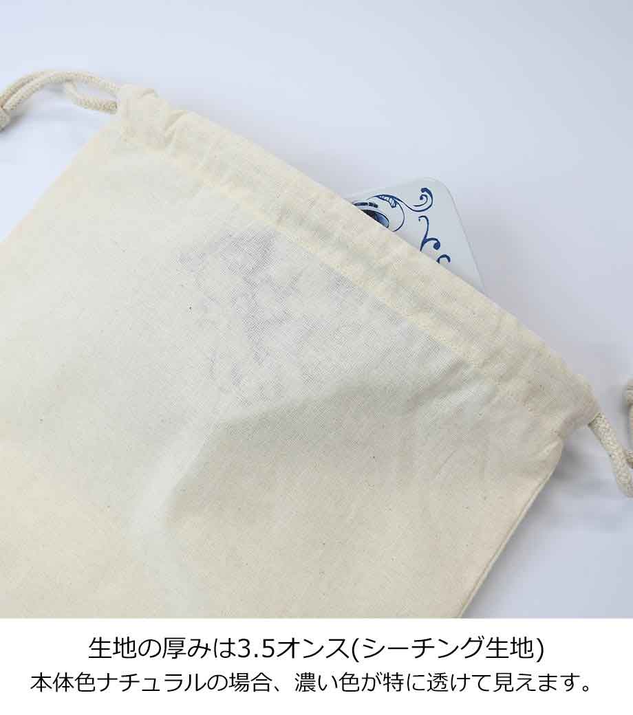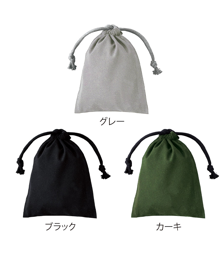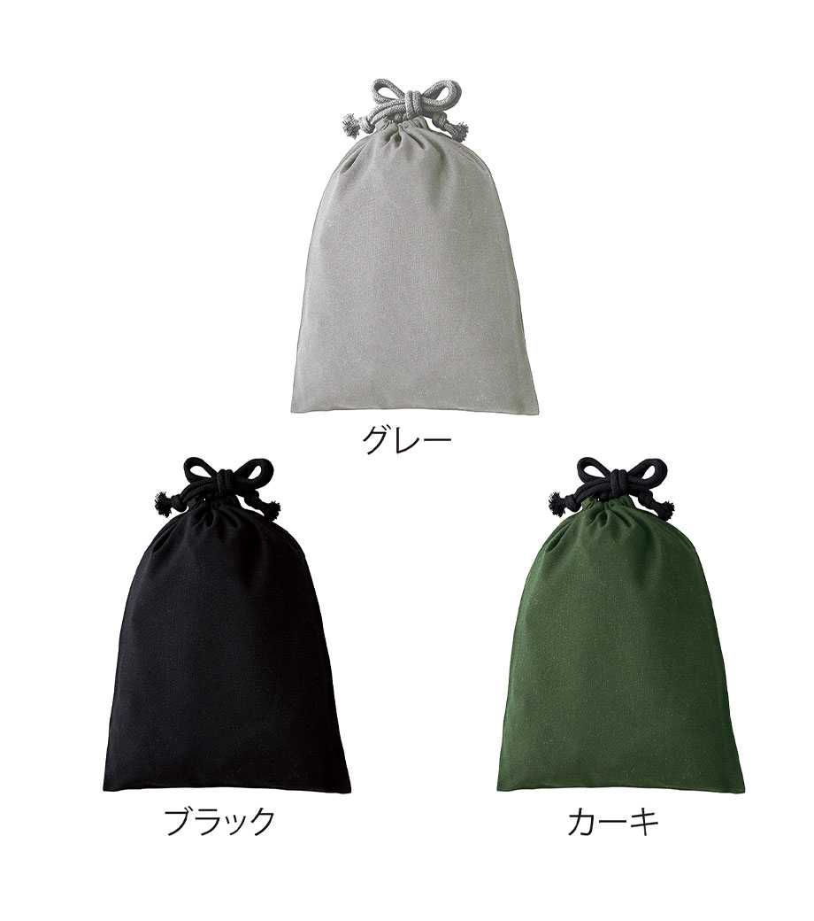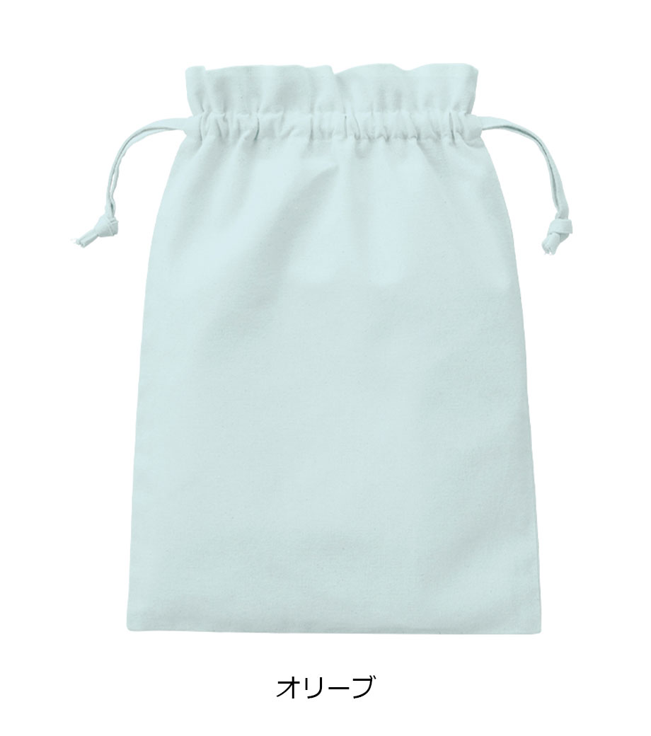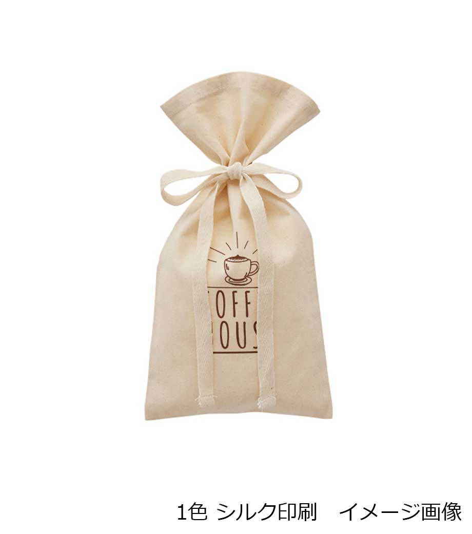 独特のニュアンスカラーは、普通のコットン巾着とは一味違った風合いが魅力です。お店などのロゴを名入れすれば、おしゃれなプチギフトやノベルティができますよ。