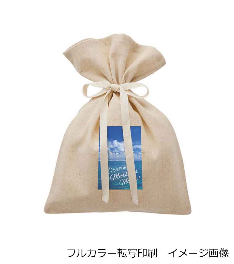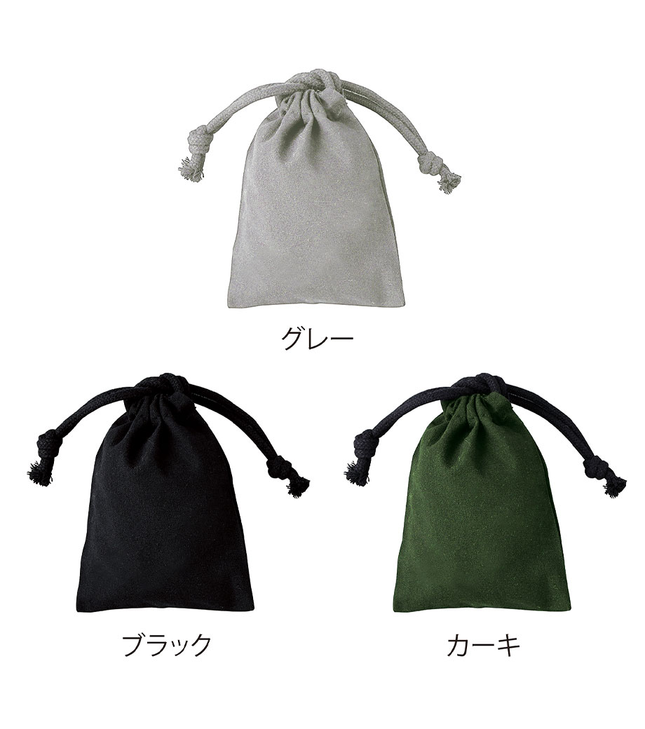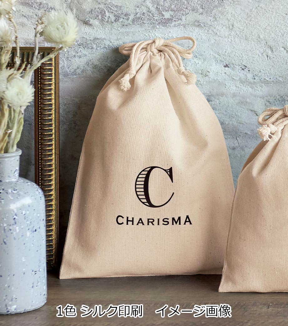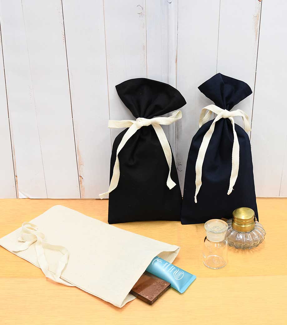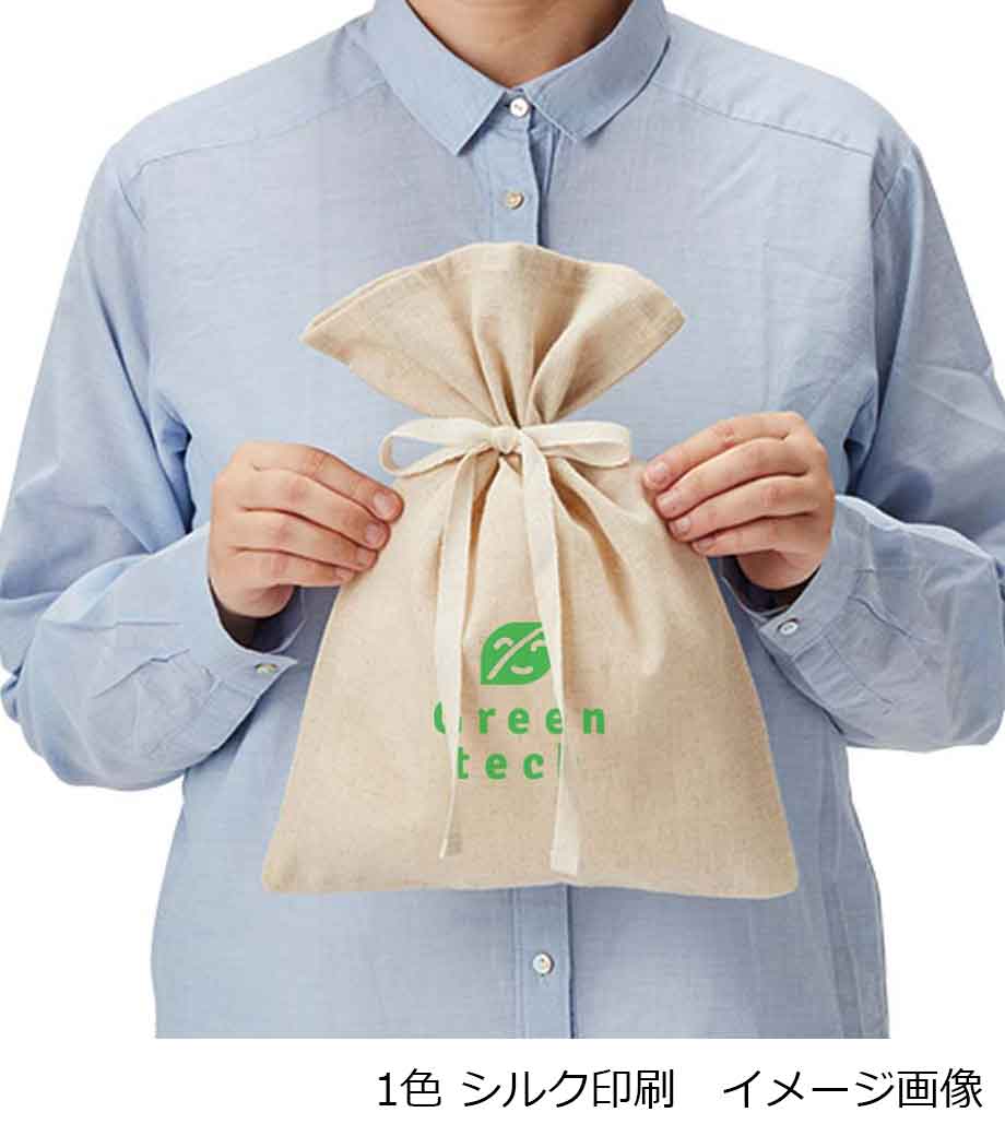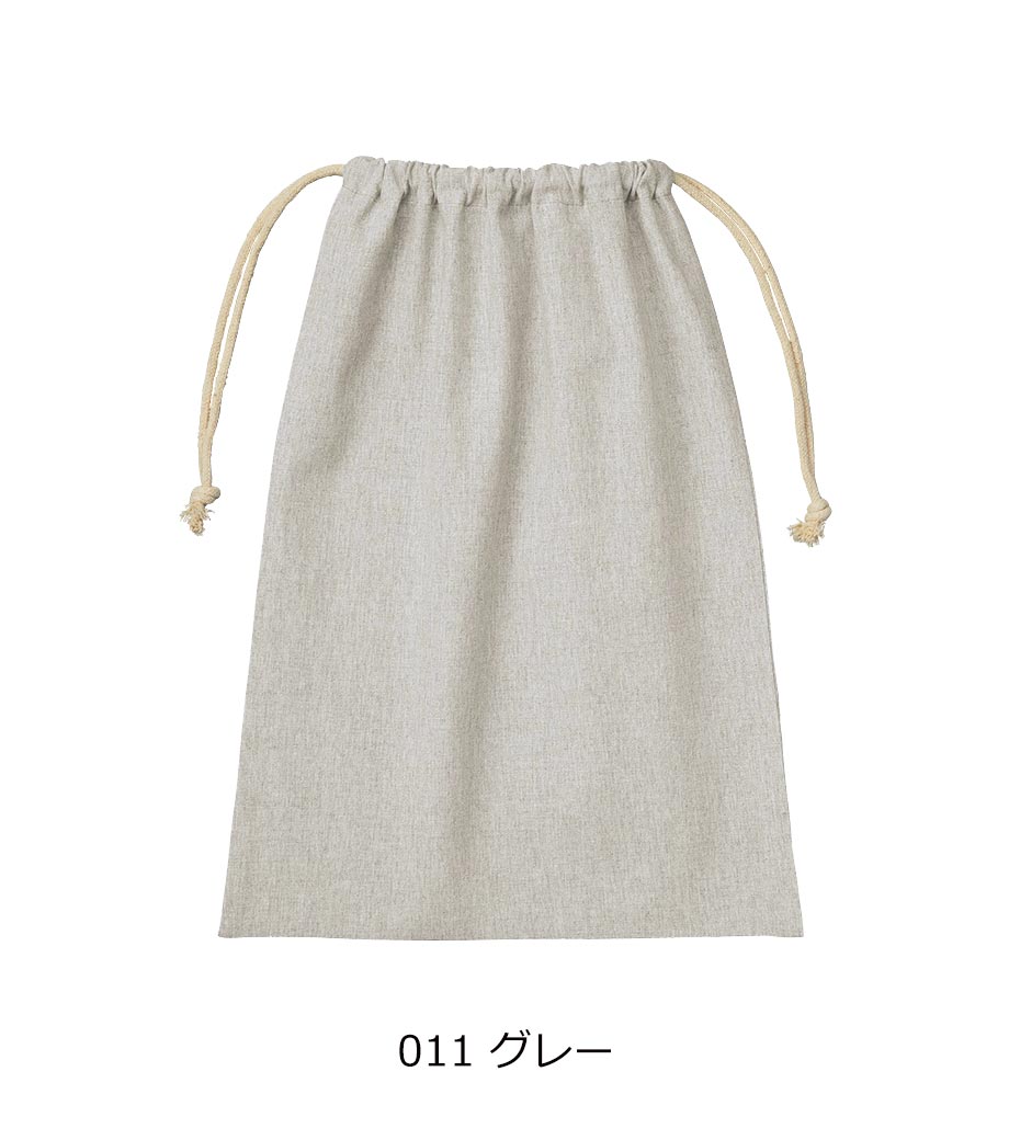 独特のニュアンスカラーは、普通のコットン巾着とは一味違った風合いが魅力です。お店などのロゴを名入れすれば、おしゃれなプチギフトやノベルティができますよ。