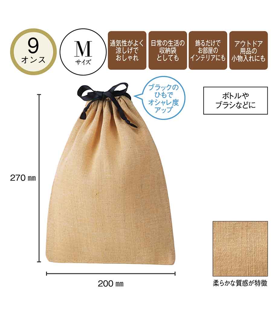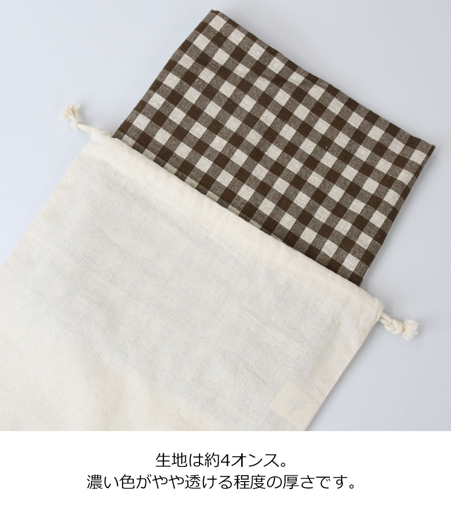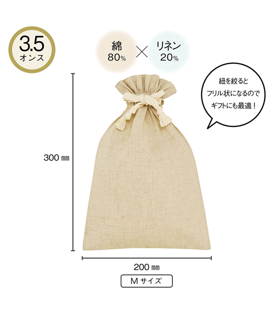 コットンリネン巾着(M)は、リネンとコットンを掛け合わせた、ナチュラルテイストの巾着袋です。