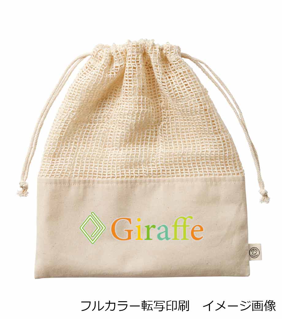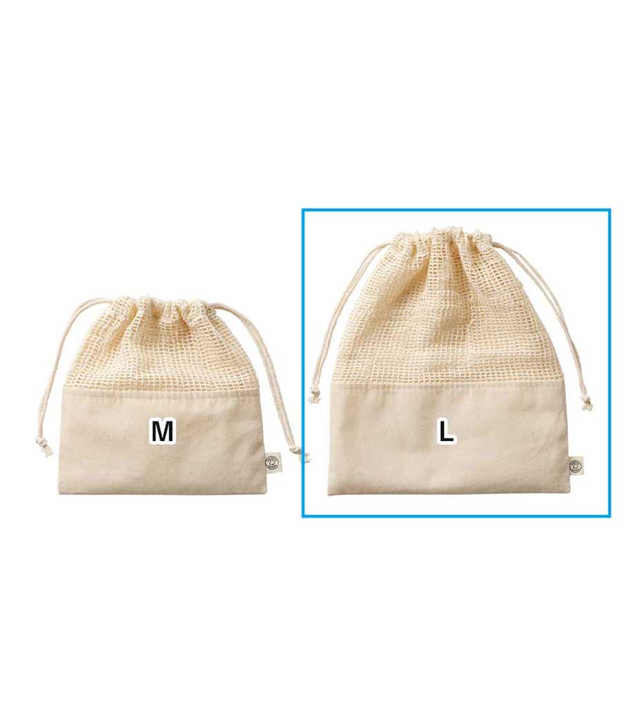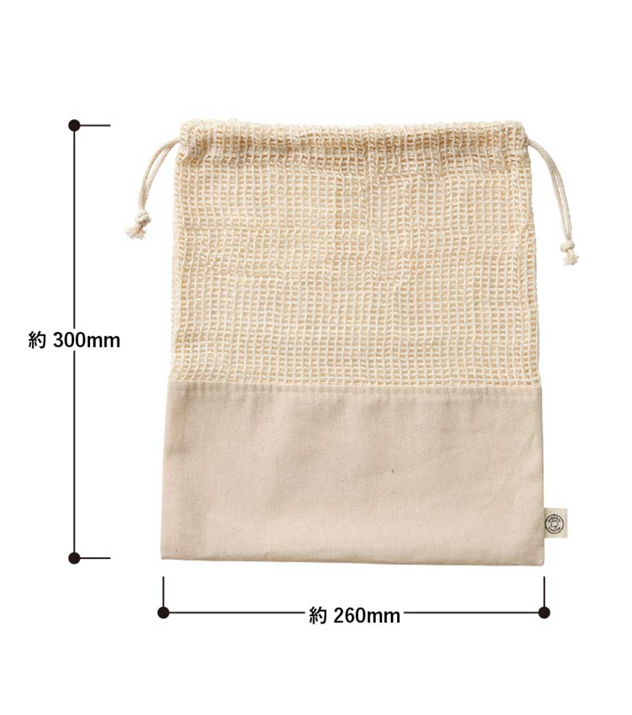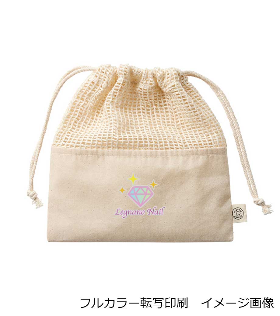 オーガニックコットンネット巾着(L)はすべての生地にオーガニックコットンを使用。SDGsに関心が高まっている今、おすすめのノベルティです。