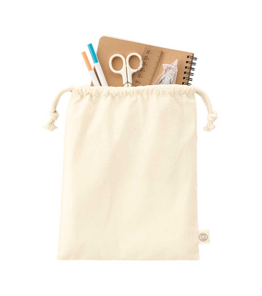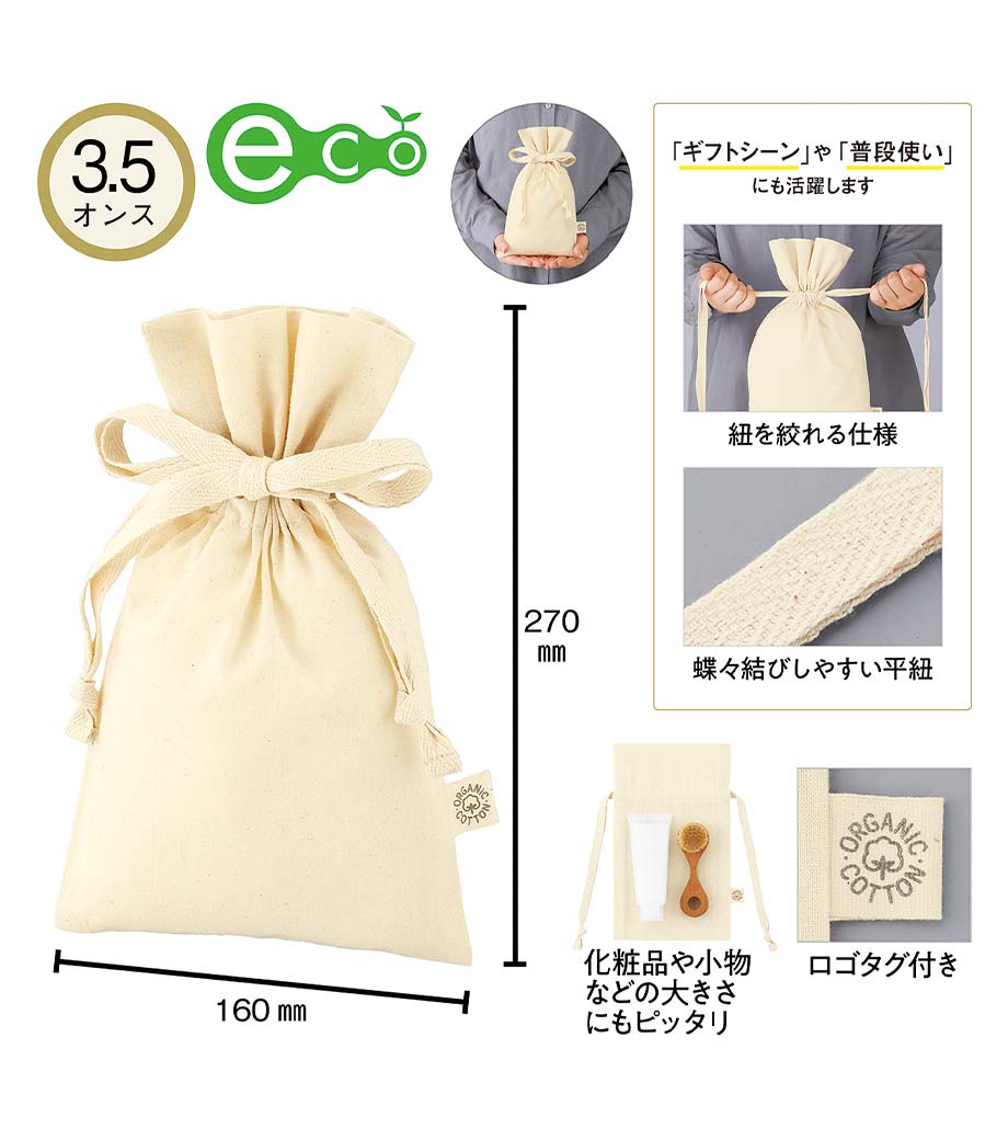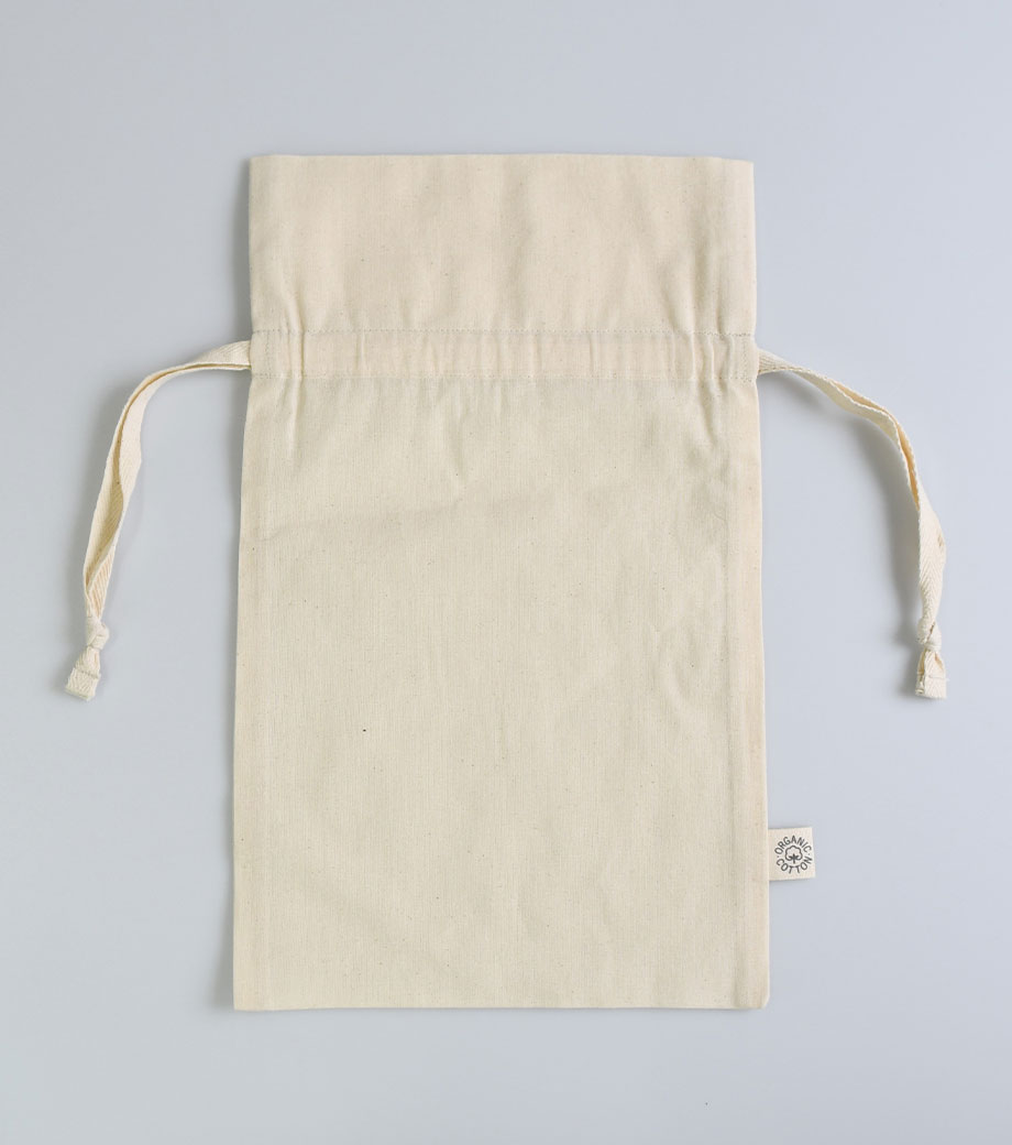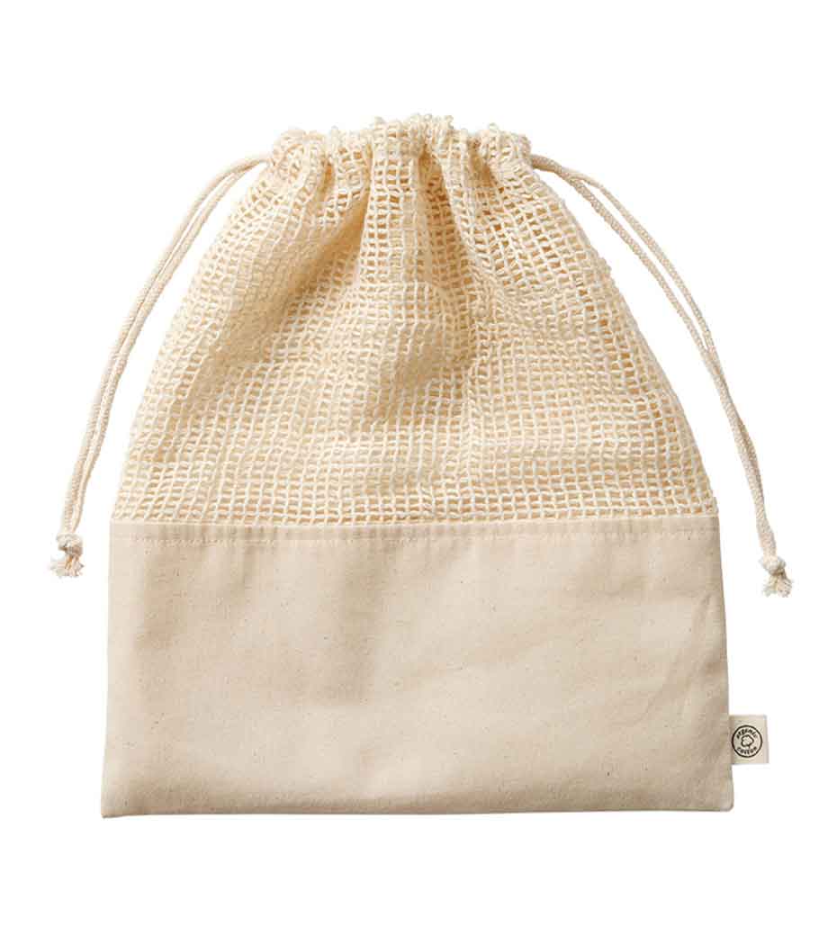 オーガニックコットンネット巾着(L)はすべての生地にオーガニックコットンを使用。SDGsに関心が高まっている今、おすすめのノベルティです。