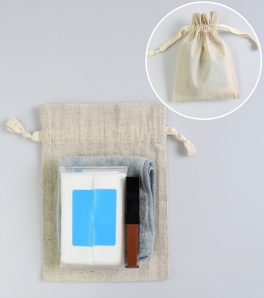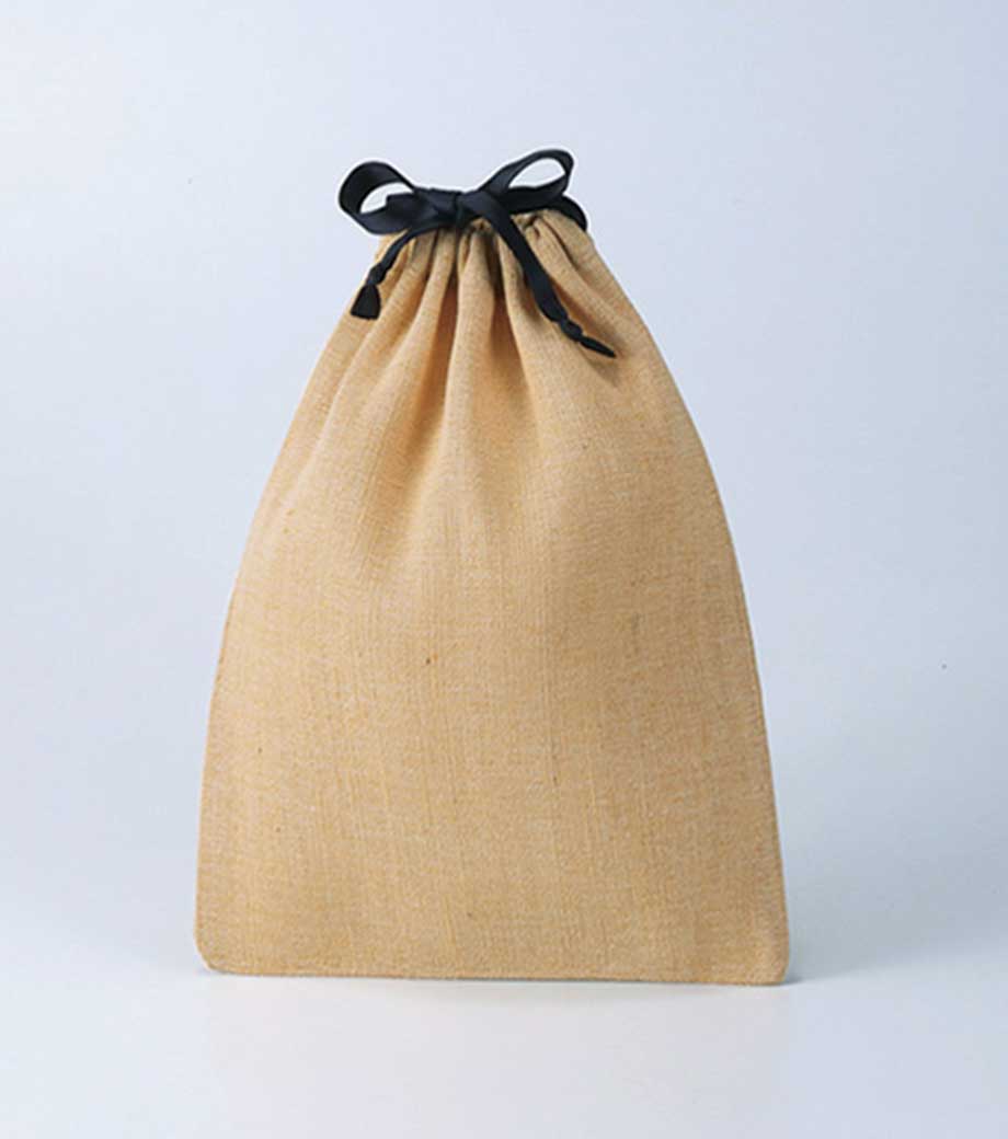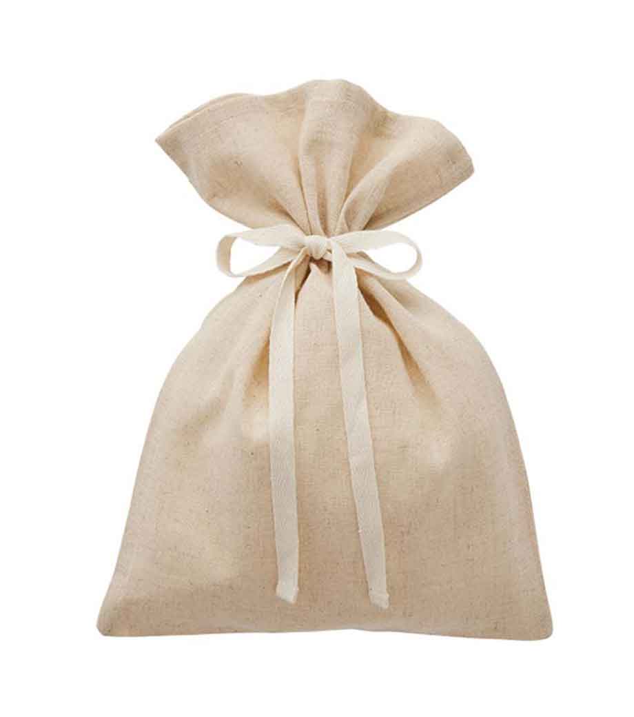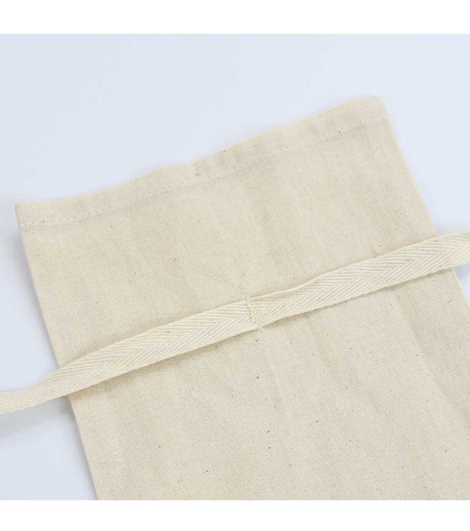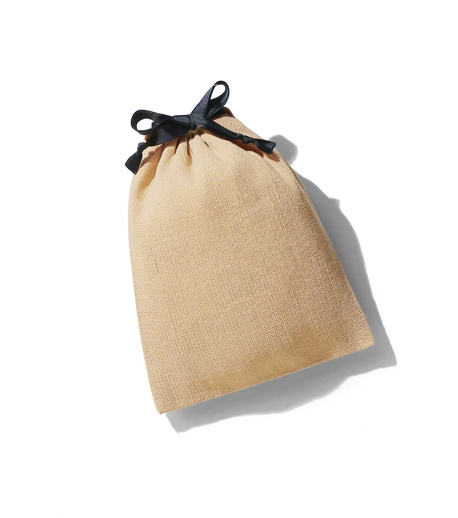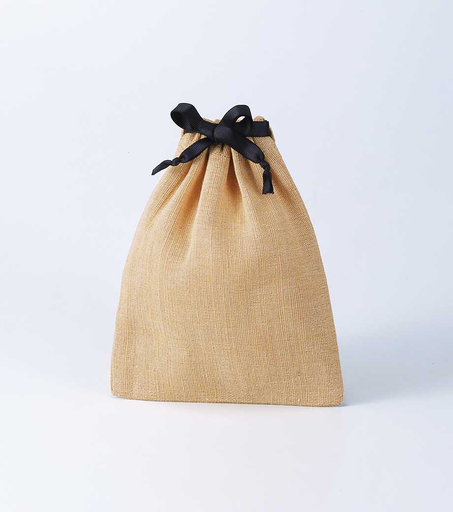 コットンリネンラッピング巾着(M)は、ナチュラルな素材感がおしゃれなラッピング資材。コットンの柔らかさと、通気性に優れたリネンの爽やかさを兼ね備えています。コットンテープをリボンのように結べば、可愛らしいギフトラッピングに。300ml程度のボトルが入るサイズ感で、箱入りの雑貨も入れやすいです。