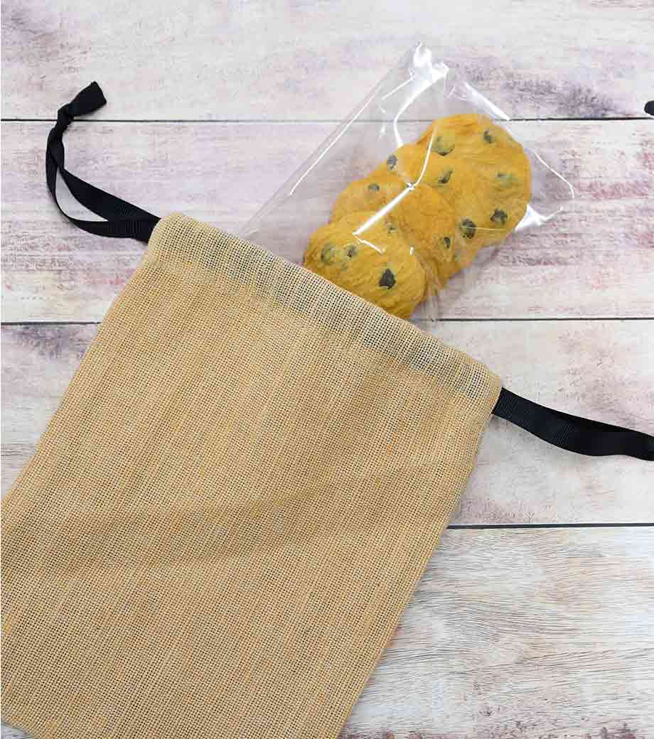 コットン部分は薄手の約3.5オンスでマチなし。生地が柔らかいので、ラッピングが大量の時もスムーズに包装できます。