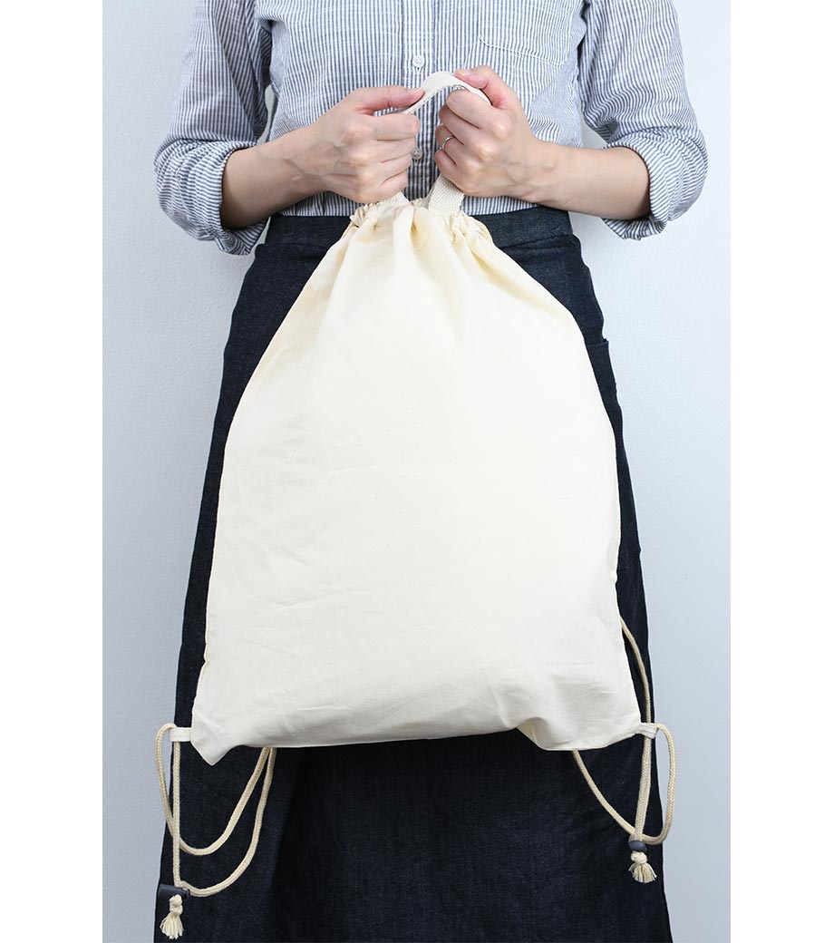 「厚手コットンハンドル付リュック 」は、旅行やアウトドアなどにも気軽に使えるリュック型コットンバッグ。旅行バッグの中に入れておけば、旅先でのサブバッグにぴったり。ハンドル付きなので、2WAYで使えてデイリーユースにもぴったり。トレンドのリュックですが、使う人を選ばない、シンプルなデザインがGOOD!
