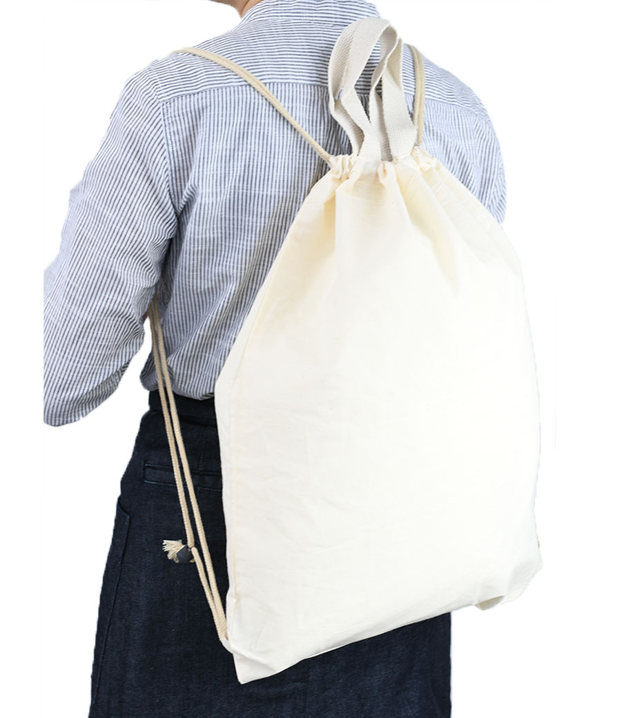 オリジナルの名入れプリントができる巾着・リュック・ナップサック コットンを取り揃えました。小ロットからご注文可能です。年代問わず喜ばれるので、ノベルティ・記念品にピッタリです。