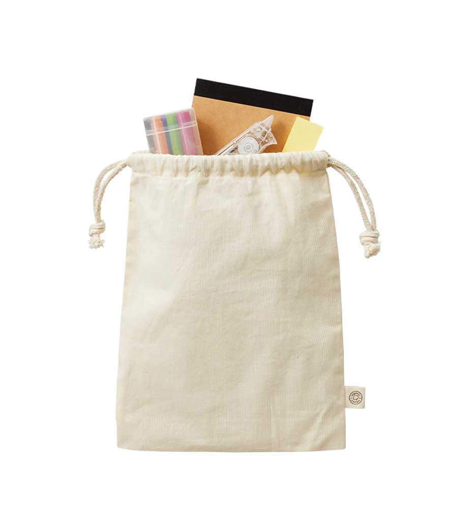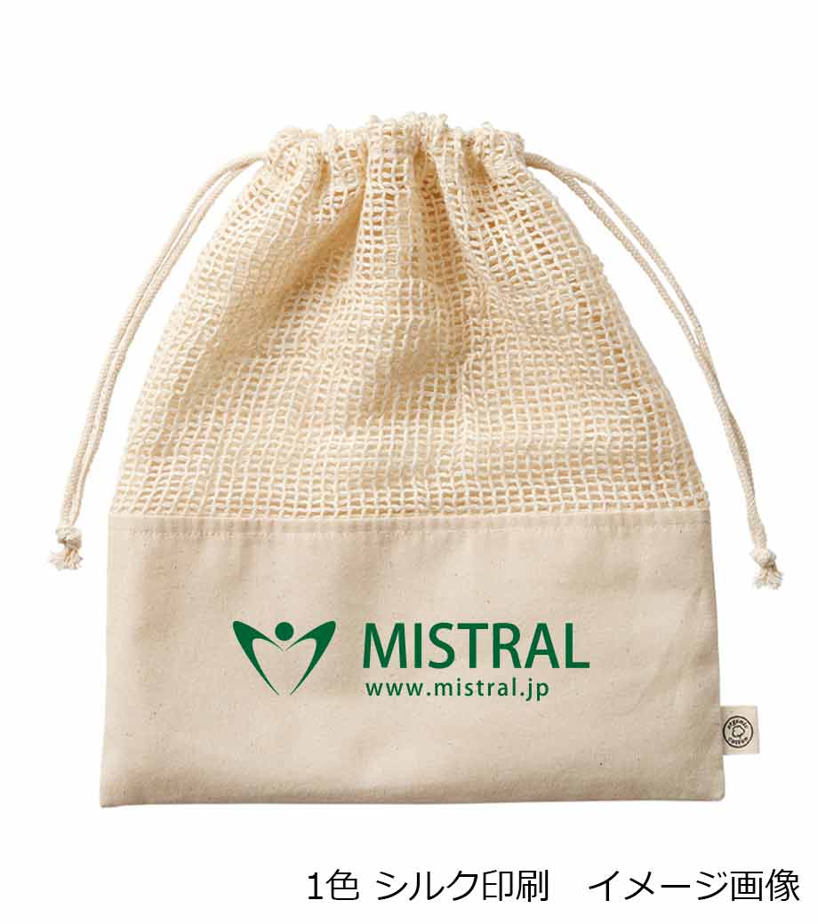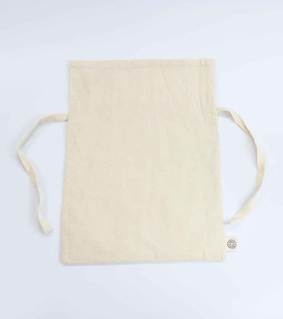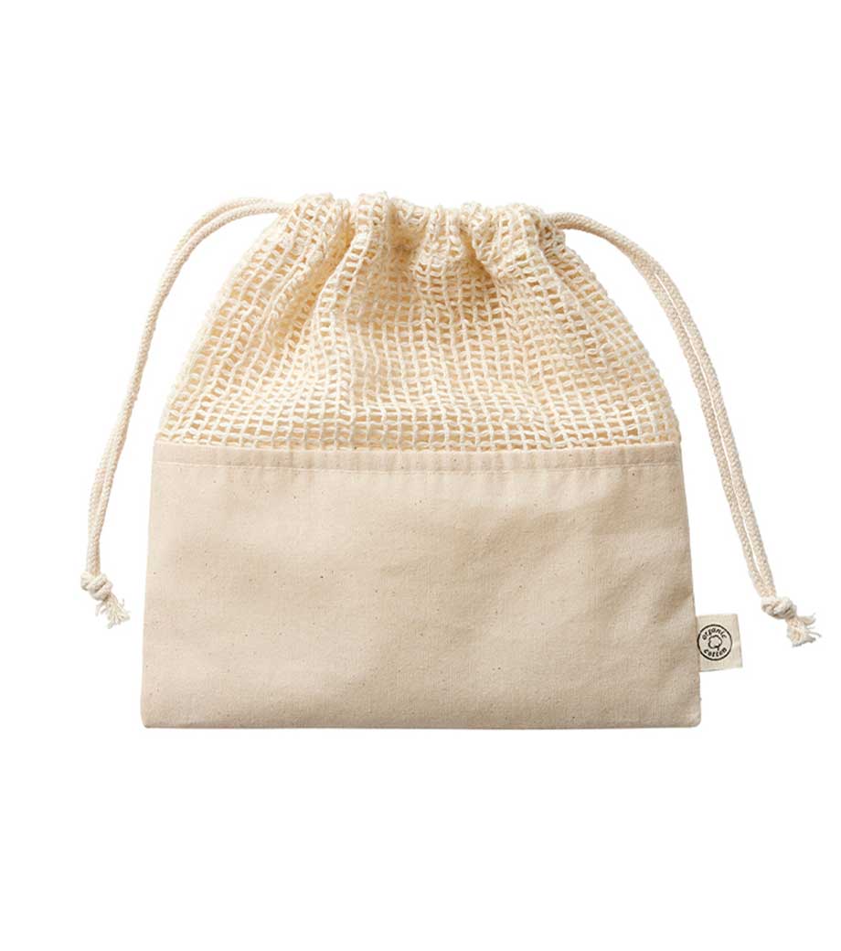 オーガニックコットンネット巾着(M)はすべての生地にオーガニックコットンを使用。SDGsに関心が高まっている今、おすすめのノベルティです。