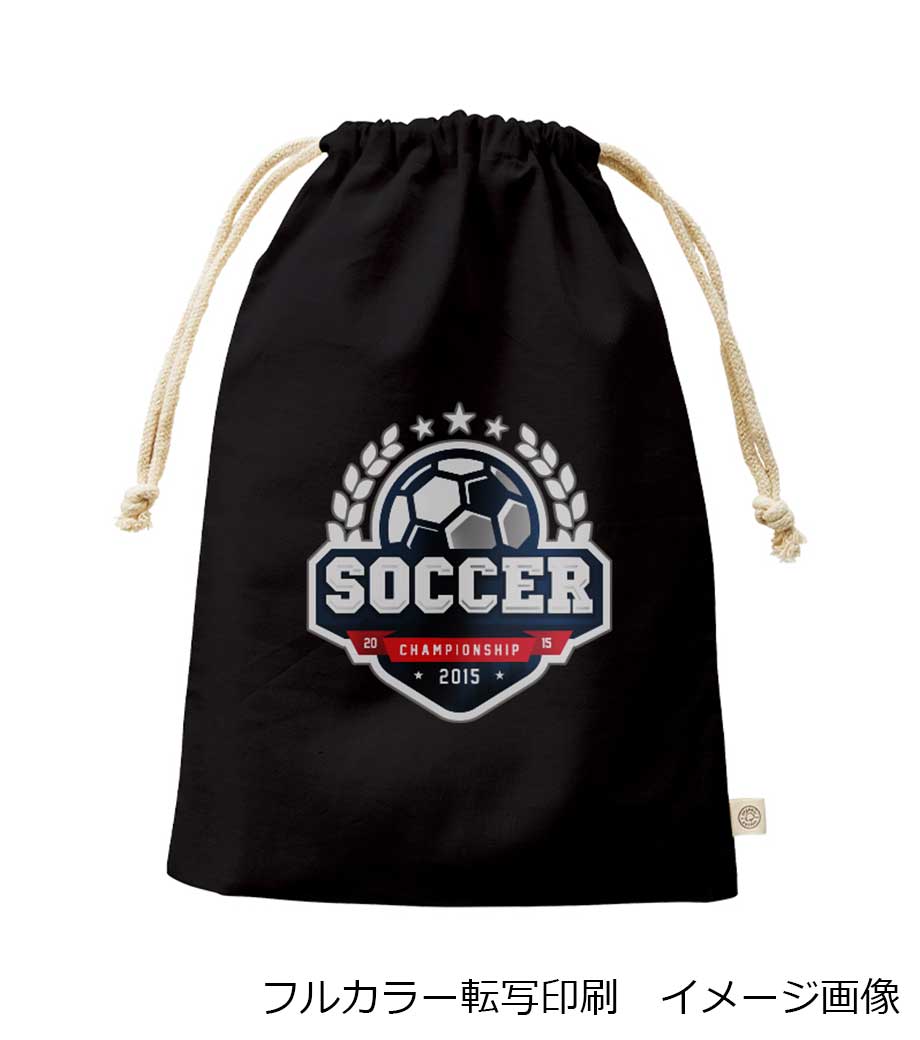 シンプルな商品のため名入れが映えやすいのが魅力です。1色またはフルカラー印刷でオリジナル巾着を製作できますよ。