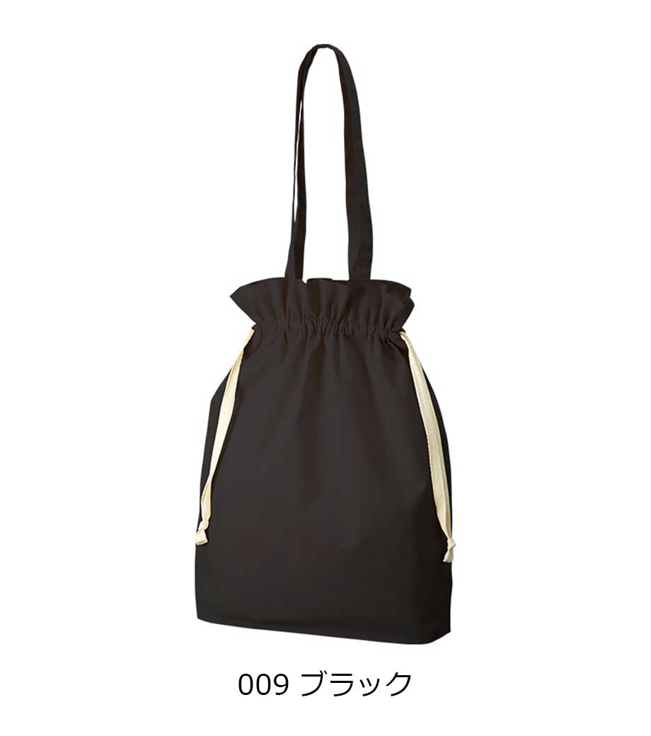 「厚手コットンガゼット巾着トート(L)」は、口がキュッと閉まる巾着タイプのトートバッグ。中身が外から見えないので、貴重品を入れても安心。マチ付でたっぷり入るので、通学のメインバッグや、買い物のエコバッグとしても利用できます。数日の出張や旅行の際に衣服を入れてキャリーバッグにしまえば、コンパクトに荷物をまとめられますよ。