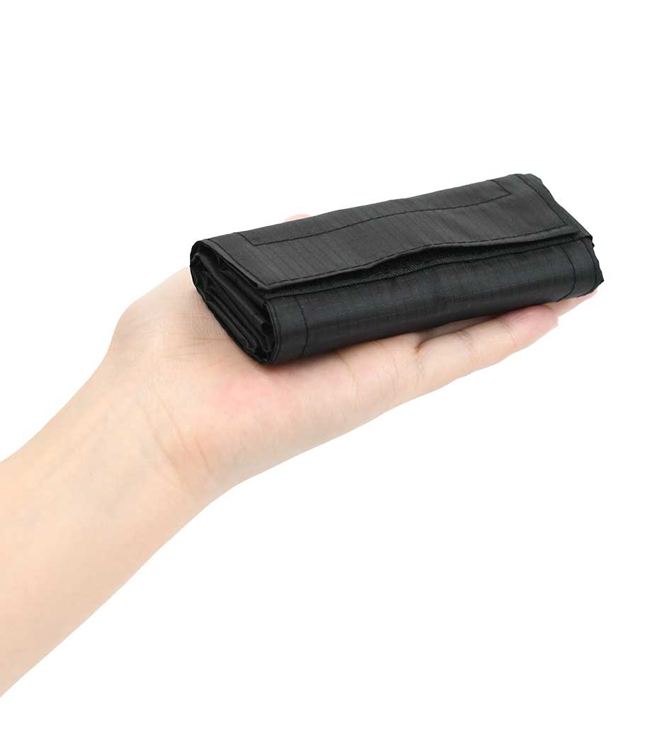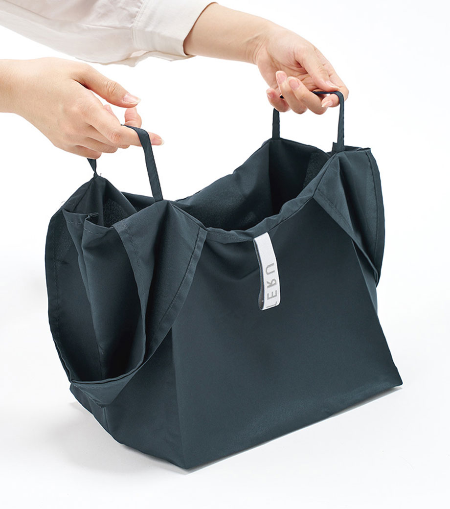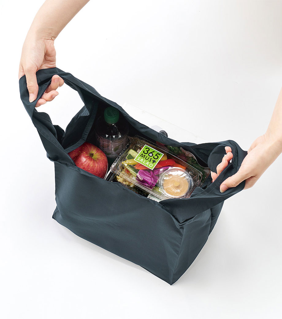 バッグ本体はスッキリとコンパクトに折り畳むことができ、面ファスナーで留めるだけのお手軽さ!普段使うバッグに忍ばせておけばいつでもさっと取り出せます。