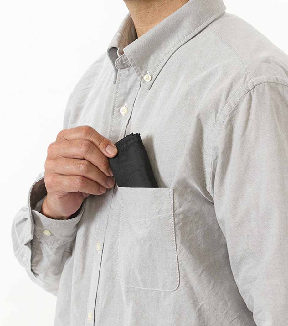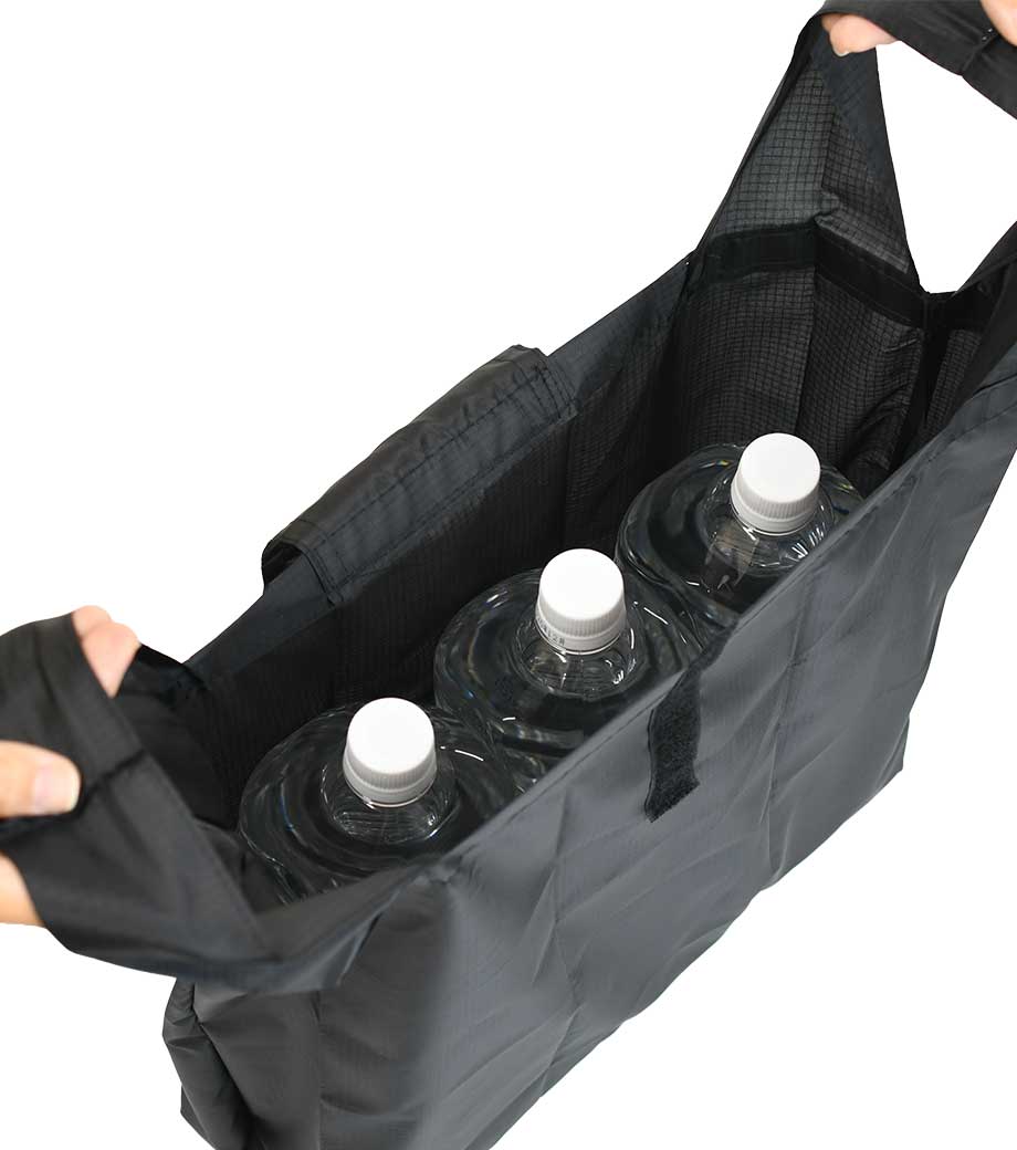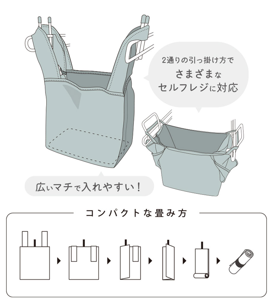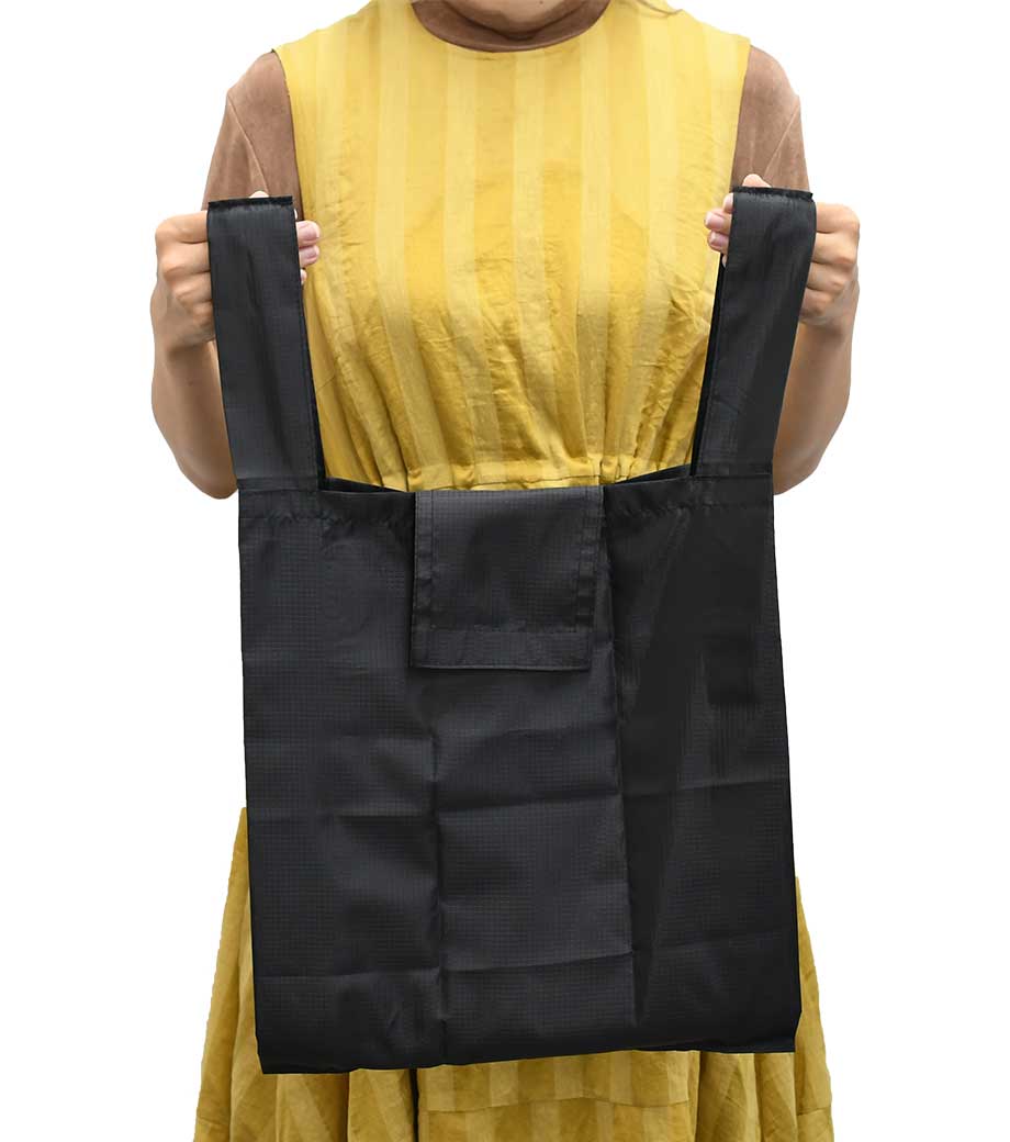 バッグ本体はスッキリとコンパクトに折り畳むことができ、面ファスナーで留めるだけのお手軽さ!普段使うバッグに忍ばせておけばいつでもさっと取り出せます。