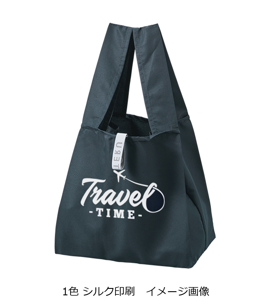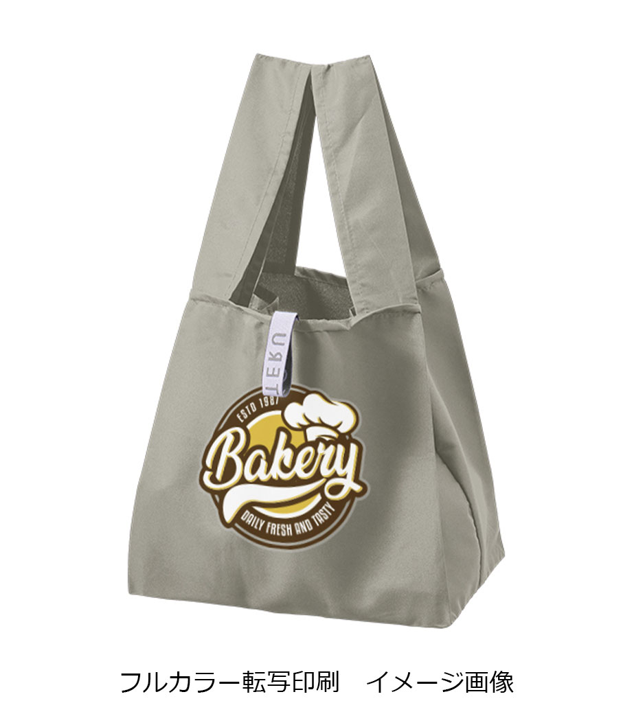 1色印刷またはフルカラーで名入れが可能です。ポケット部分にも印刷できるので、使用時はもちろん折り畳んだ状態でもブランドをしっかりアピール。実用性と販促効果を兼ね備えた、高機能なエコバッグです。