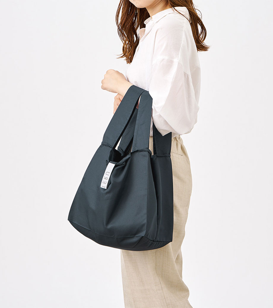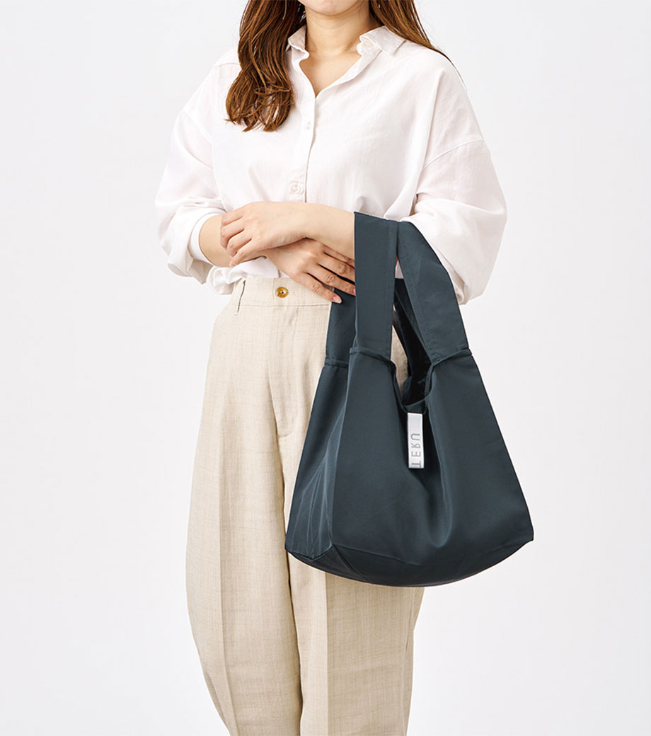 コンパクトに折りたたんで携帯できるので急に荷物が増えたときも安心。しっとりなめらかな触り心地の生地は、シワが戻りやすいこだわりの素材を使用しています。