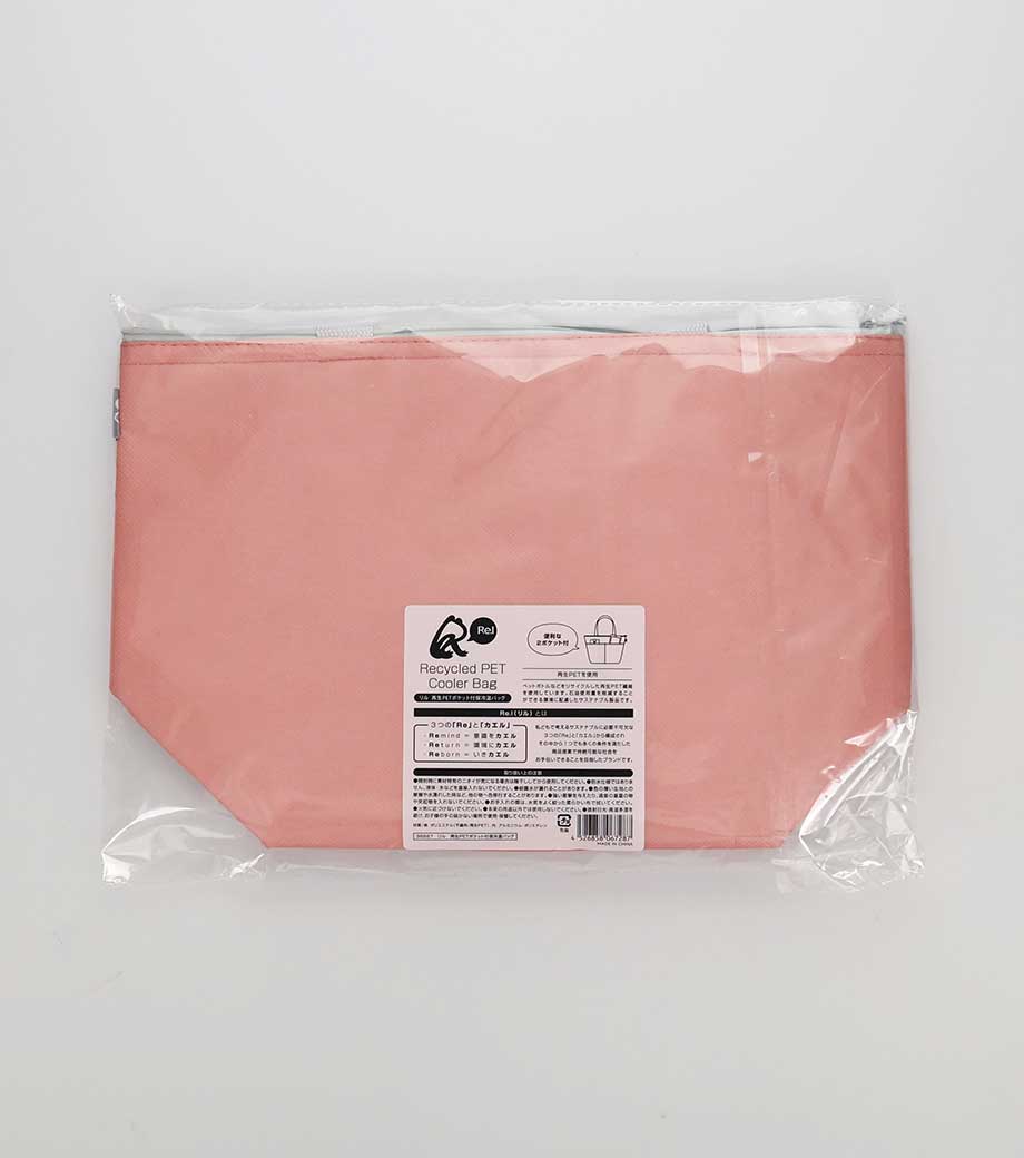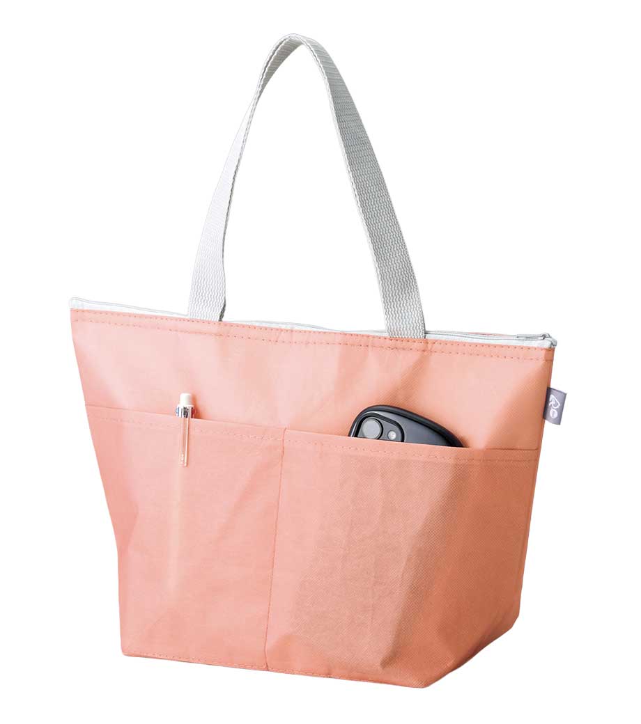 ボックス型で安定感があり、500mlペットボトルが10本入る大きさです。外側には2つポケットがあるので収納力もばっちり。ファスナー式の内側アルミ蒸着仕様なので普段のお買いもの以外にもピクニックやキャンプなど、野外レジャーシーンでも大活躍です。