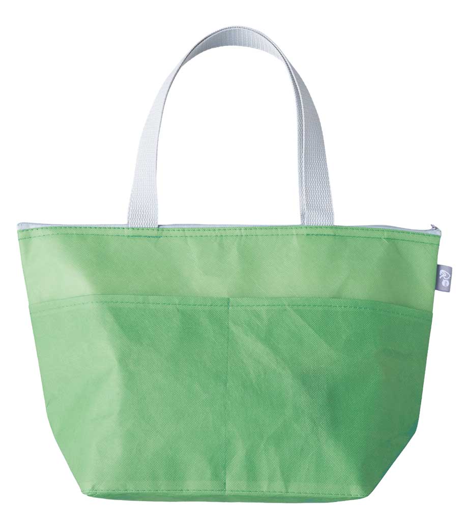 「不織布保冷ライントート」は、ランチバッグに最適なアルミ保冷温バッグです。本体は鮮やかな10色展開で、1色印刷でオリジナル名入れが可能です。