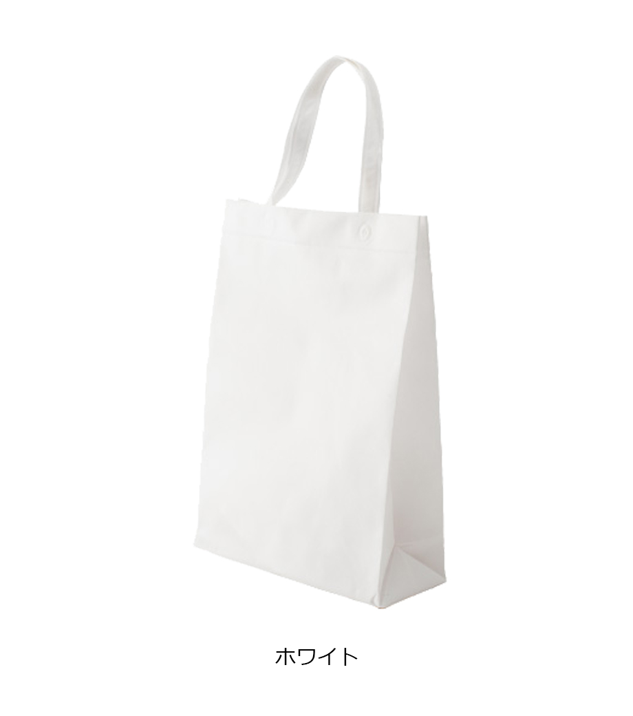 肩掛けできる長めの持ち手が特徴の不織布バッグ。B4サイズ対応です。約90mmの底マチ付きで厚めのカタログを入れたり、衣類を入れることができます。資料を配布する展示会や説明会での使用やアパレルのショッパーにいかがでしょうか。