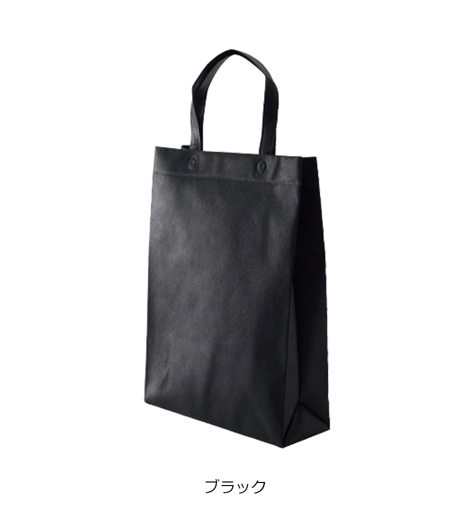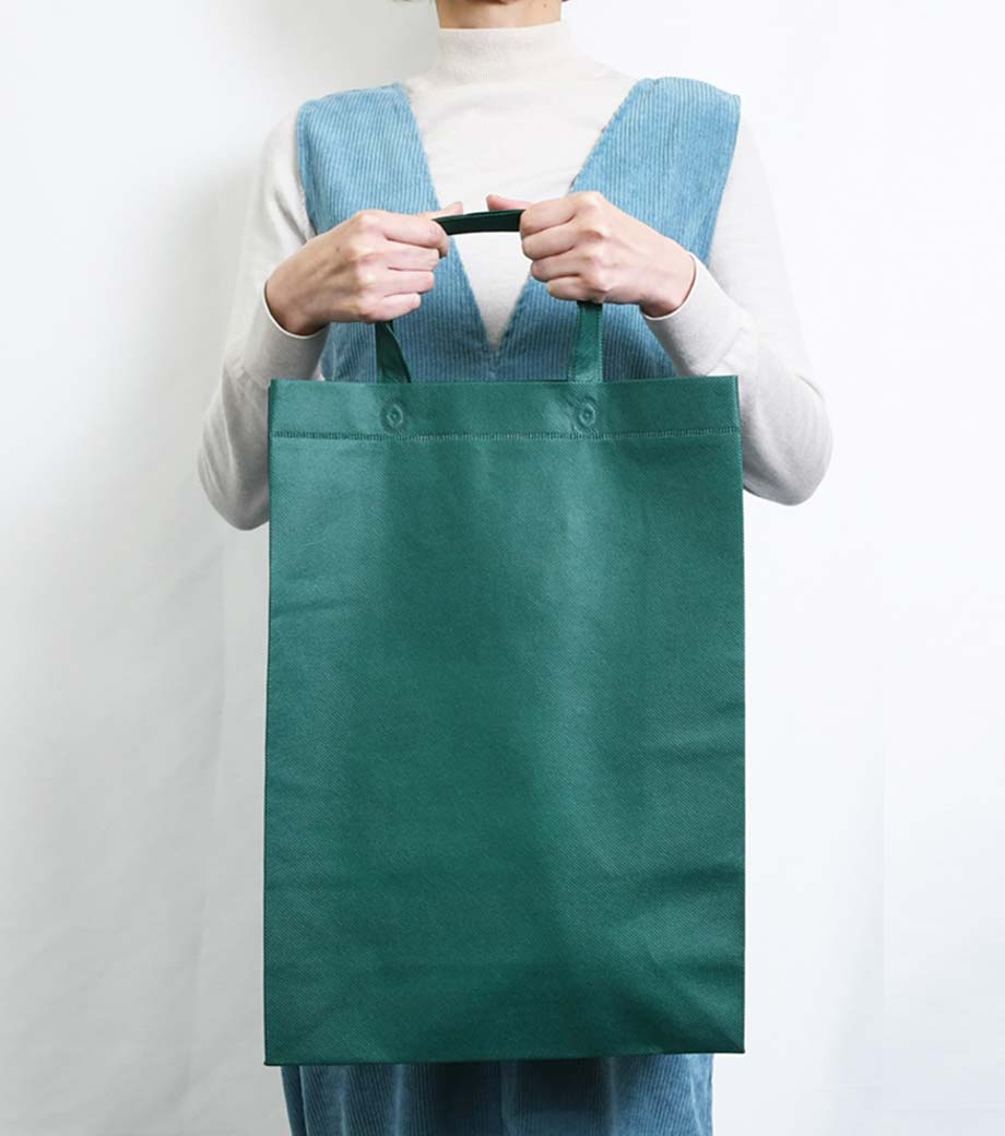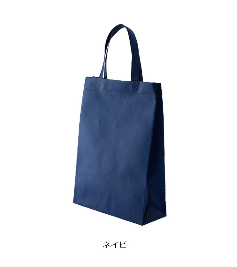たっぷり収納可能なの大容量の不織布バッグです。底に台紙が入っているので、荷物を入れてもきれいなシルエットにまとまります。持ち手短めの手提げタイプ。縦長でB4サイズの書類や資料が余裕で入ります。贈答品やサンプル、企業案内や大学案内、イベントでの配布物を入れるのにもオススメです。