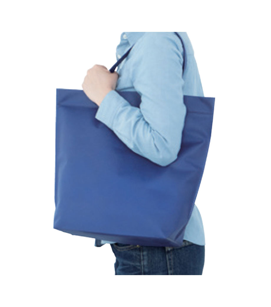 再生不織布バッグ(M)は、底マチ付きで荷物がたくさん入れられるトートバッグ。肩掛けできて持ち歩きやすい形状です。A4のカタログや資料はもちろん、衣類や日用品を入れるのにも重宝します。