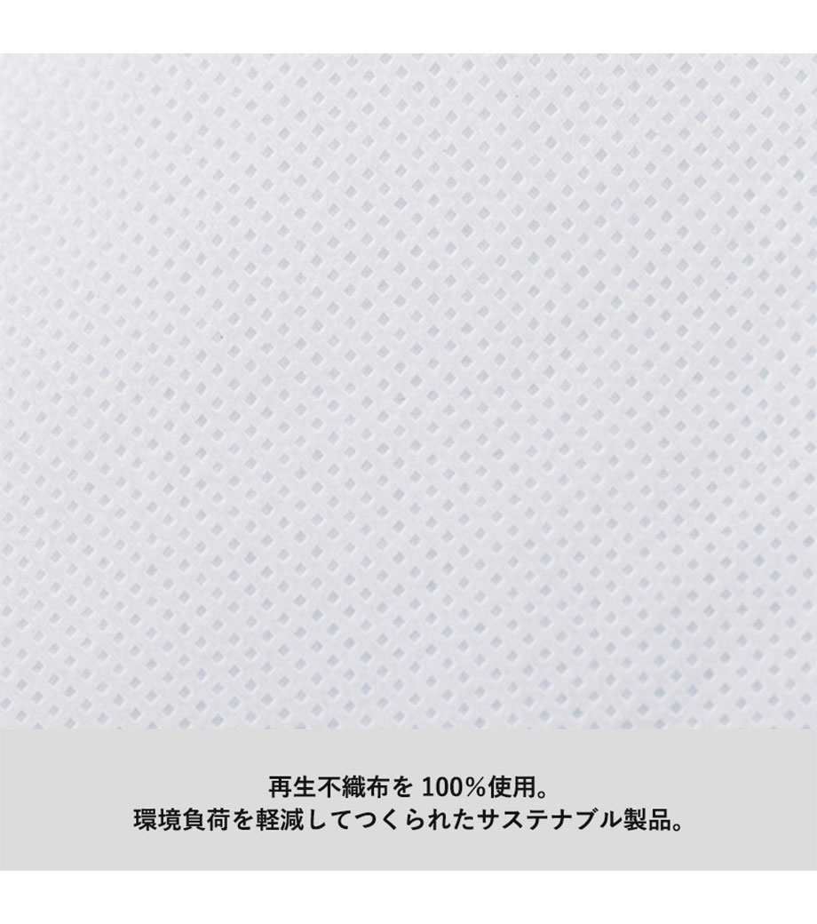 不織布の切れ端を集めて再利用した「再生不織布」を100%使用。お手頃価格ながらもエコマーク認証済みで、SDGsの取り組みに貢献できるノベルティです。