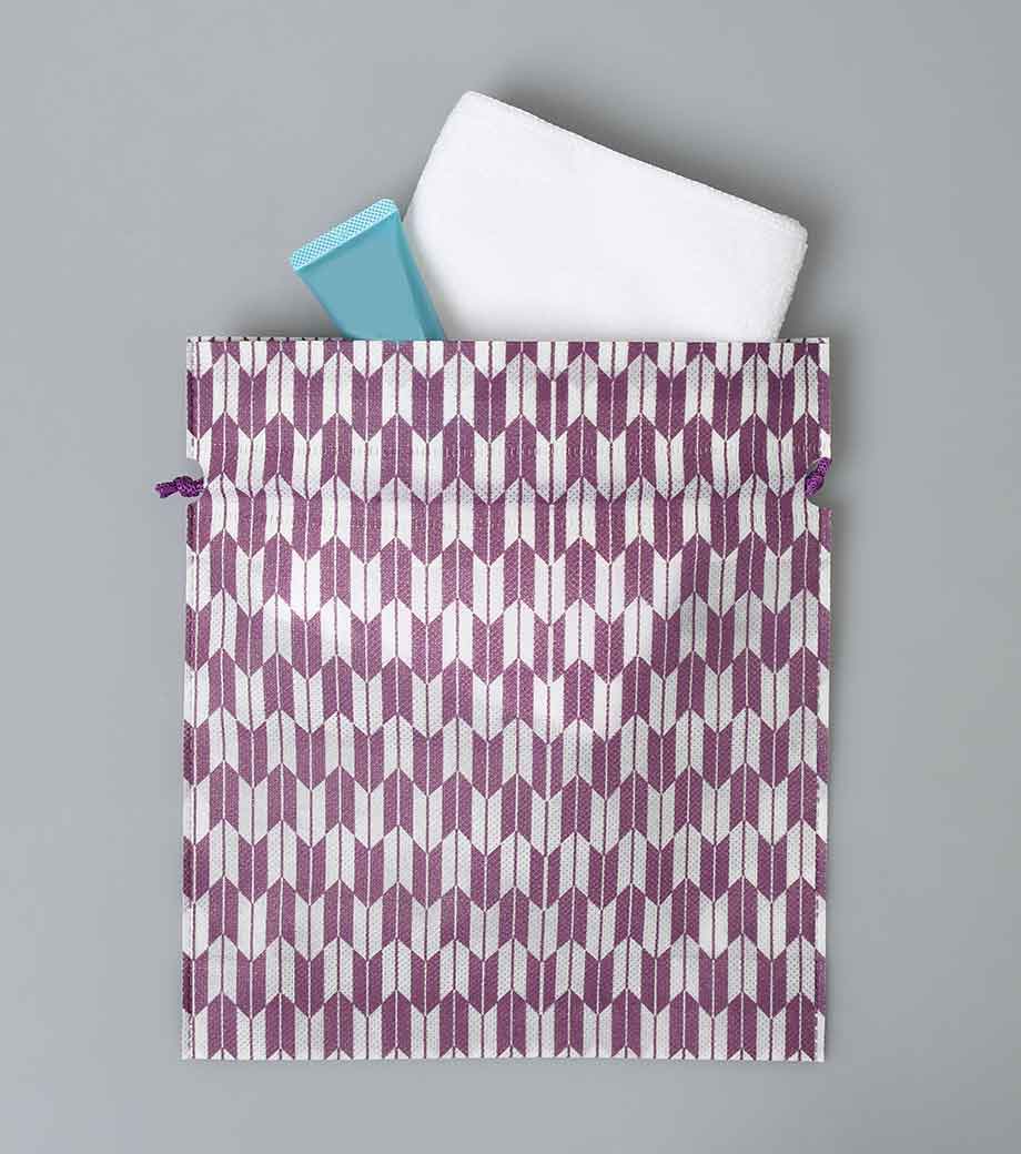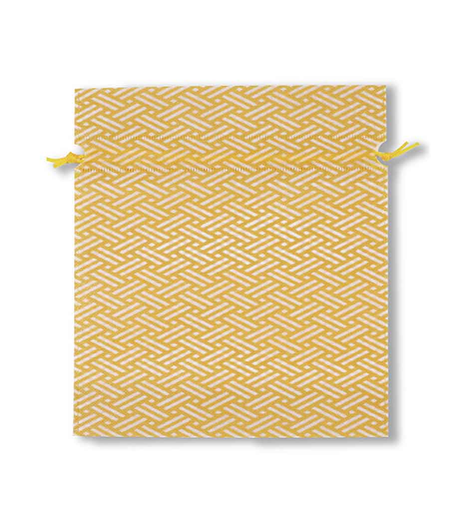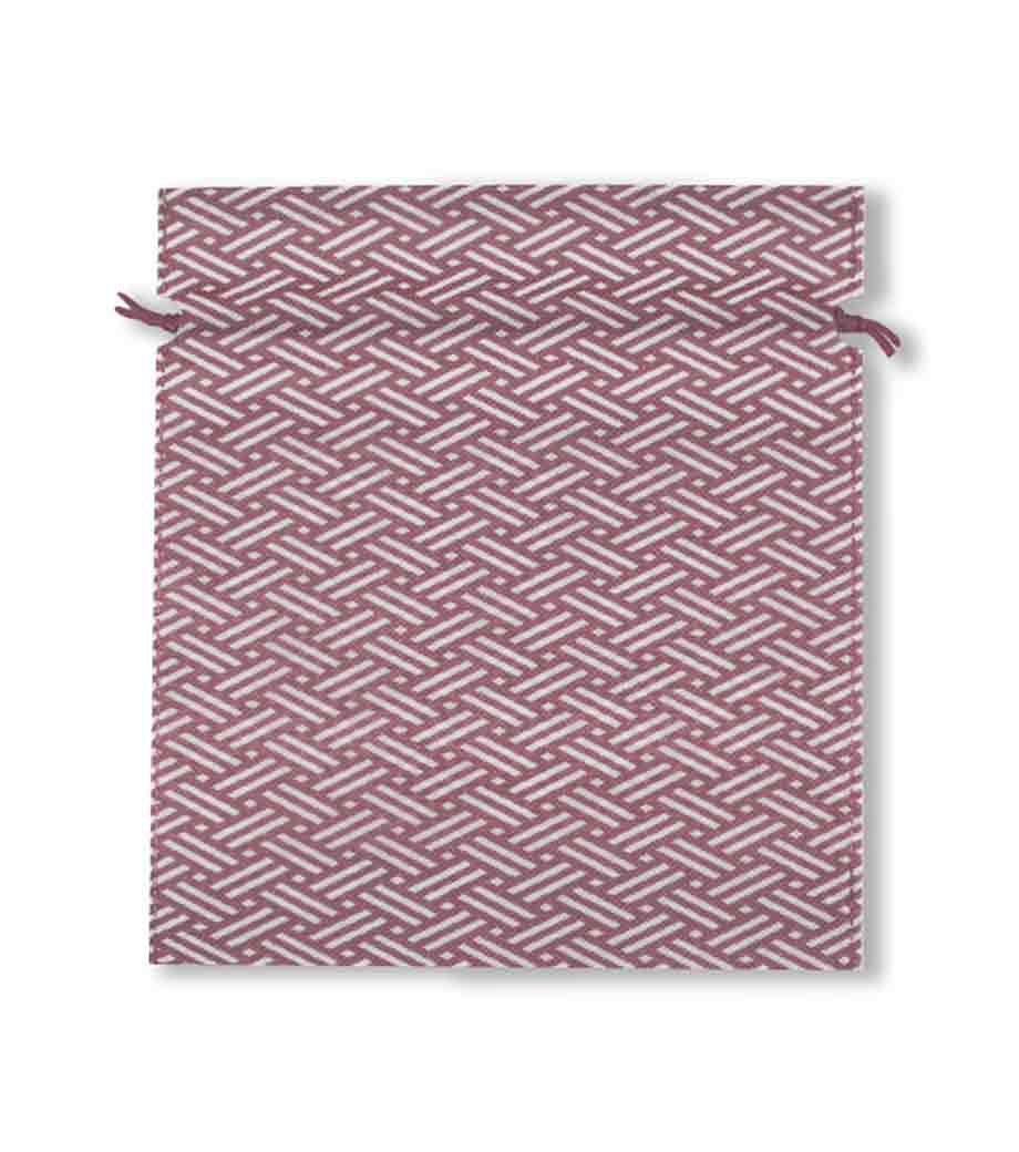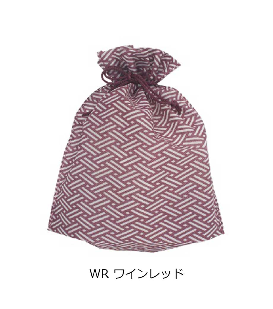 不織布和風柄巾着 檜垣柄は、ベーシックな和柄の巾着。軽くて丈夫な不織布製で、マチがあるのでアメニティやタオル入れにぴったりです。落ち着いたトーンの5色展開。旅館や温泉に限らず、インバウンド需要の高いホテルやおみやげ店などにもおすすめです。