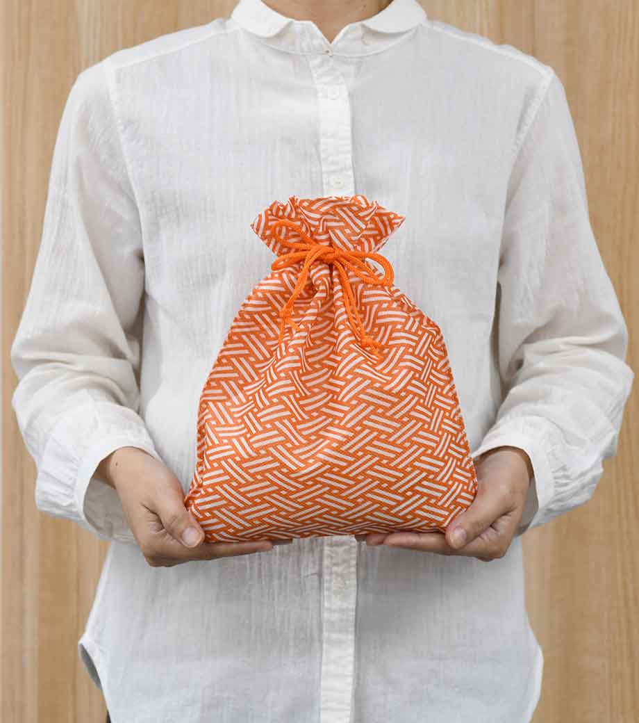 1色印刷をしてオリジナル巾着・オリジナルラッピング袋が安価に作れます。周年記念やキャンペーンプレゼント用に、ショップの商品パッケージ・ギフト包装用にもおすすめです。