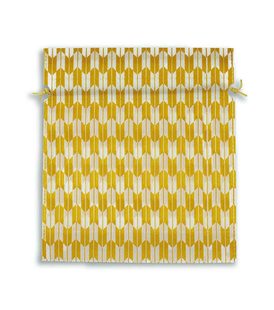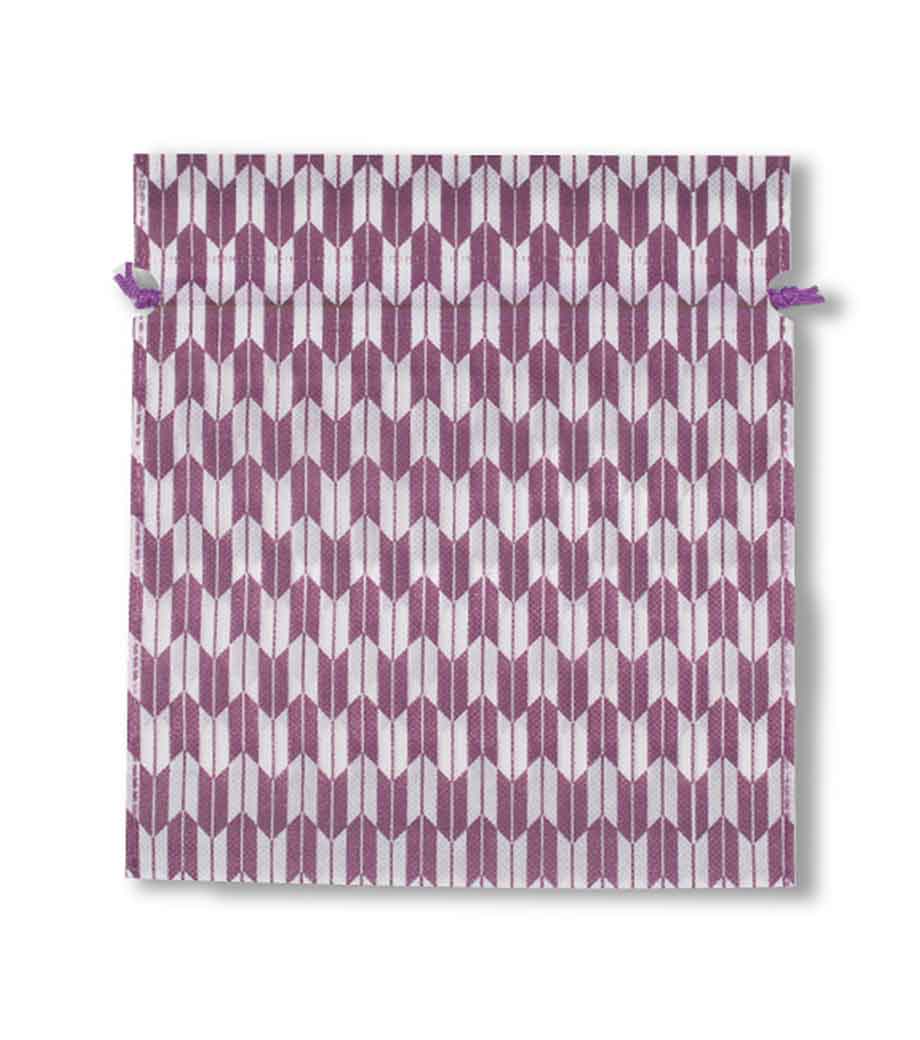 不織布和風柄巾着 矢絣柄は、ベーシックな和柄の巾着です。軽くて丈夫な不織布製で、マチがあるのでアメニティやタオル入れにぴったり。旅館や温泉に限らず、インバウンド需要の高いホテルやおみやげ店などにもおすすめです。