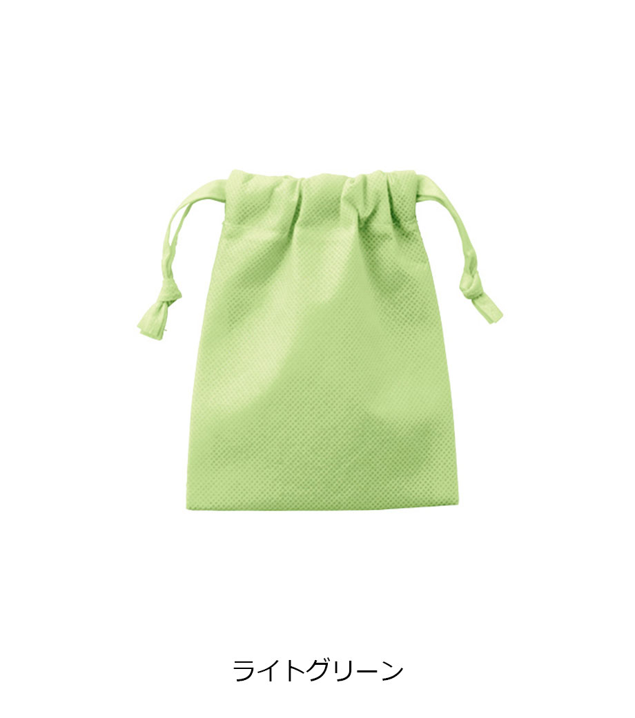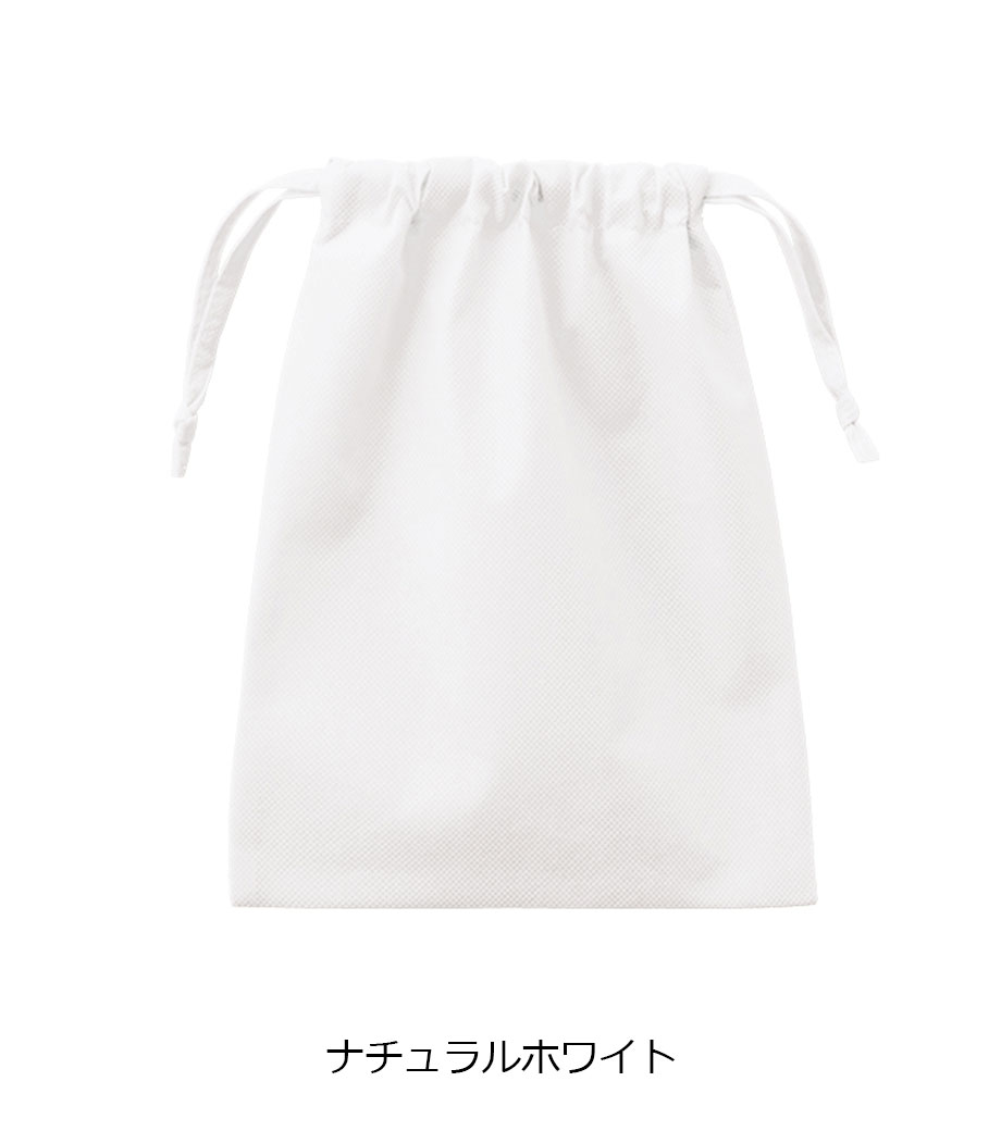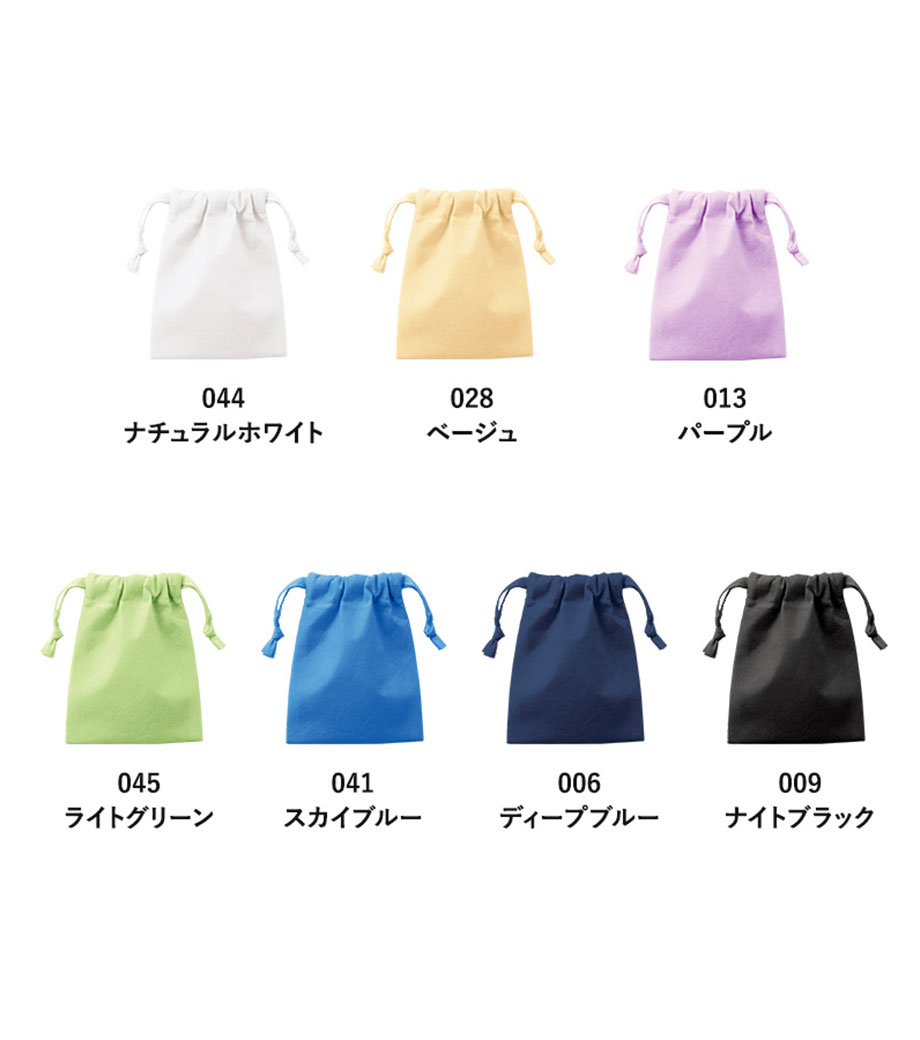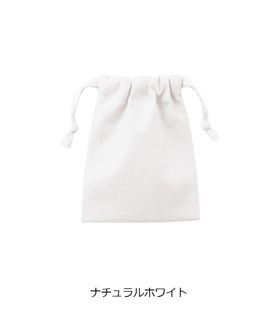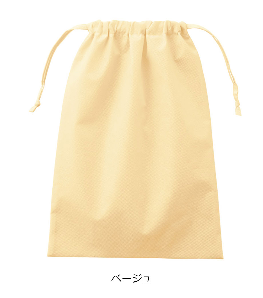 シンプルでフラットな形状の巾着です。家の鍵やイヤホンなどの小物入れにちょうど良いサイズ。旅館・ホテル・エステ等での小物入れ、イベントのおまけを入れる袋として活用してみてはいかがでしょう。軽くて丈夫な不織布素材は日常的に気兼ねなく使えます。好みに影響されない落ち着いた色合いが、中に入れる物を引き立てます。