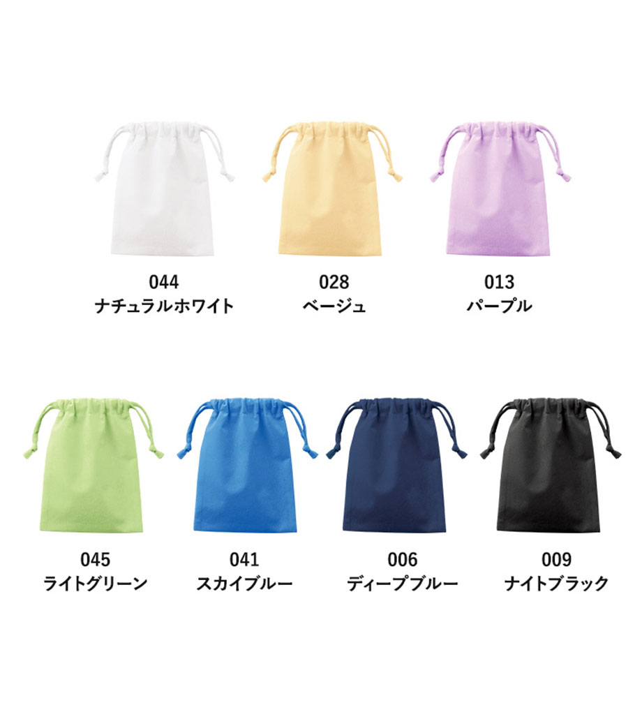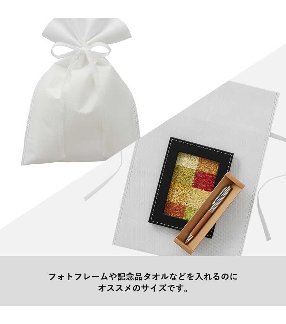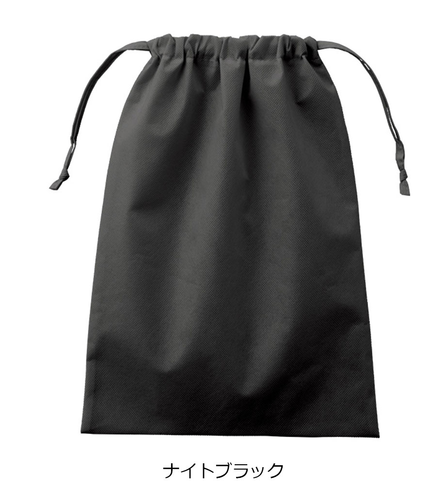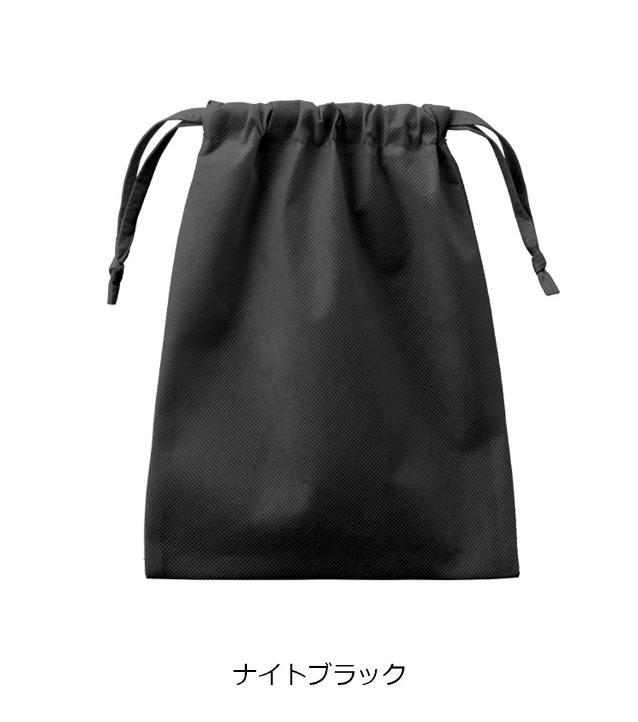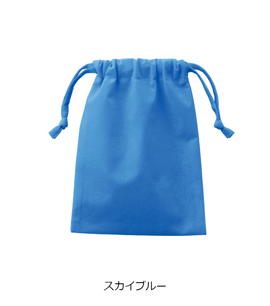 シンプルでフラットな形状の巾着です。家の鍵やイヤホンなどの小物入れにちょうど良いサイズ。旅館・ホテル・エステ等での小物入れ、イベントのおまけを入れる袋として活用してみてはいかがでしょう。軽くて丈夫な不織布素材は日常的に気兼ねなく使えます。好みに影響されない落ち着いた色合いが、中に入れる物を引き立てます。