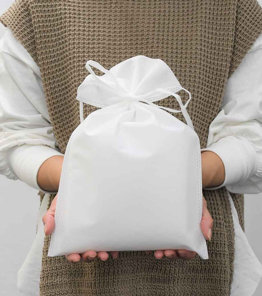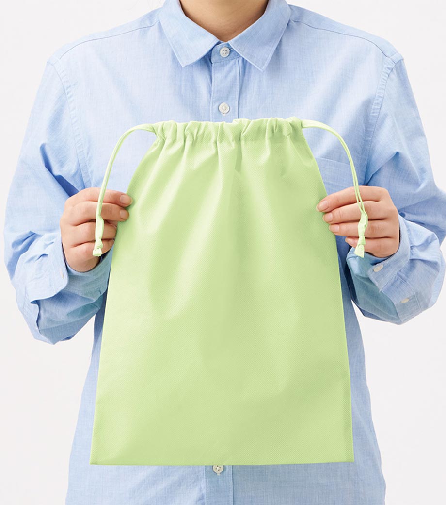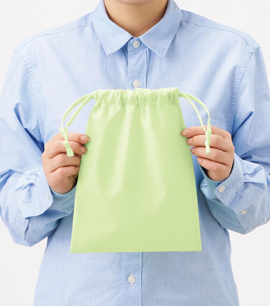 巾着タイプの不織布バッグを集めました。卸価格で小ロットからご提供でき、自動見積でその場で価格がわかります。