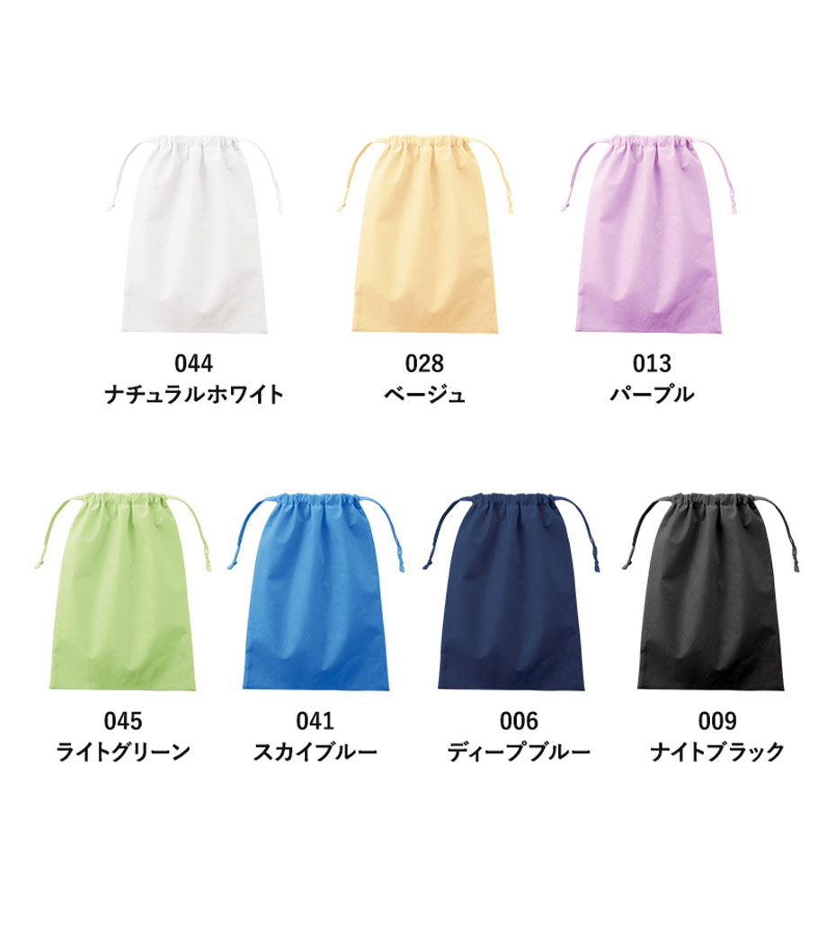 「不織布巾着」は、軽くて丈夫な不織布素材で作ったバッグ。口が広くて使いやすい、巾着タイプのデザインに仕上げました。お弁当箱を入れたり、旅行用品を収納したり、使い方はいろいろ。豊富なカラー展開の中から、お好きなカラーをどうぞ!