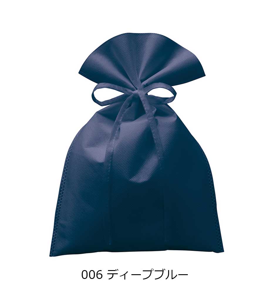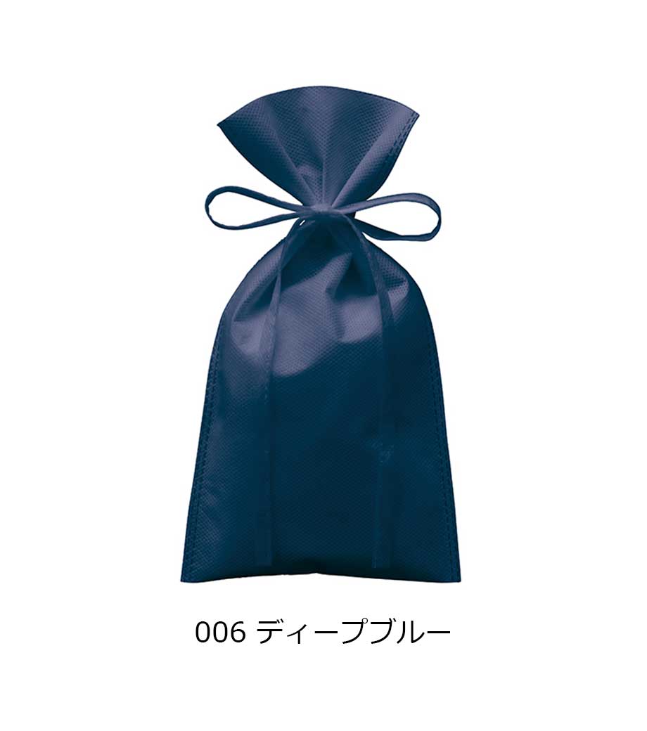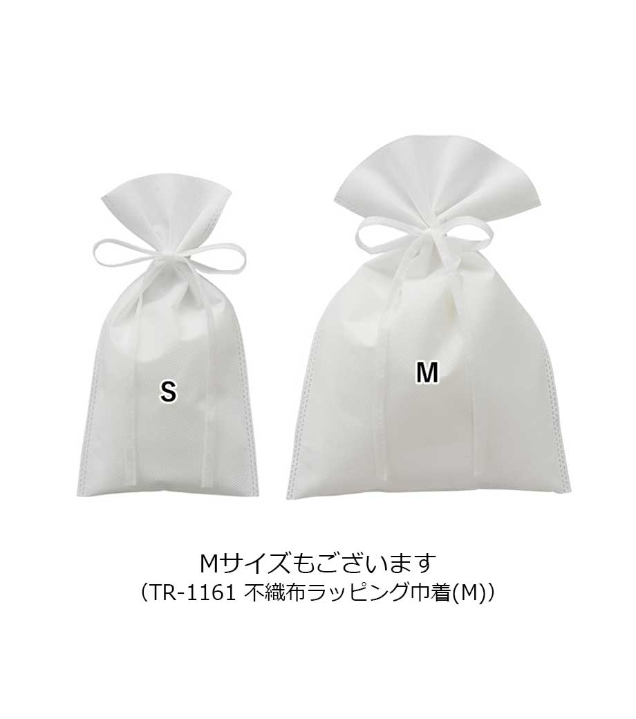 不織布ラッピング巾着(M)は紐をリボンとして結べる不織布素材のかわいいラッピング巾着です。300mlのペットボトルが入る大き目のサイズ感です。文房具や記念品のタオルなどを入れるのにおすすめ。カラフルな本体色からお店のイメージカラーやコーポレートカラーに合わせて選べます。1色・フルカラー印刷でロゴや店名を入れれば、オリジナル性の高いラッピングに。ノベルティ入れとして使用すれば、包装にまでこだわったワンランク上のノベルティになりますね。