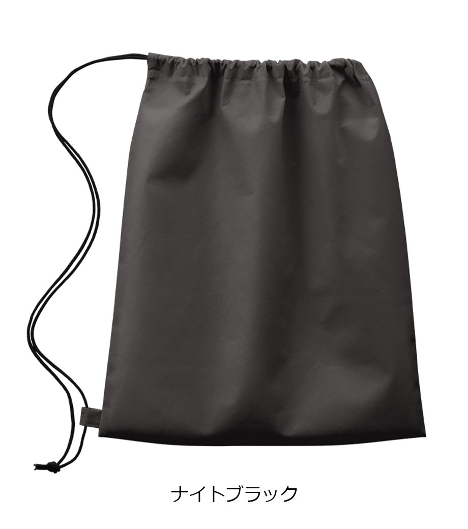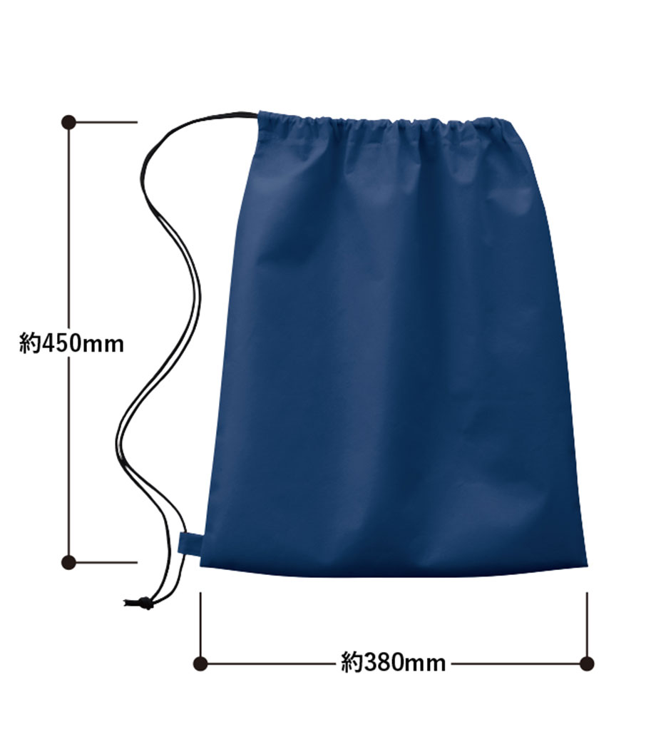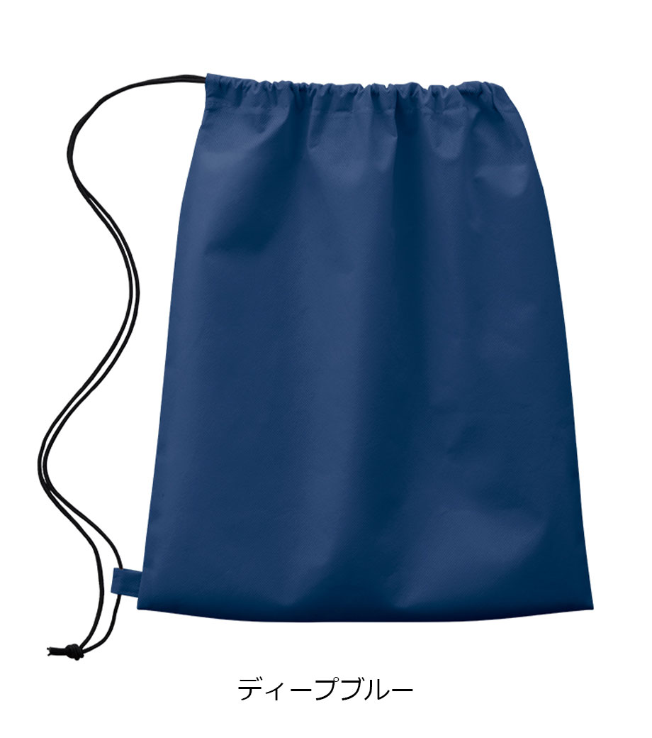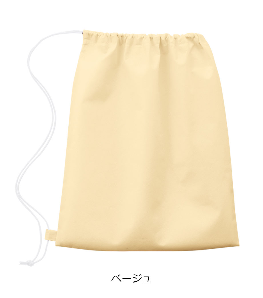 片ひもタイプの不織布ナップサック。スニーカーやTシャツ、スポーツタオルを一緒に入れられる大きめサイズです。肩掛けで持ち運べるので荷物を沢山入れても安心。スポーツやジム用の着替え入れにぴったりです。防災グッズを入れれば避難用バッグにもなります。