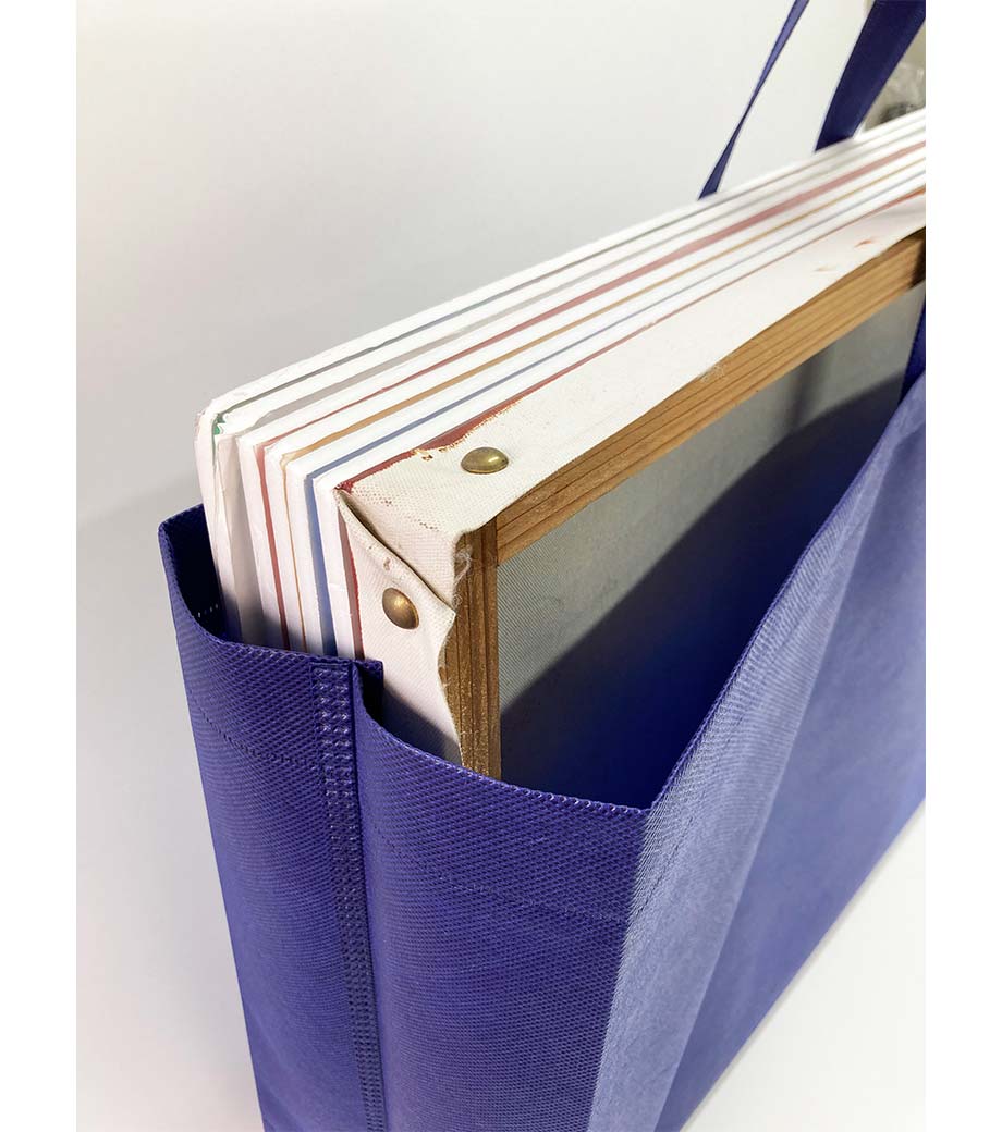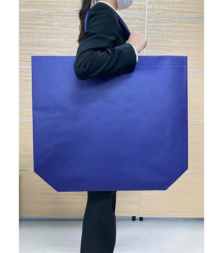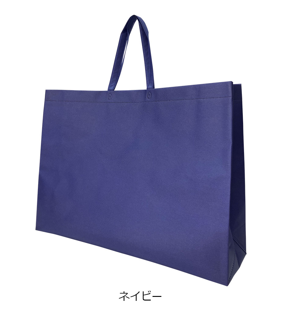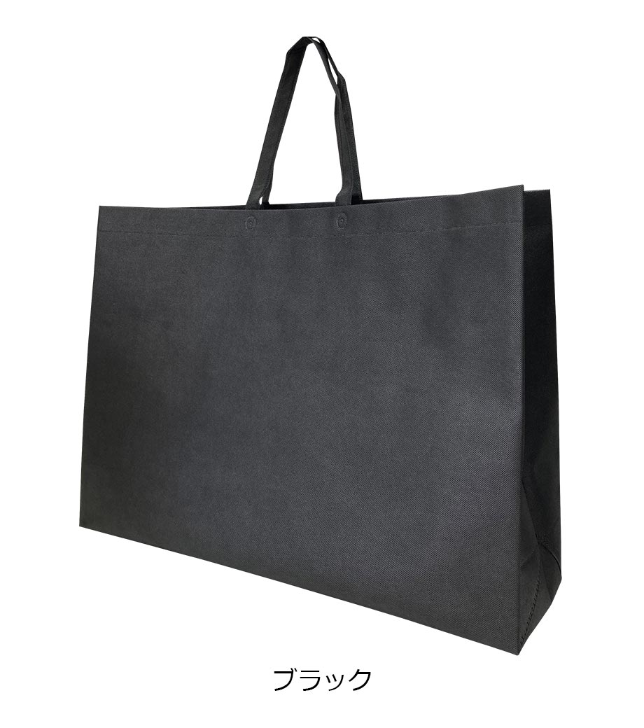 名入れが目立つ超特大サイズの横長不織布バッグです。肩掛けできる長めのハンドル。約180mmと広め角マチで大きなパネル等もたくさん収納できます。絵画や額装、展示会・アパレルのショッパーなど大きな荷物を持ち運ぶ時に大活躍!ランドリー用バッグにもオススメです。