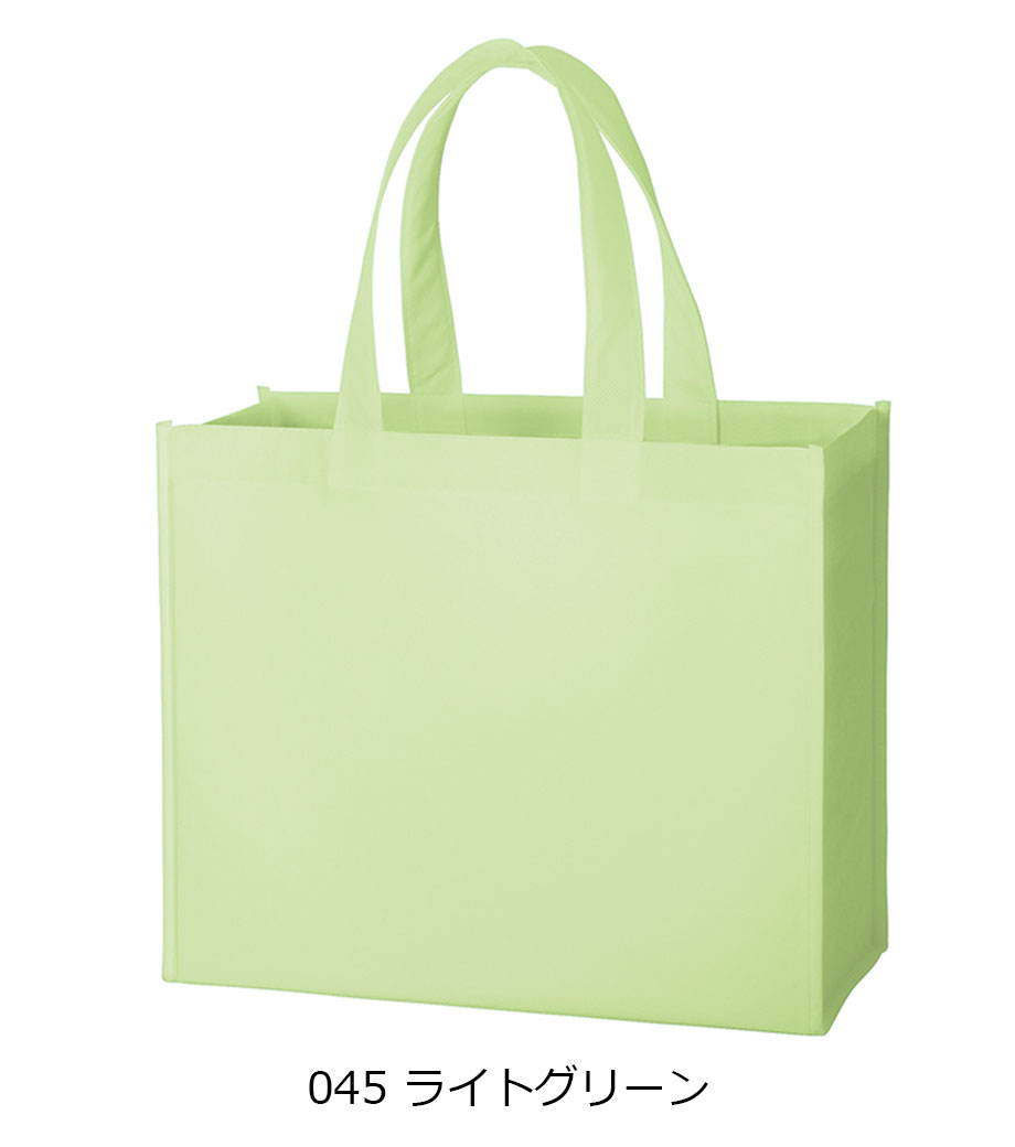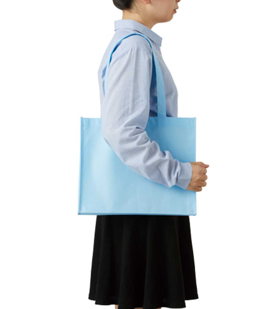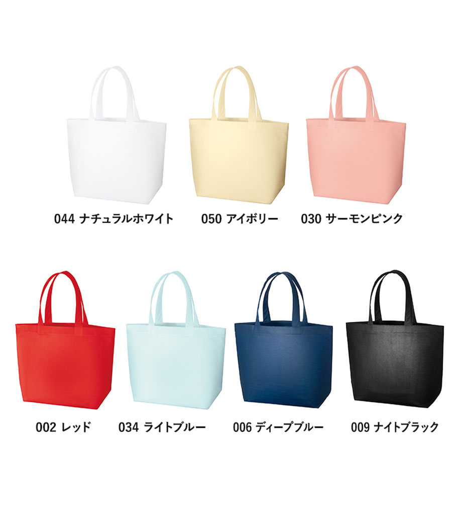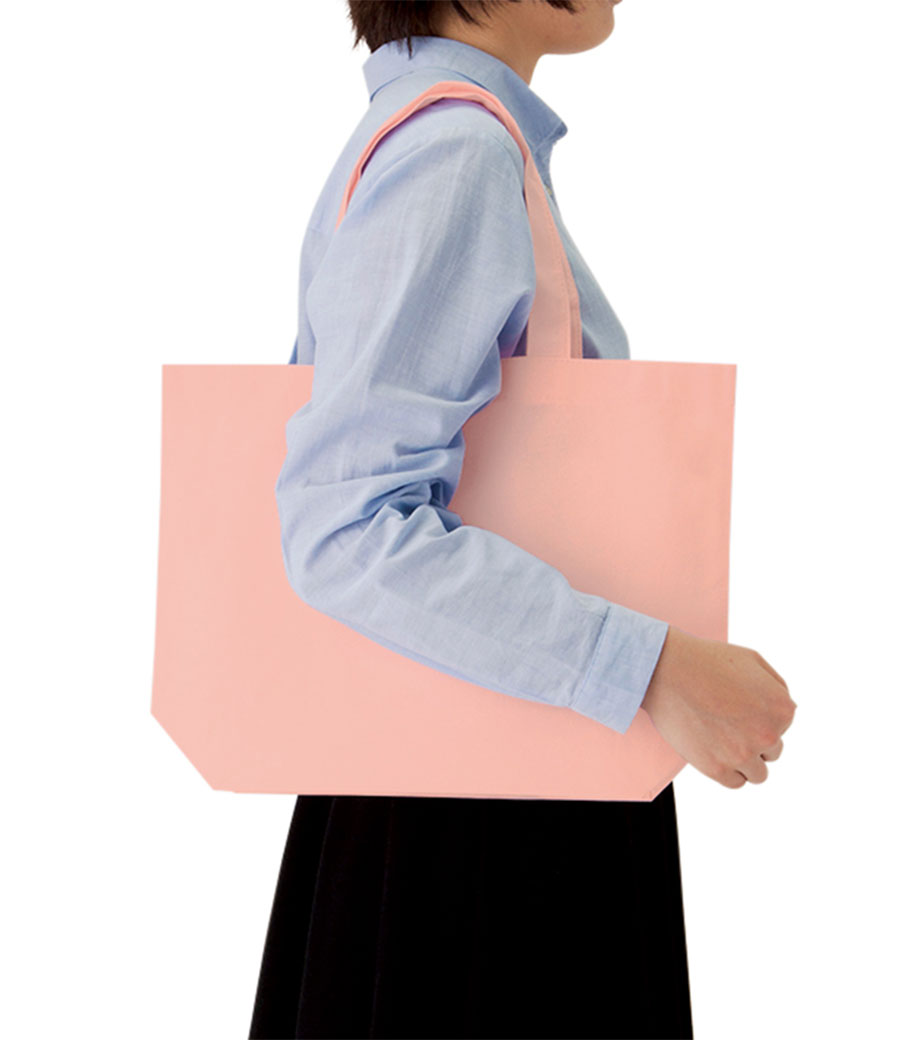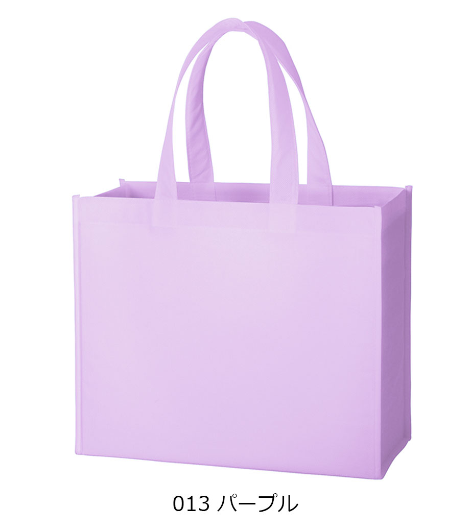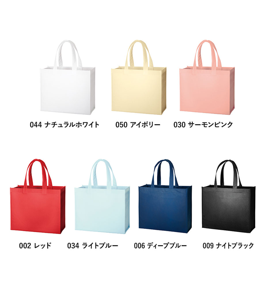 不織布とは、繊維を織らずに絡み合わせたシート状の素材。紙のように軽いうえ、紙より耐久性があるため、繰り返し使えるエコ素材として人気です。不織布スタンダードバッグは、使うシーンを選ばない定番トート。カラフルな色合いが楽しいバッグです。
