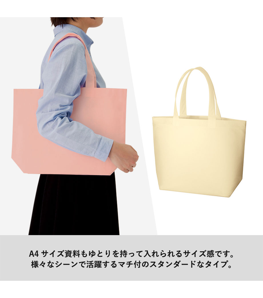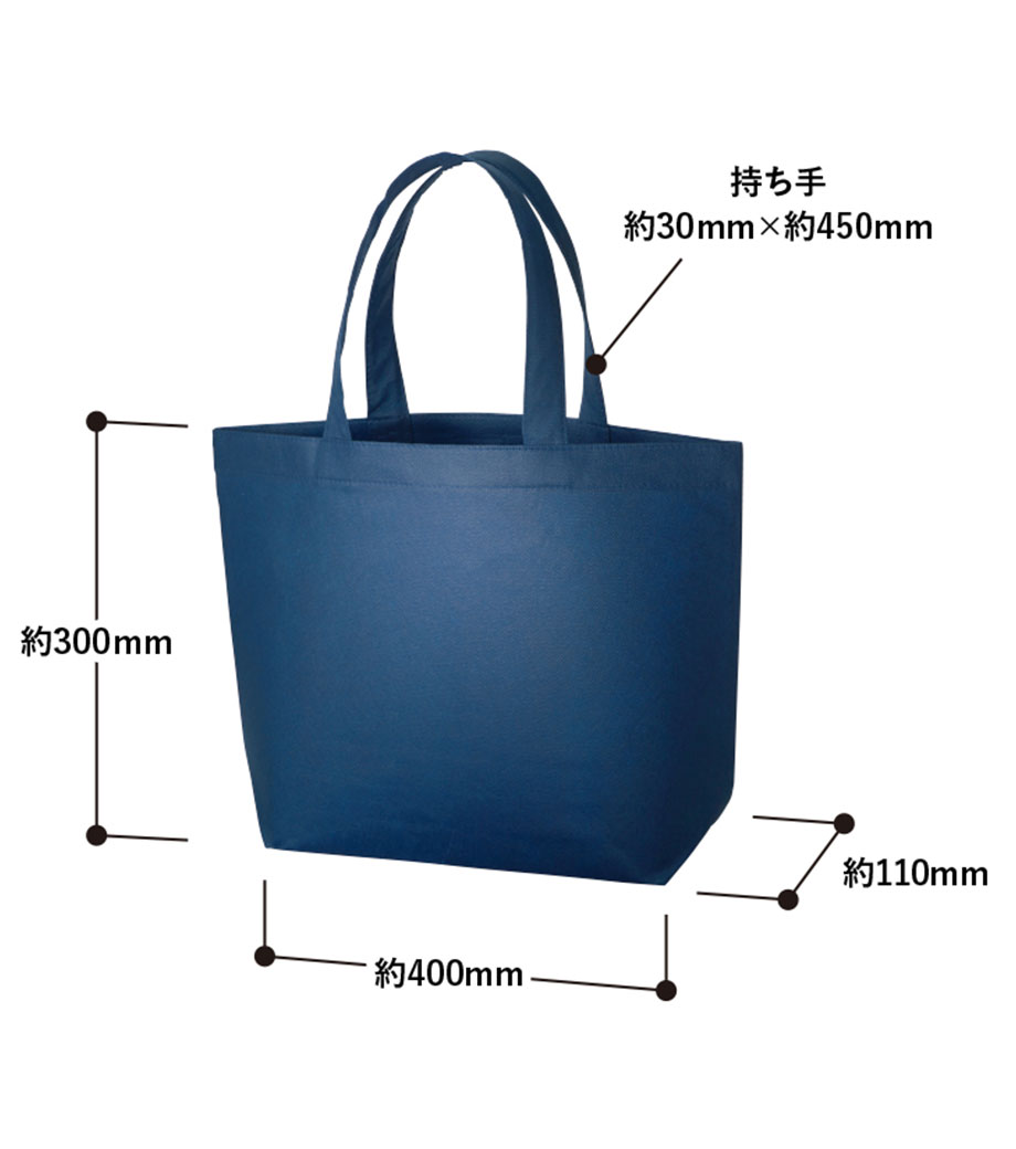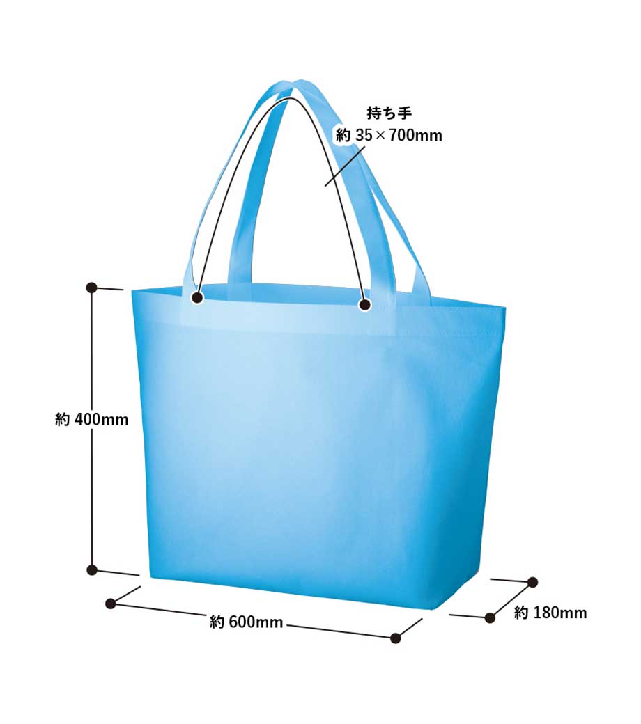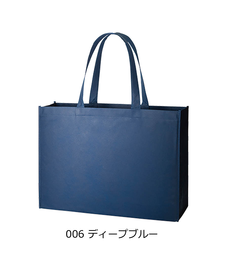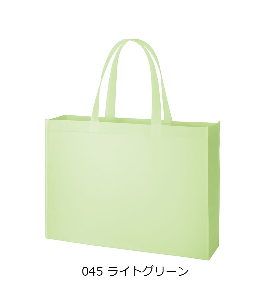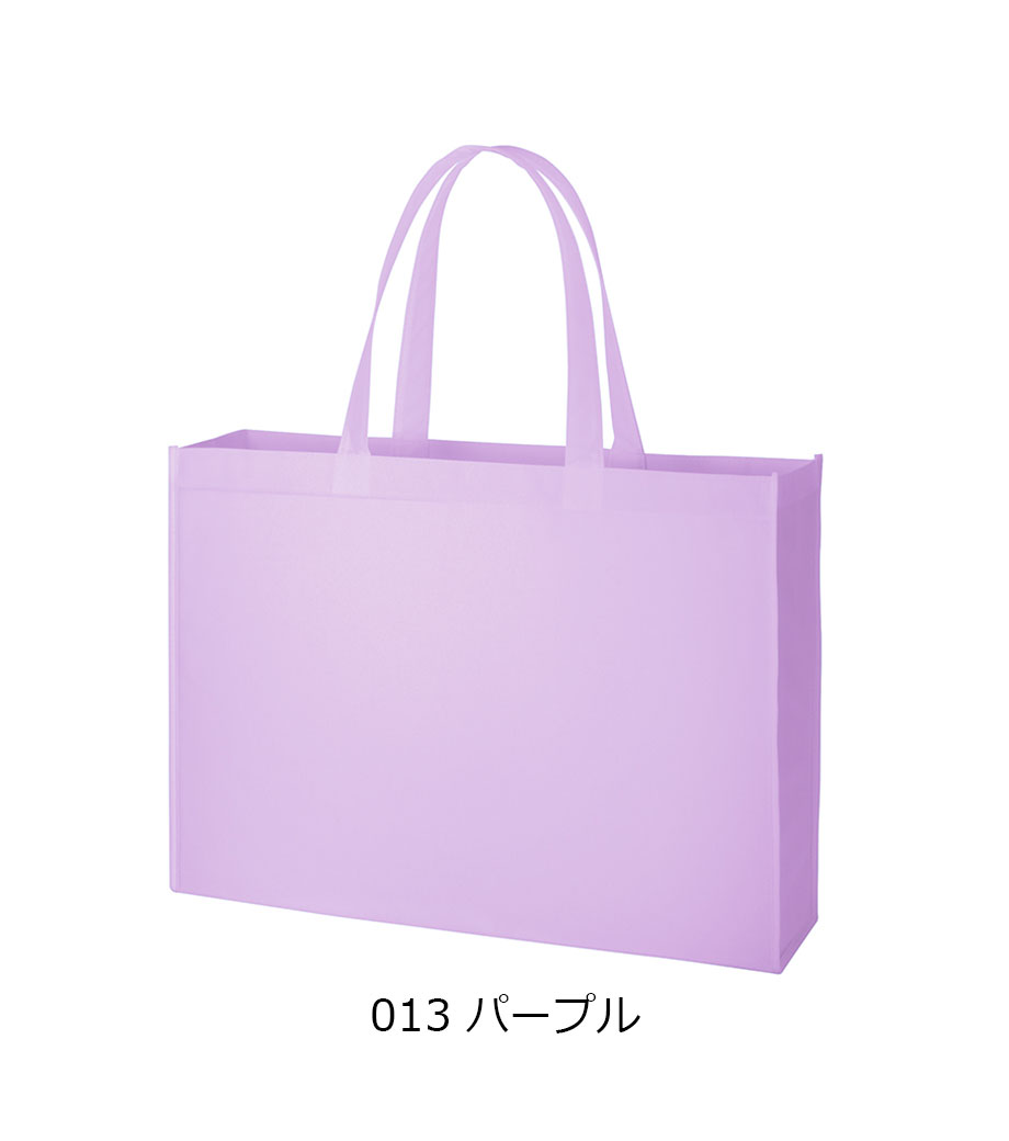 不織布とは、繊維を織らずに絡み合わせたシート状の素材。紙のように軽いうえ、紙より耐久性があるため、繰り返し使えるエコ素材として人気です。不織布スタンダードバッグは、使うシーンを選ばない定番トート。カラフルな色合いが楽しいバッグです。