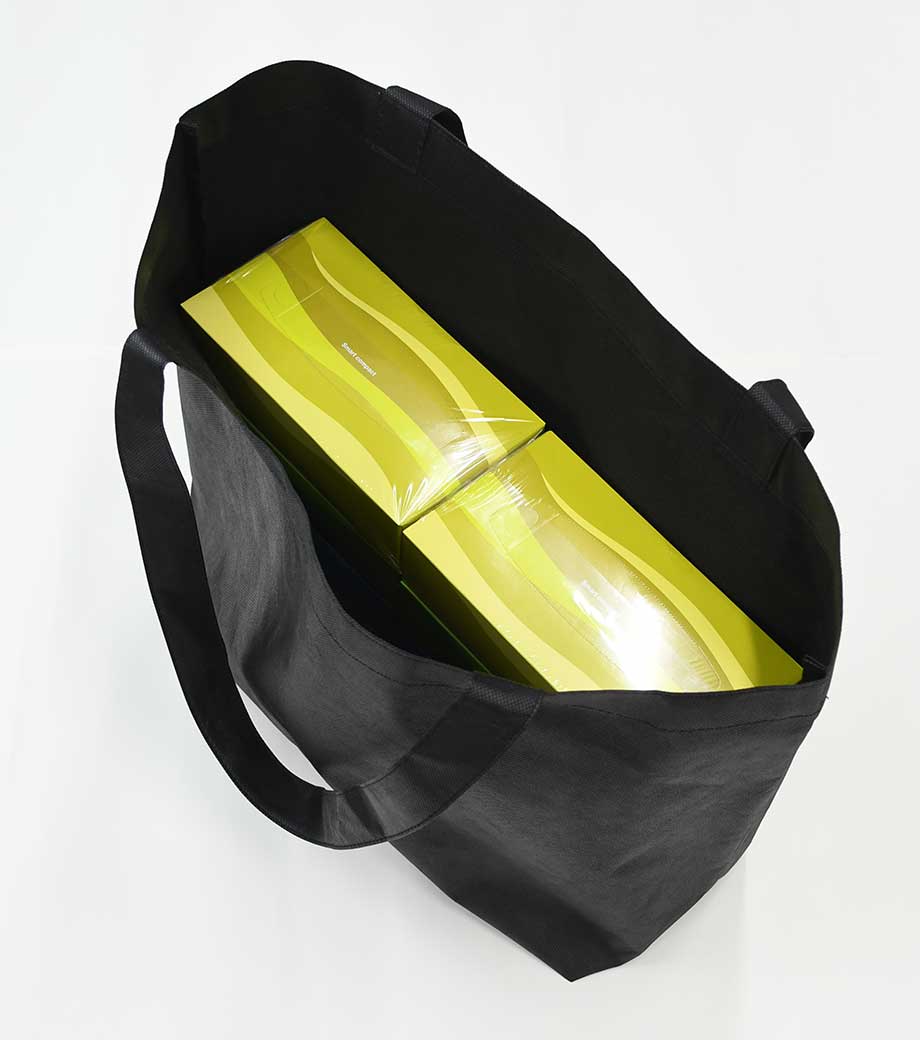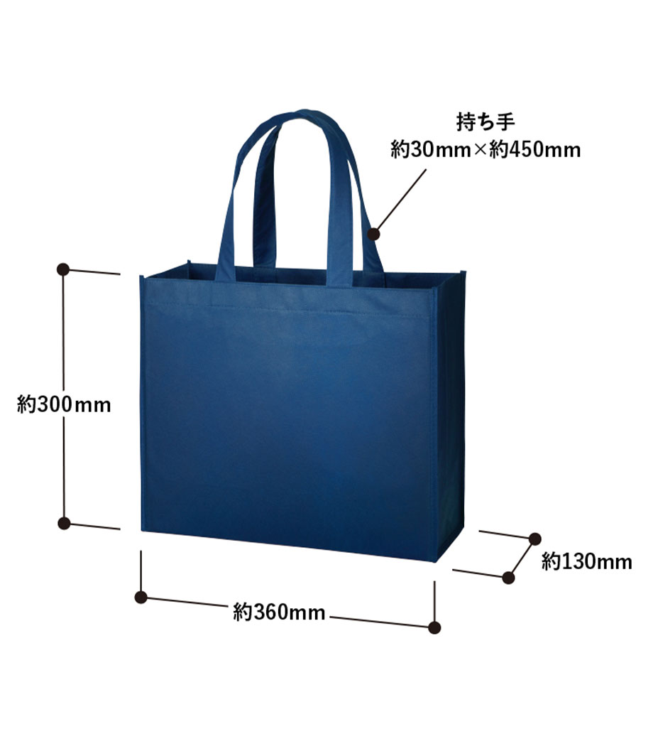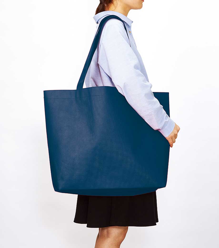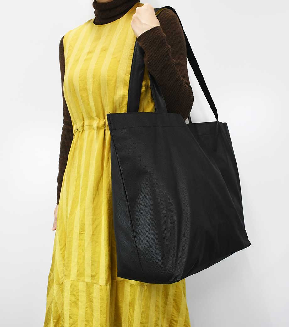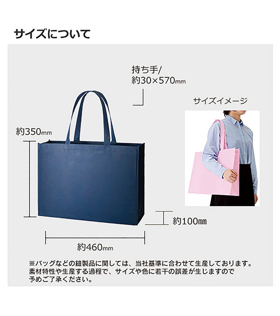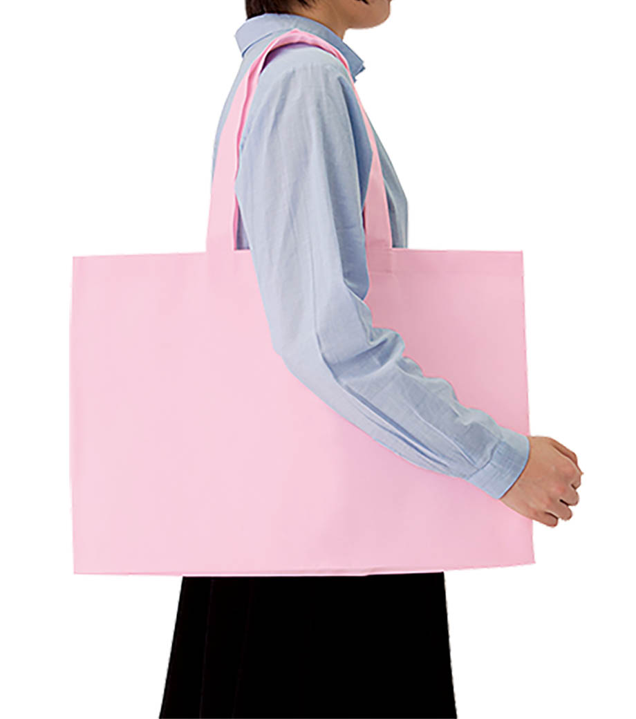 不織布バッグ(特大)は、A3サイズもすっぽり入る大容量のバッグです。軽くて丈夫な不織布素材で、マチも120mmとたっぷりとってあるので、サンプルやパンフレットを配るのにも適しています。