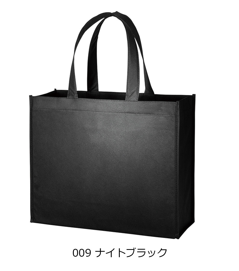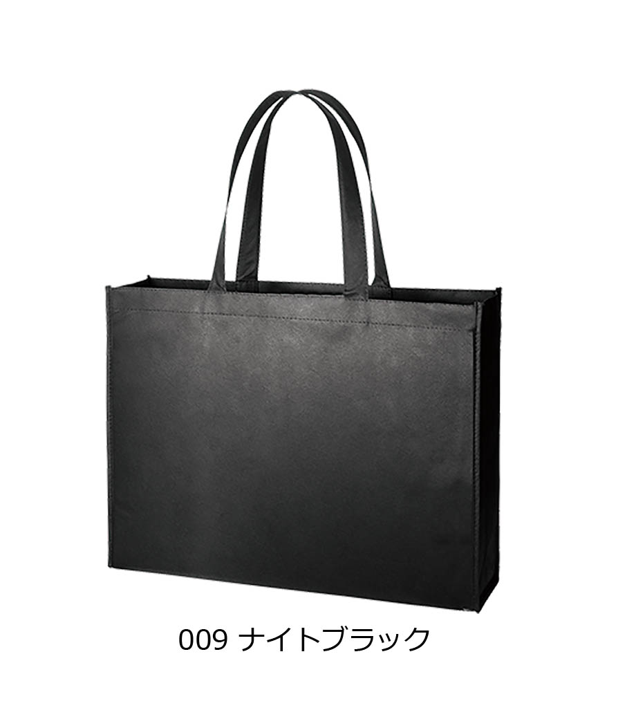 不織布スクエアトート(L)は、軽くて丈夫な不織布素材で作った大容量トートバッグ。出し入れしやすいスクエア型で、A3書類や雑誌などもたっぷり入る収納力。印刷面も広く取れるので、名入れが映えます。イベントシーンなどで大活躍しそう!本体色は豊富な全13色から、イメージに合ったカラーが選べます。