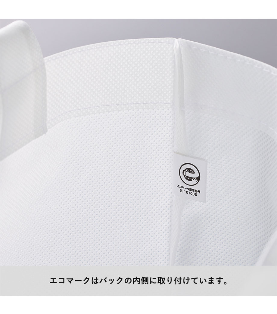 再生不織布スタンダードバッグは、底マチが広いトートバッグ。肩掛けできるので荷物が多い時も安心です。不織布の切れ端を集めて再利用した「再生不織布」を100%使用しています。エコマーク認証商品なので、エコなノベルティを製作したい方にピッタリ!