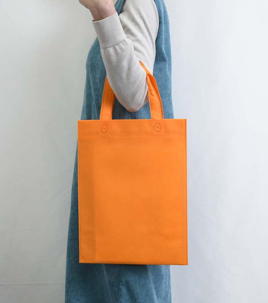 A4サイズの書類を入れるのにぴったりのマチなしトートバッグ。軽くてかさばらない不織布素材は、オープンキャンパスや展示会で資料を入れるバッグの定番です。