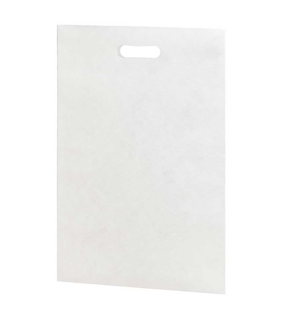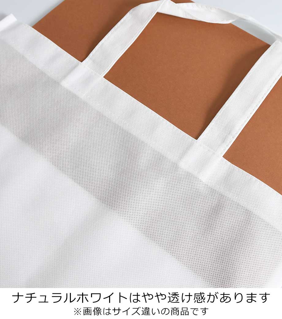 不織布レジバッグ(白)MはカタログなどA4サイズがラクラク入るサイズ感。レジ袋をそのまま不織布にしたデザインです。厚みがあるものも入れやすい横マチ付き。