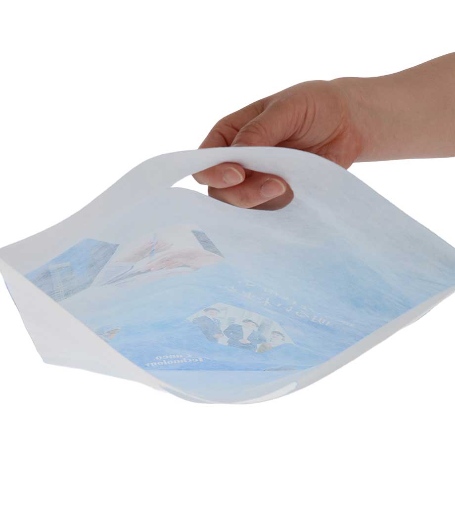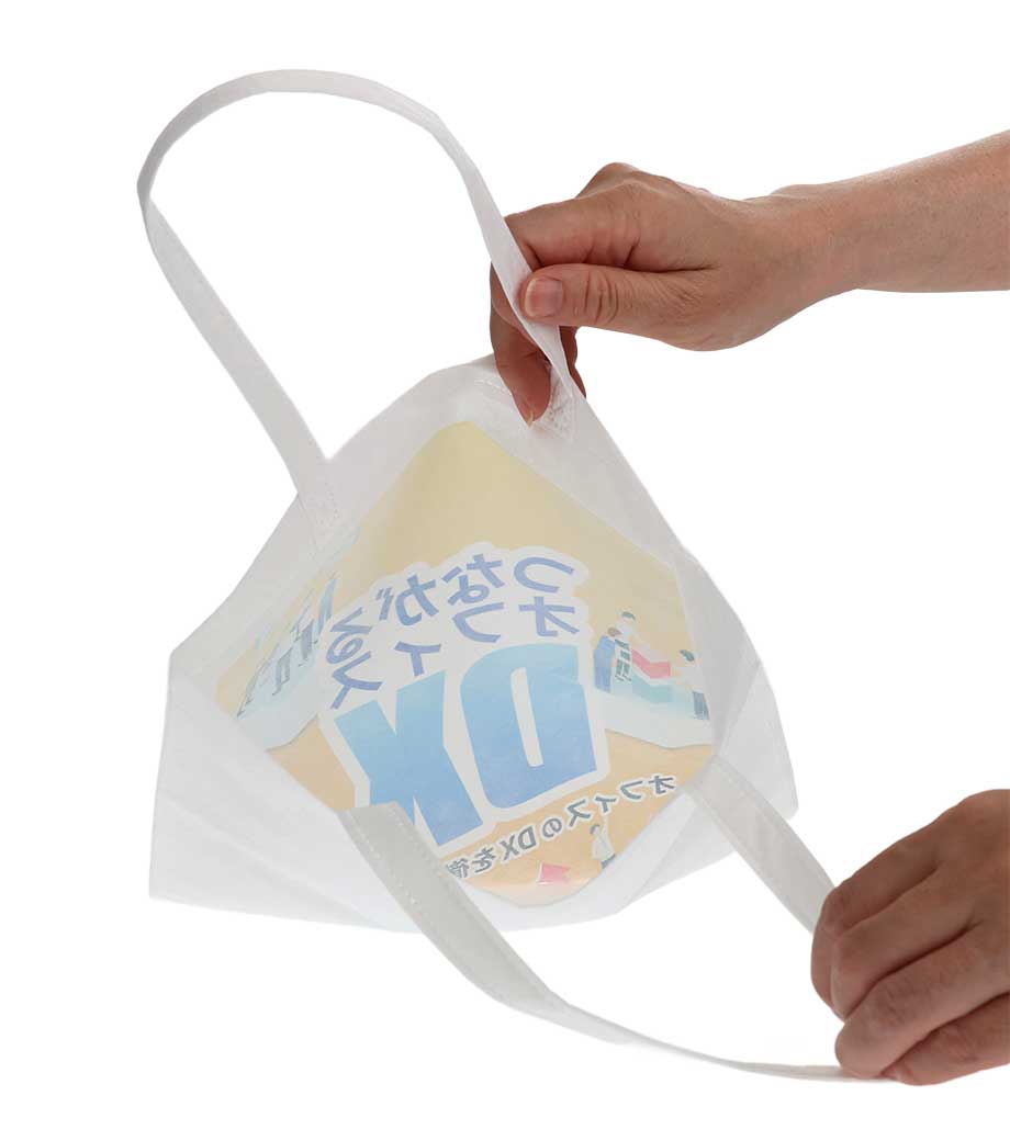 ビニールより強度がある不織布はリユース性が期待できます。焼やしても有害物質を出さないエコ素材としても注目されています。