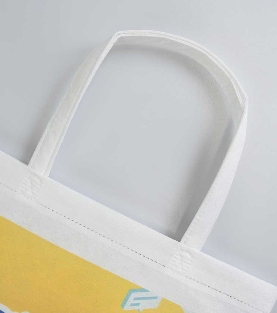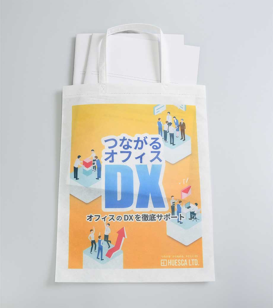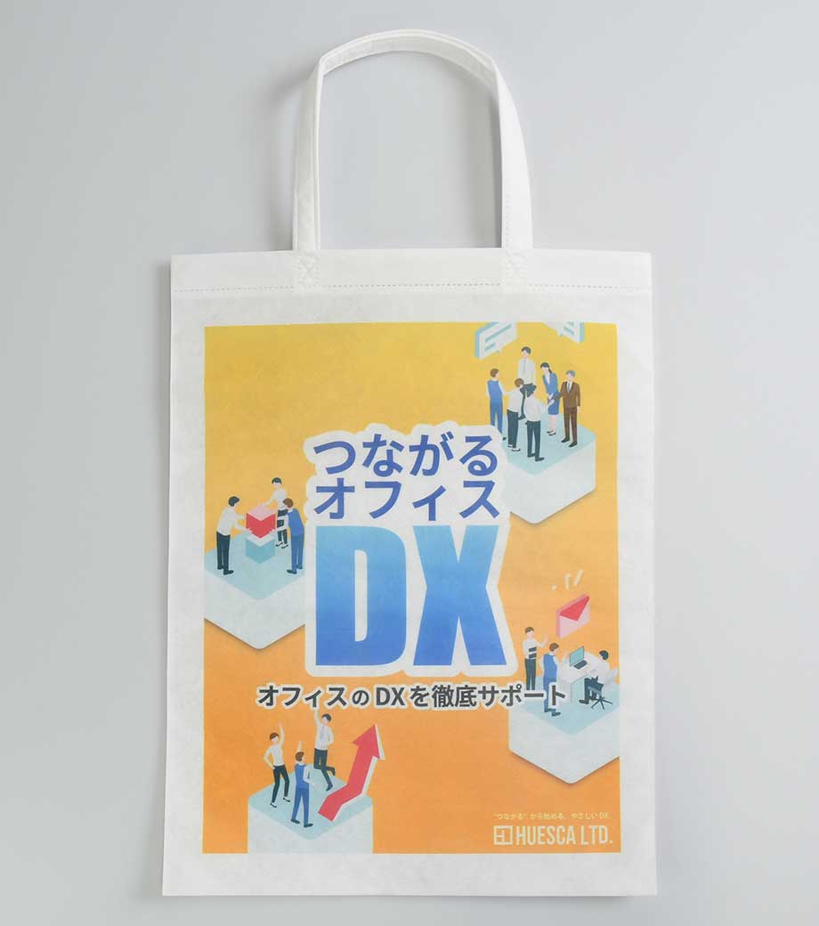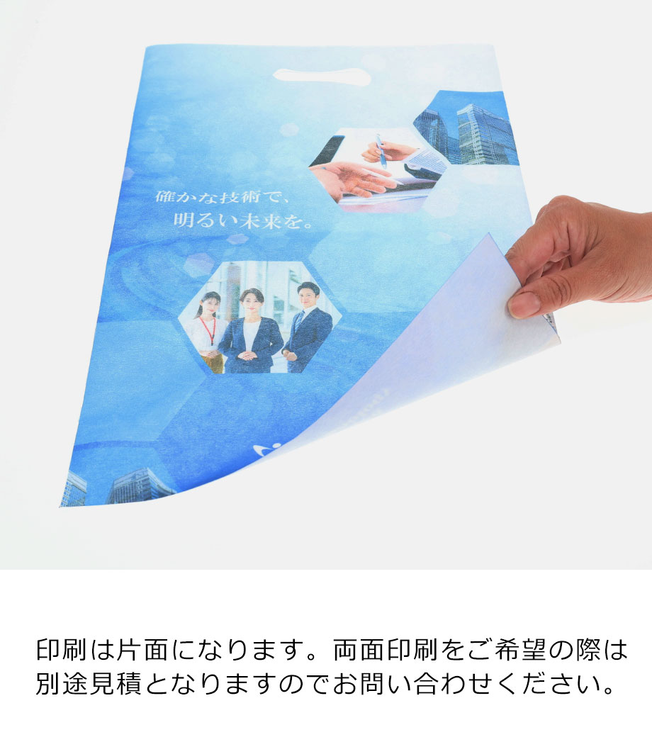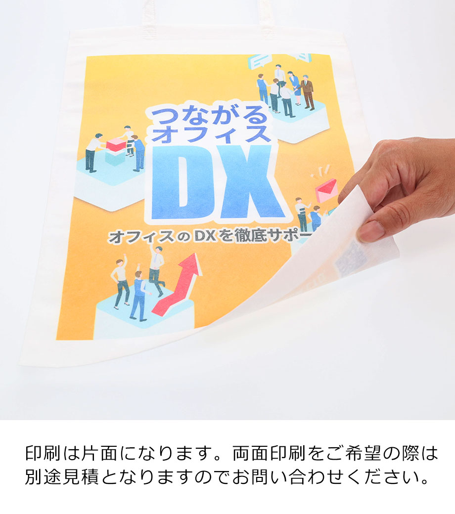 フチなしで片面に全面フルカラー印刷ができます。印刷代込みの価格なので予算を抑えてオリジナルバッグを作成可能。展示会会場でもインパクト抜群です!