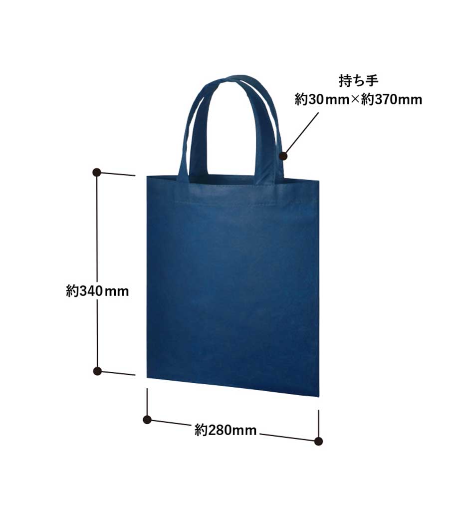 底マチが付いた手提げタイプの不織布バッグ。A4サイズで展示会や説明会の資料配布におすすめです。厚めのカタログも入れやすい約70mmのマチ付き。