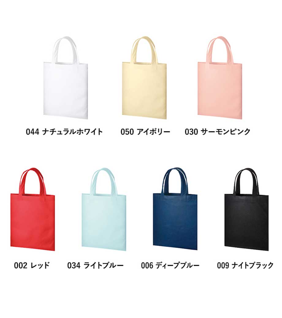 豊富なカラー展開で企業や学校のイメージに合わせてお選びいただけます。名入れ印刷で会社ロゴや学校名を入れたオリジナルバッグ制作にいかがでしょうか。