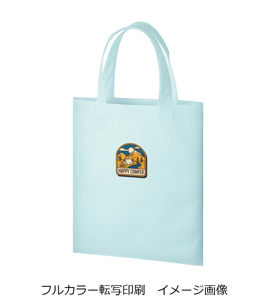 印刷範囲が大きく、学校名や企業ロゴを名入れすればもらった人の印象にも残りやすくなります。シンプルな1色か、インパクト重視のフルカラーで印刷可能です。オープンキャンパスや展示会で資料や配布物を入れるノベルティバッグにいかがでしょうか。