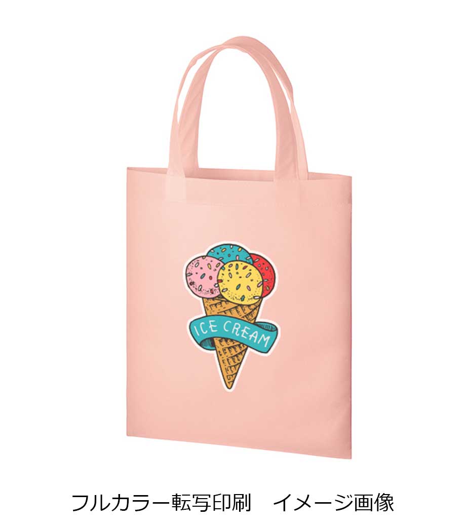 大きく写真やイラストを印刷できてインパクト抜群!片面フルカラーでの印刷代込みでこの低価格。お手頃にオリジナルバッグが作成できます。